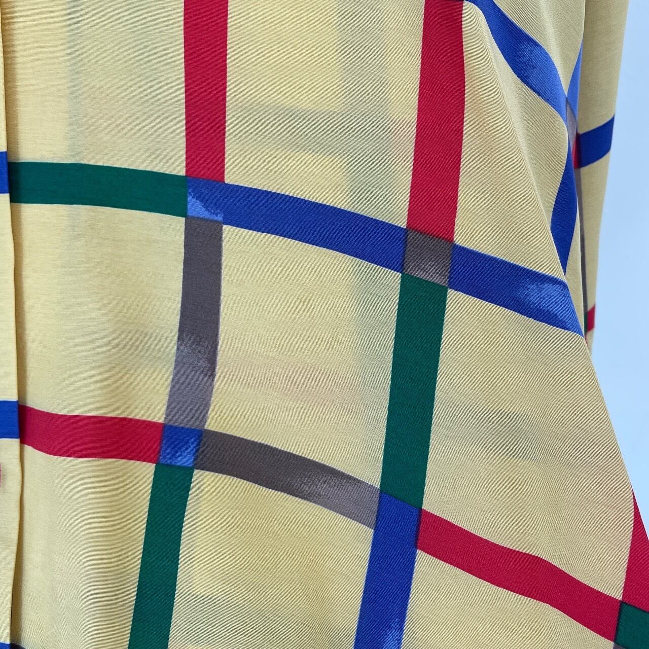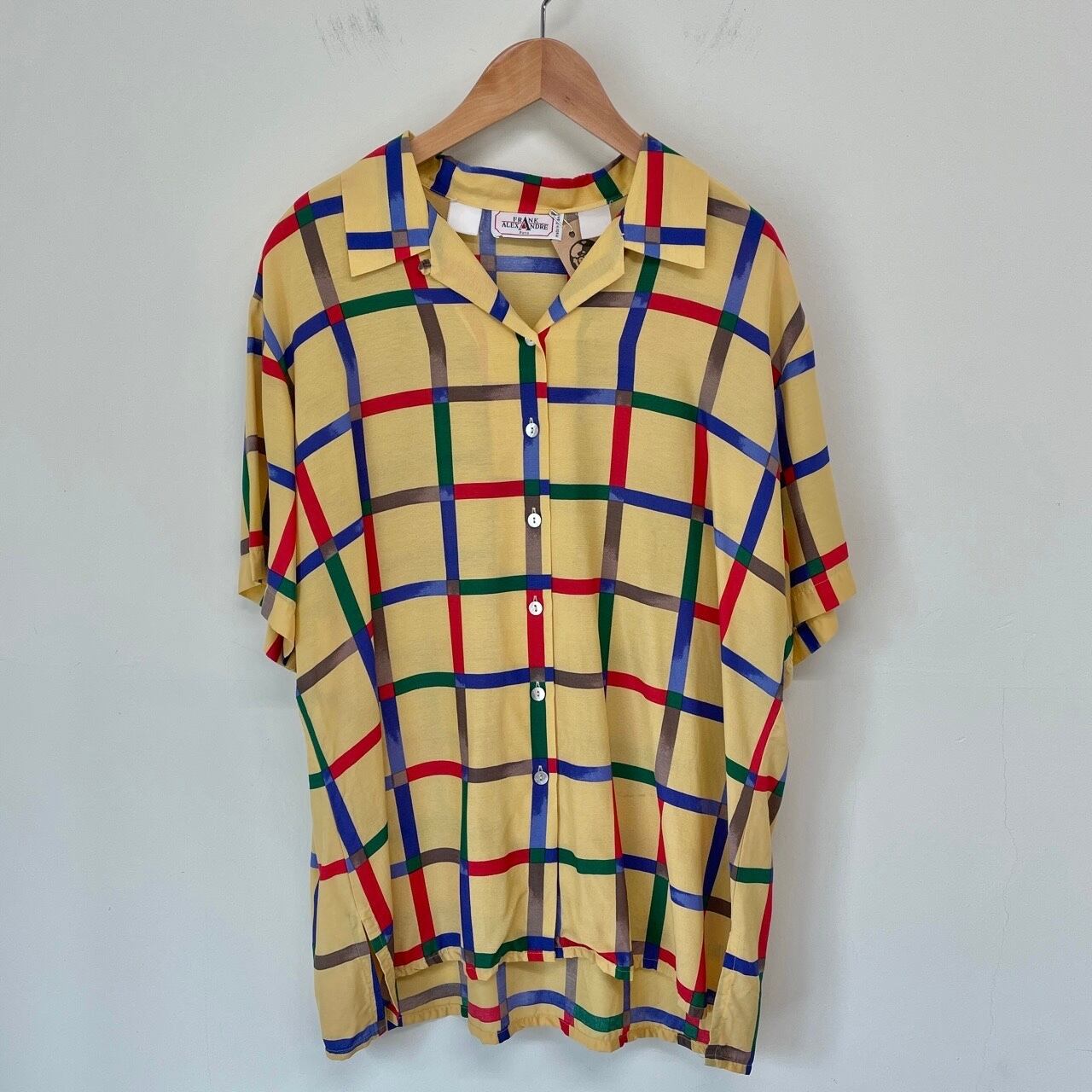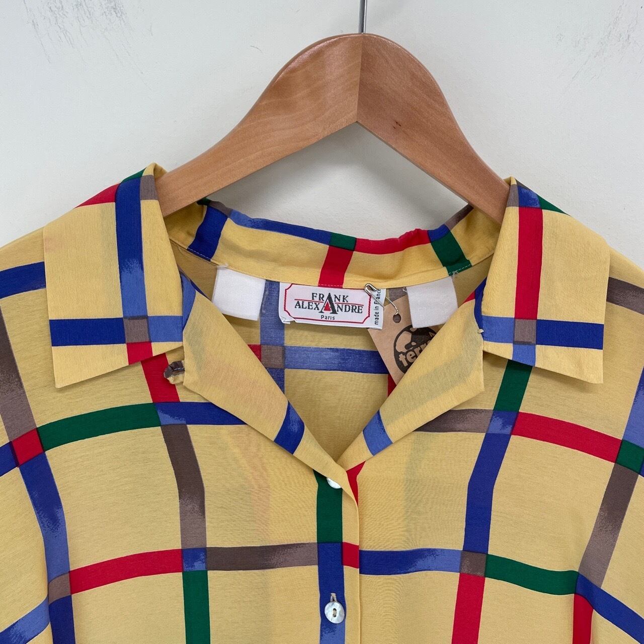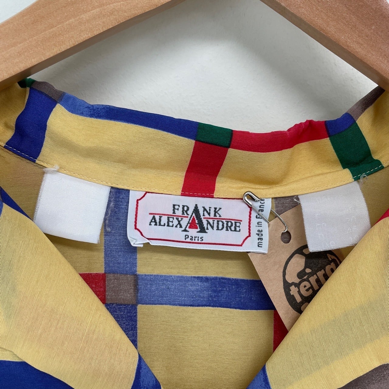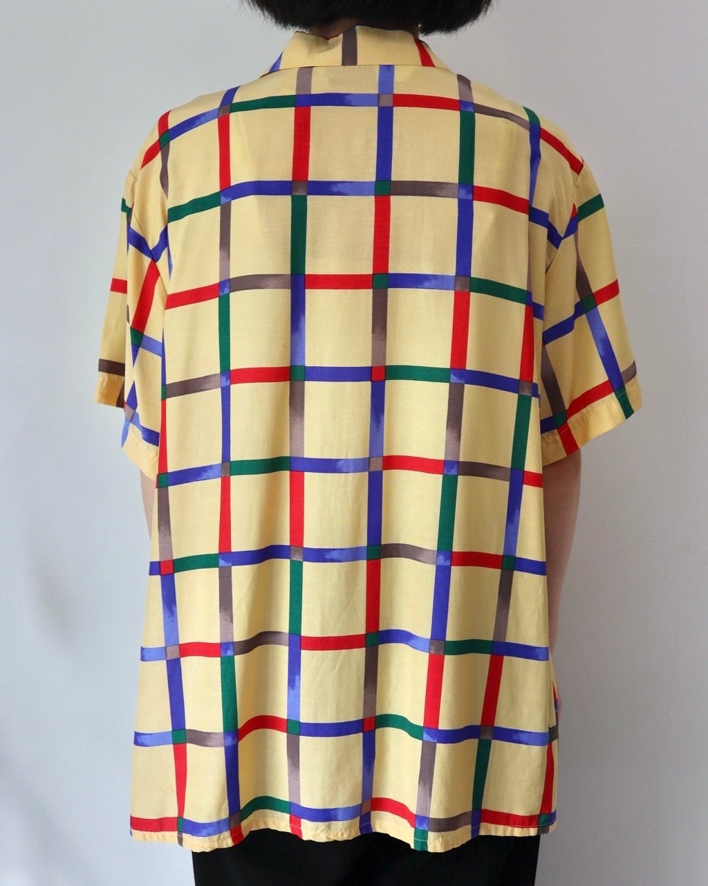 80s 90s フランス製 チェック オープンカラー 半袖シャツ ヴィンテージ 古着 ボックスシャツ 黄色 イエロー レーヨン シルク レディース FRANK ALEXANDRE 80年代 90年代 ビンテージ 25092704