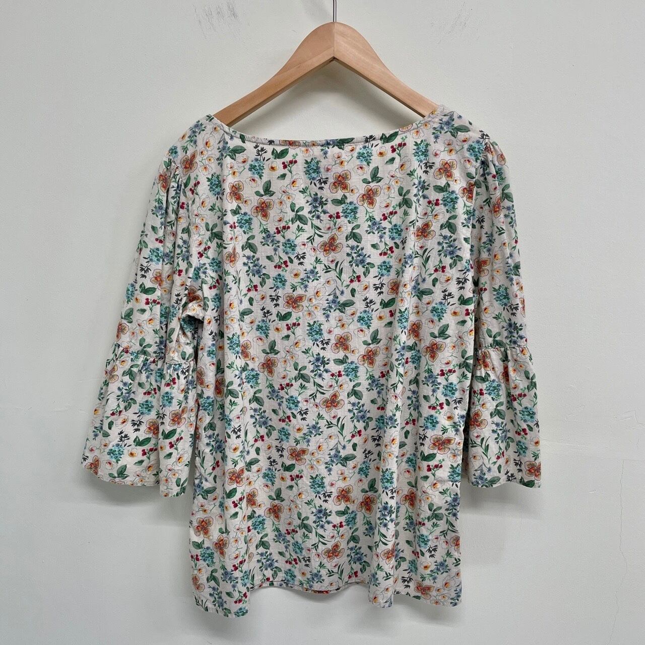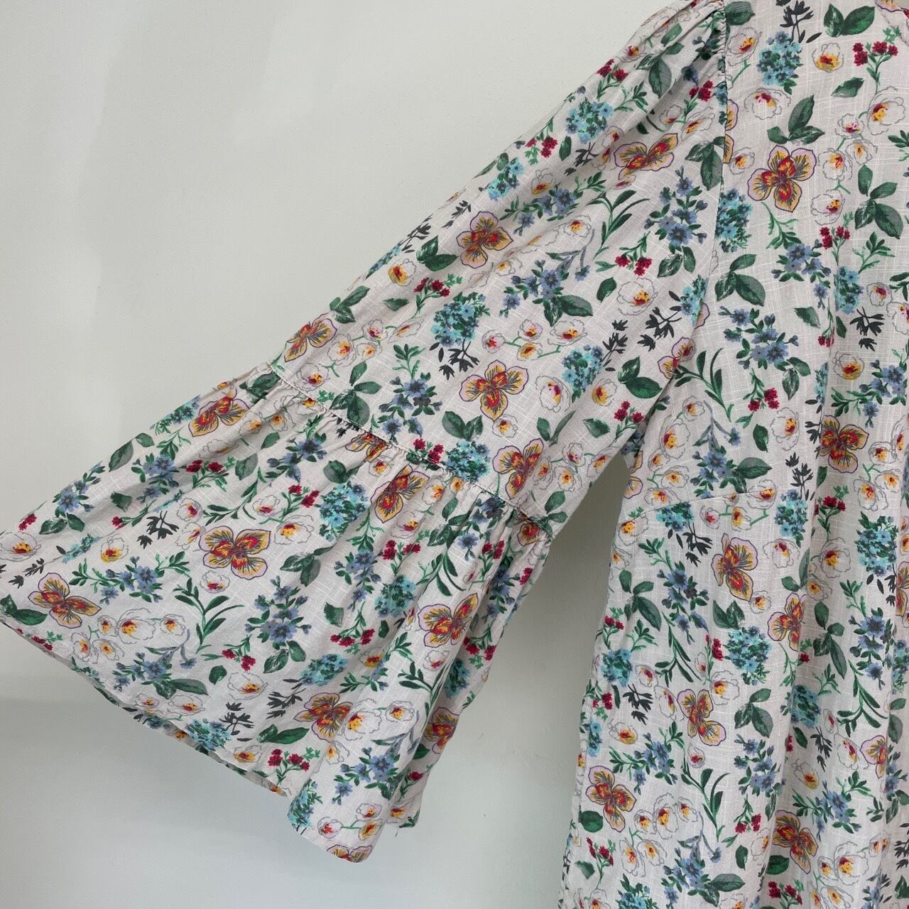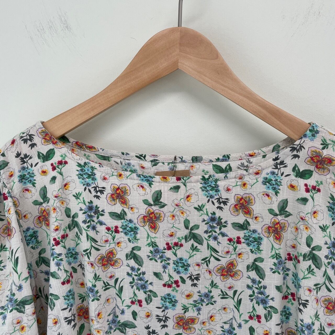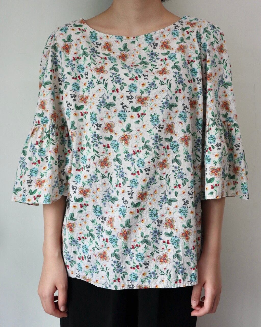 古着 花柄 コットン 五部袖 トップス ブラウス シャツ チュニック インド綿 フレアスリーブ レディース レトロ プルオーバー L 25092705