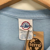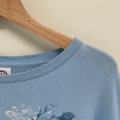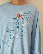 古着 花 鳥 ハンドペイント 長袖Tシャツ ロンT ヴィンテージ 水色 ライトブルー カージナル 動物 アニマル フラワー ビンテージ XL 25092706
