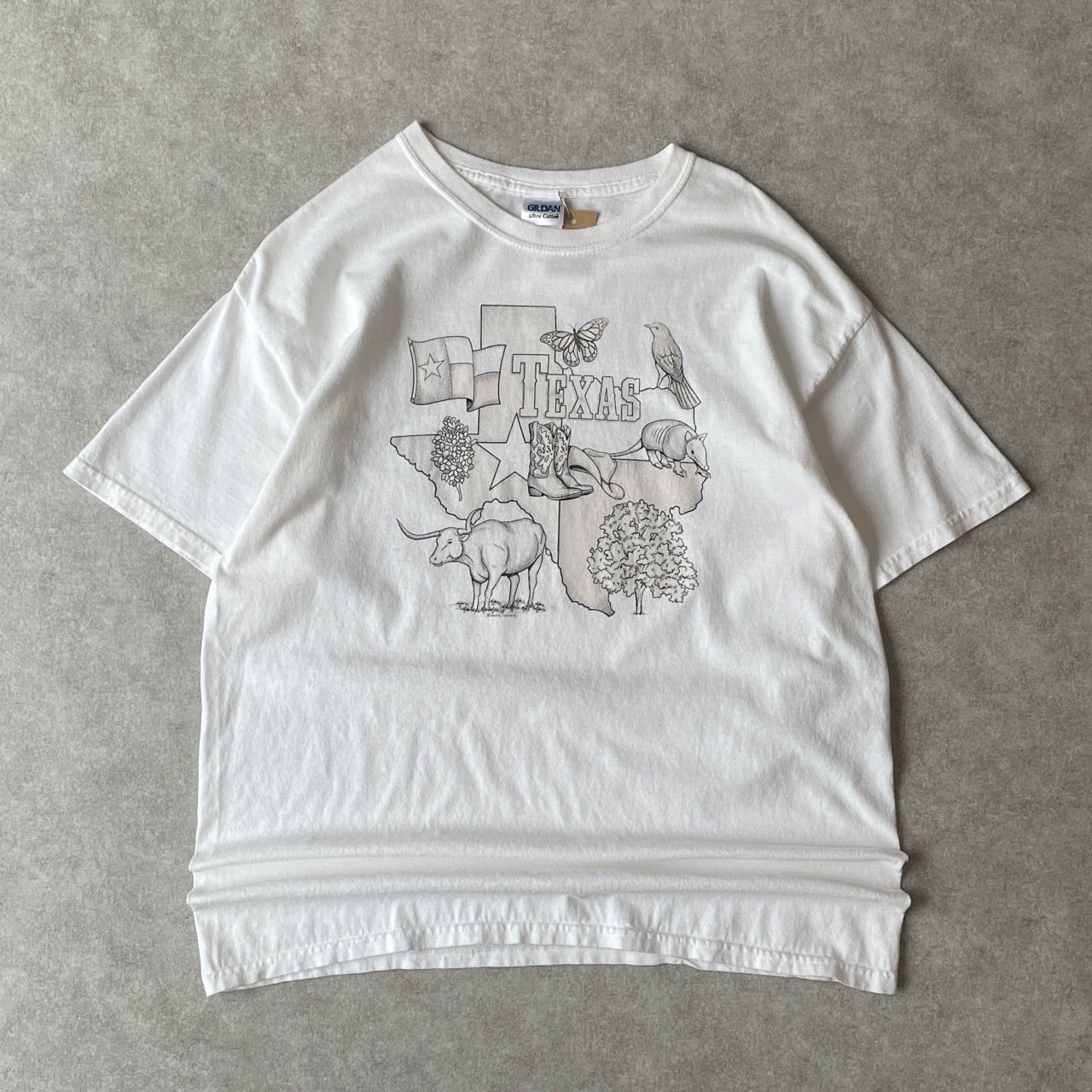 00s TEXAS テキサス州 スーベニア Tシャツ ヴィンテージ 古着 白 ホワイト 牛 ウエスタン カウボーイ アルマジロ Y2K 00年代 2000s 2000年代 ビンテージ L 25092708