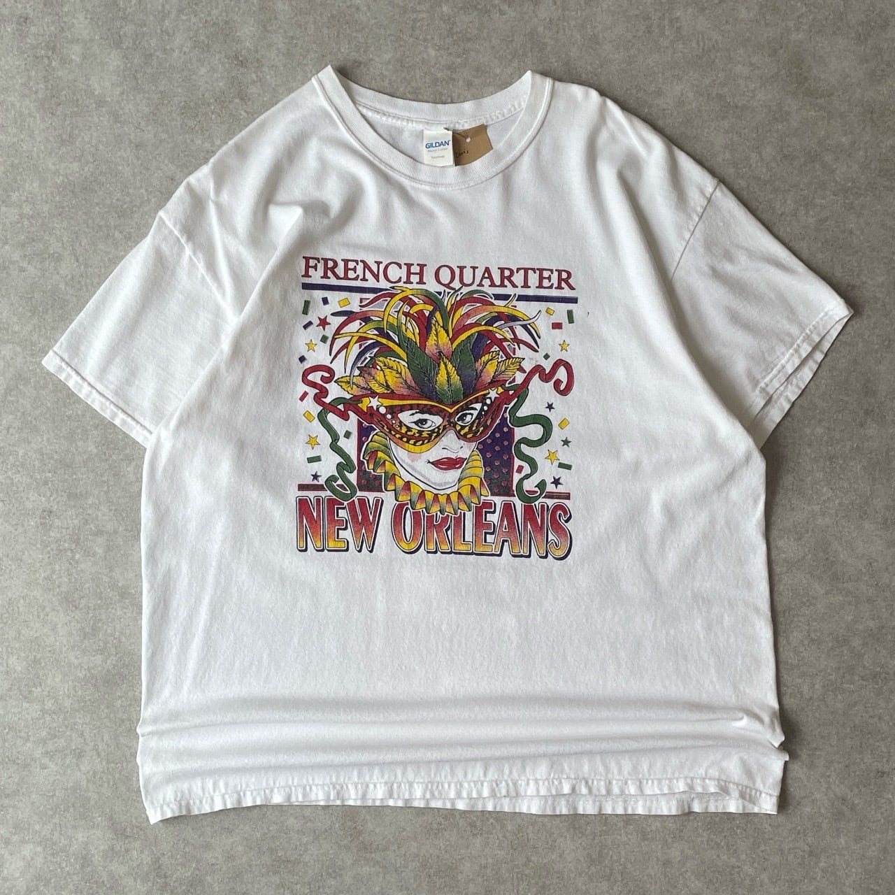 00s マルディグラ ニューオーリンズ Tシャツ ヴィンテージ 古着 白 ホワイト カーニバル 祭り スーベニア Y2K 00年代 2000s 2000年代 ビンテージ XL 25092709