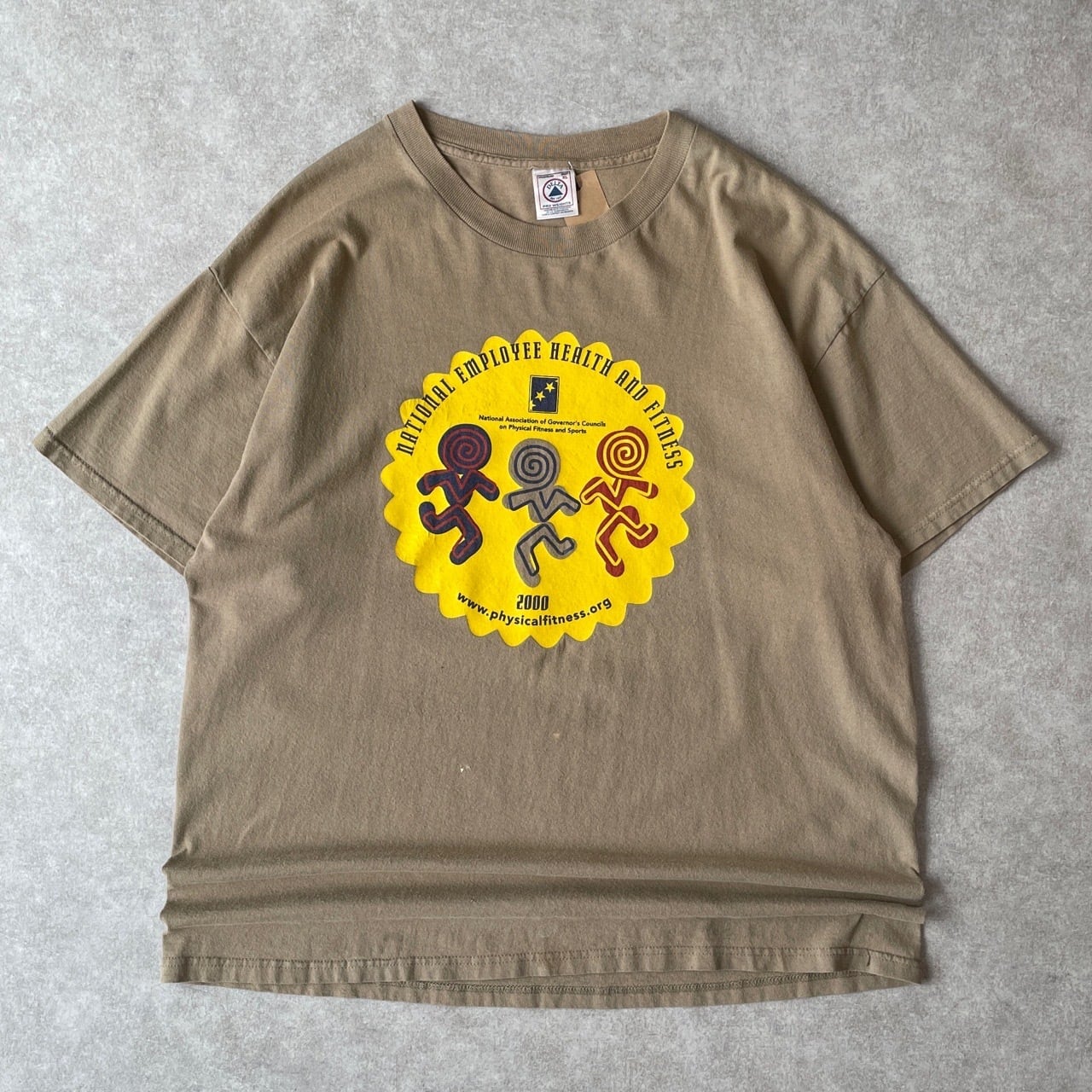 00s フィットネス アートTシャツ ヴィンテージ 古着 ベージュ カーキ グラフィック Y2K 00年代 2000s 2000年代 ビンテージ XL 25092710