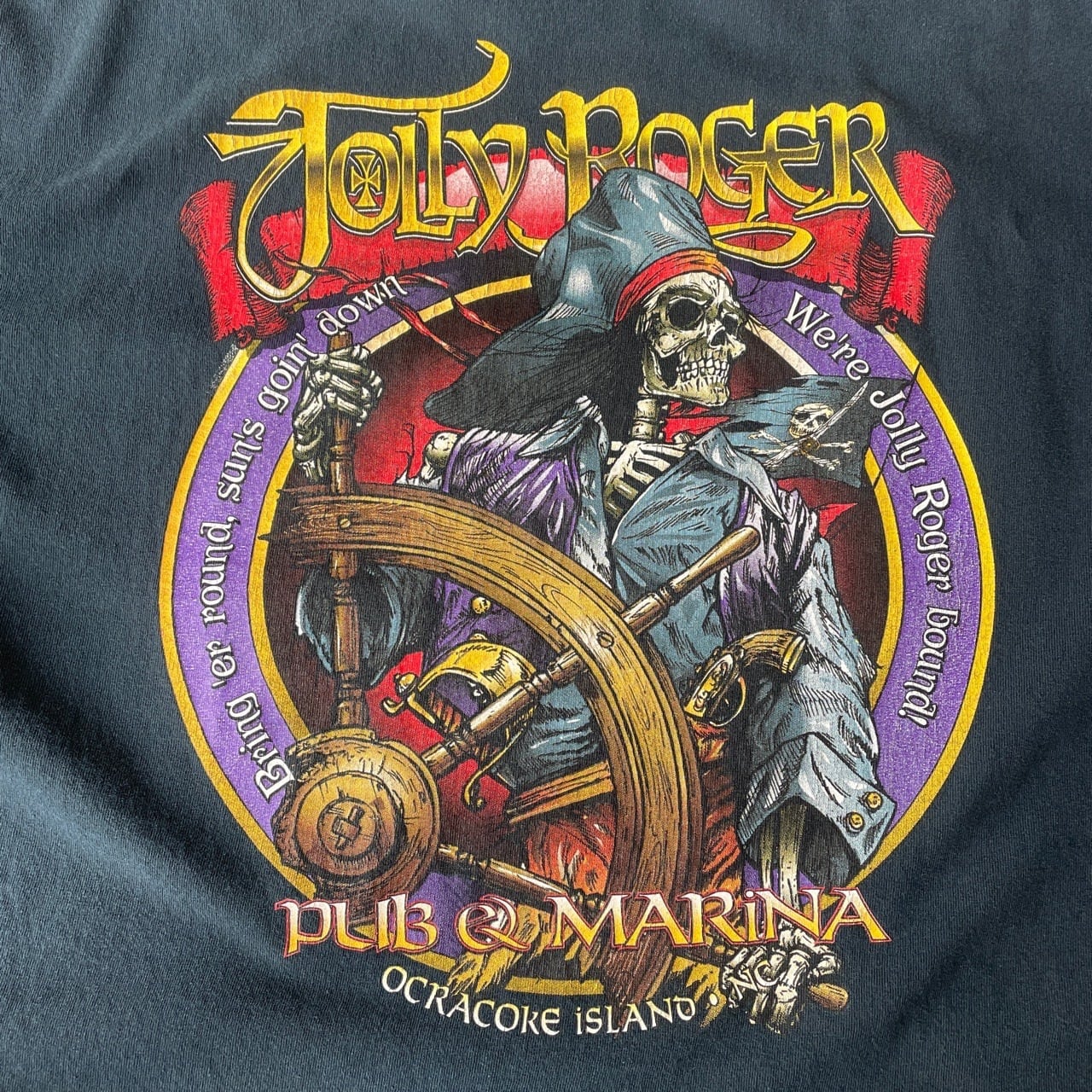 古着 スカル 海賊 ドクロ Tシャツ バックプリント ヴィンテージ 黒 ブラック 骸骨 ガイコツ ビンテージ Y2K 00s L 25101904