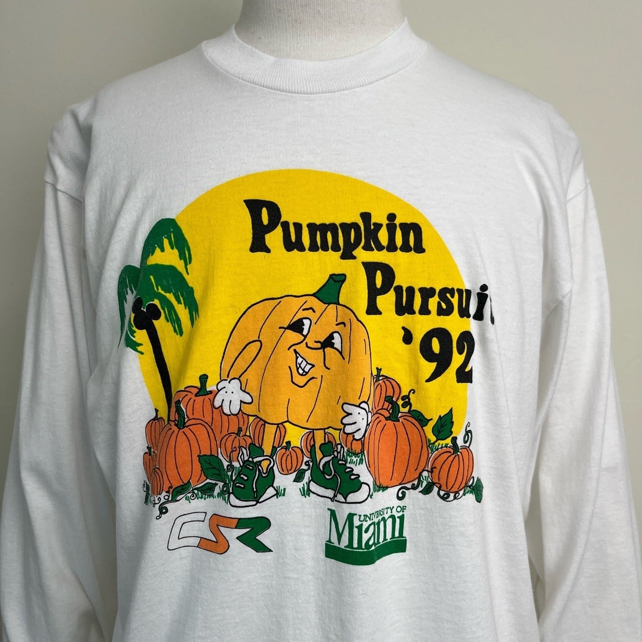 90s USA製 かぼちゃ 長袖Tシャツ ロンT ヴィンテージ 古着 1992年 パンプキン 90年代 シングルステッチ ビンテージ ハロウィン 白 ホワイト L 25102007