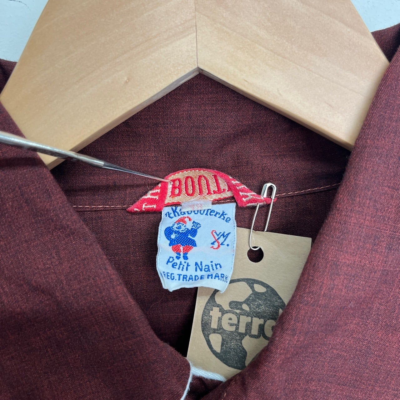 50s 60s ユーロ パジャマシャツ 茶 ブラウン ヴィンテージ 古着 EURO ベルギー 長袖シャツ 50年代 60年代 ビンテージ 48 25102013