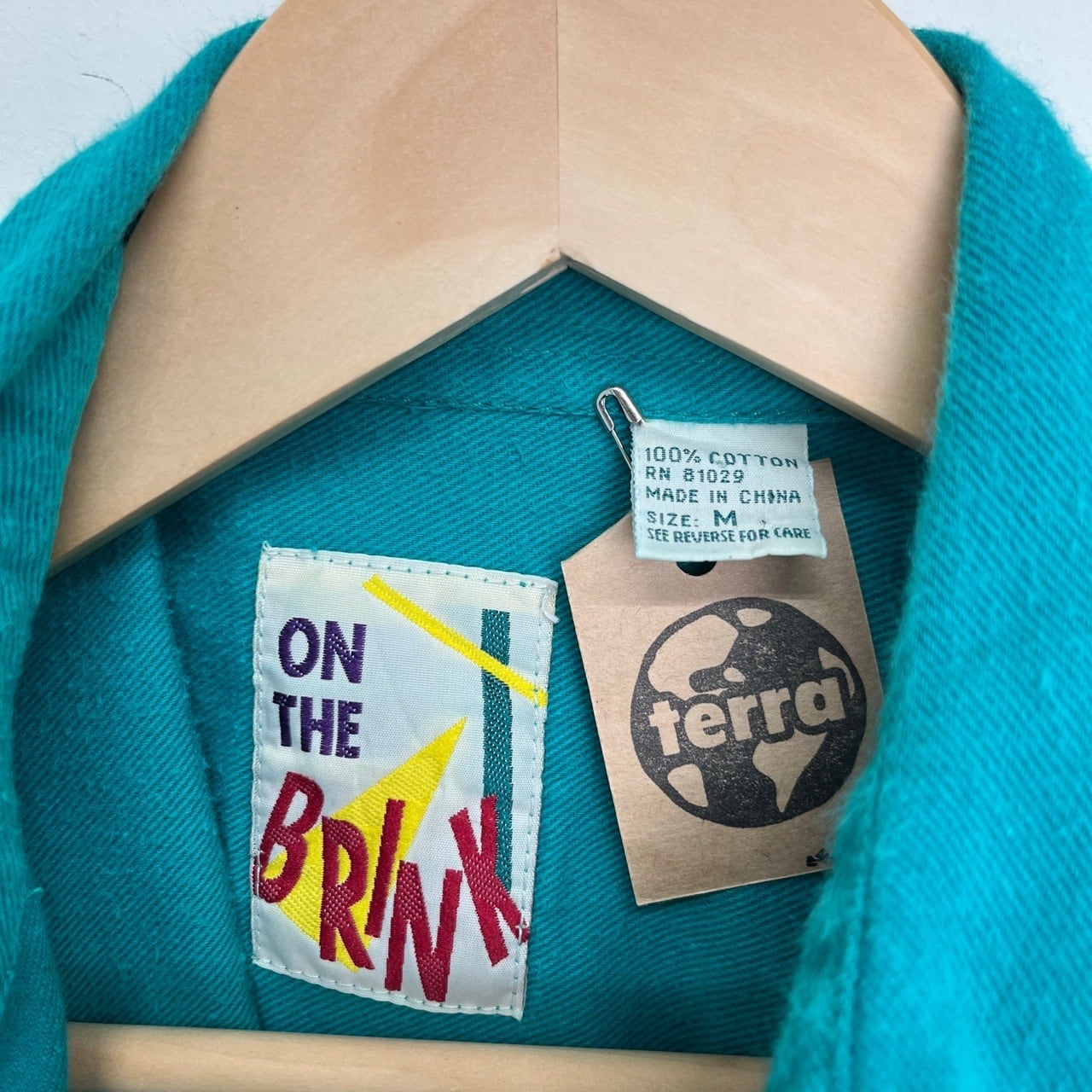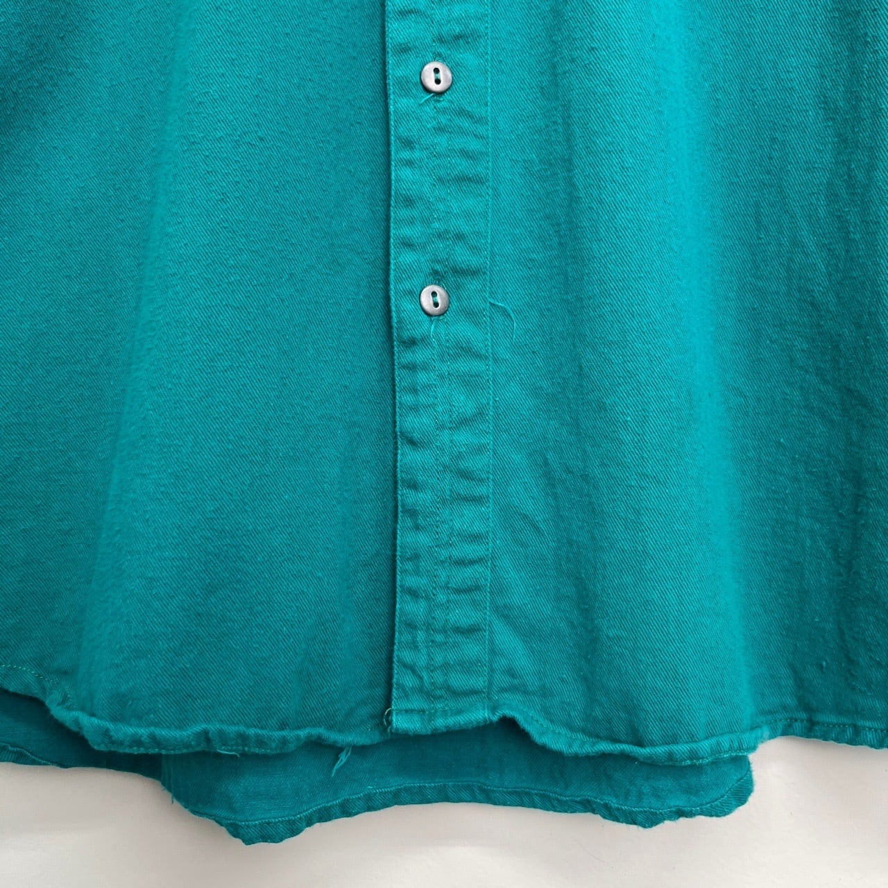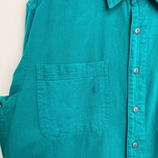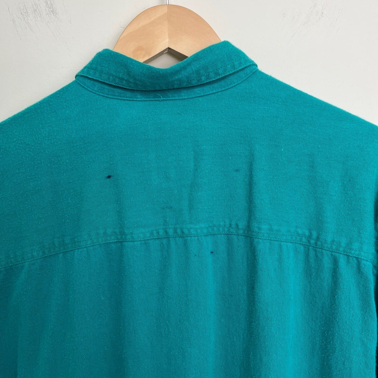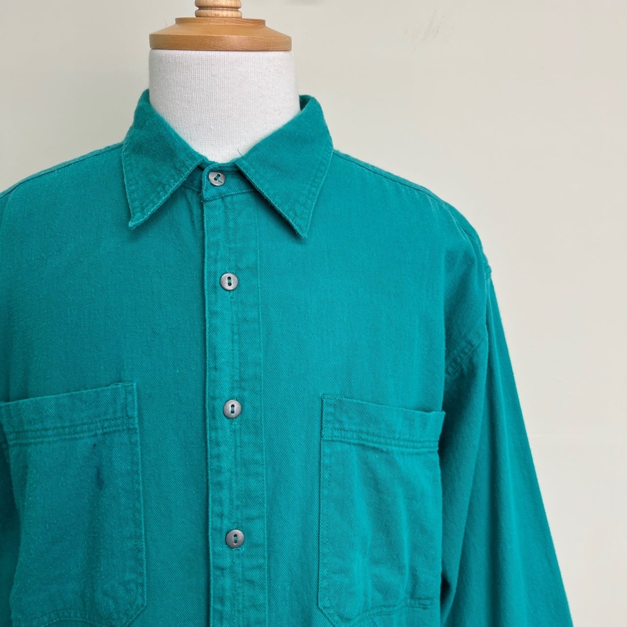 90s ターコイズ ネルシャツ 無地 ワークシャツ ヴィンテージ 古着 エメラルド コットン 90年代 ビンテージ M 25102015