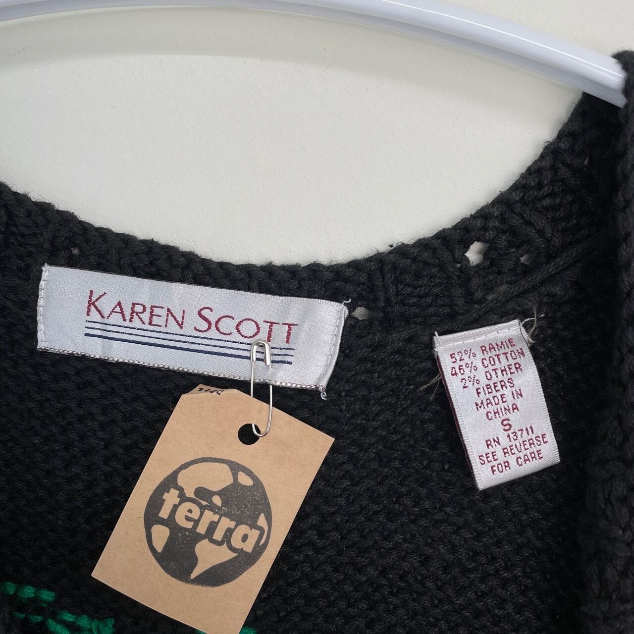 90s KAREN SCOTT かぼちゃ 秋 ニットベスト ヴィンテージ 古着 黒 ブラック ラミー コットン レディース レトロ カントリー 90年代 ビンテージ S 25110801