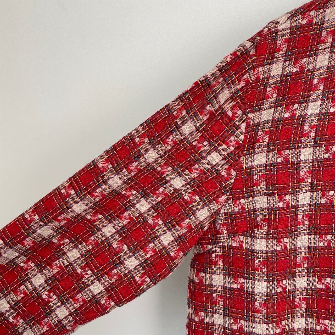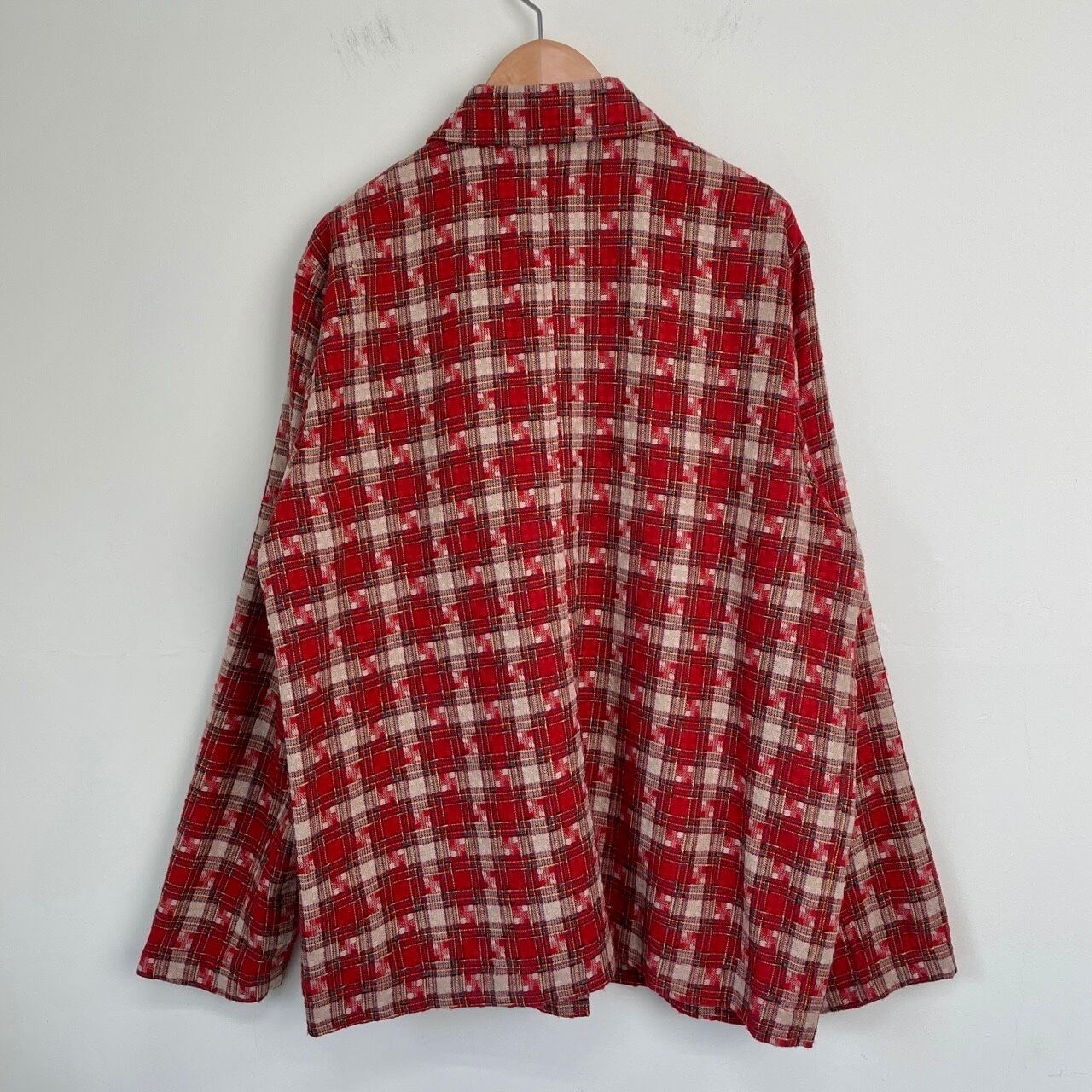 90s 00s Bon Worth レトロ チェック ジャケット ヴィンテージ 古着 レディース アクリル 赤 レッド カバーオール ライトアウター 羽織 90年代 ビンテージ M 25110804
