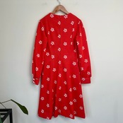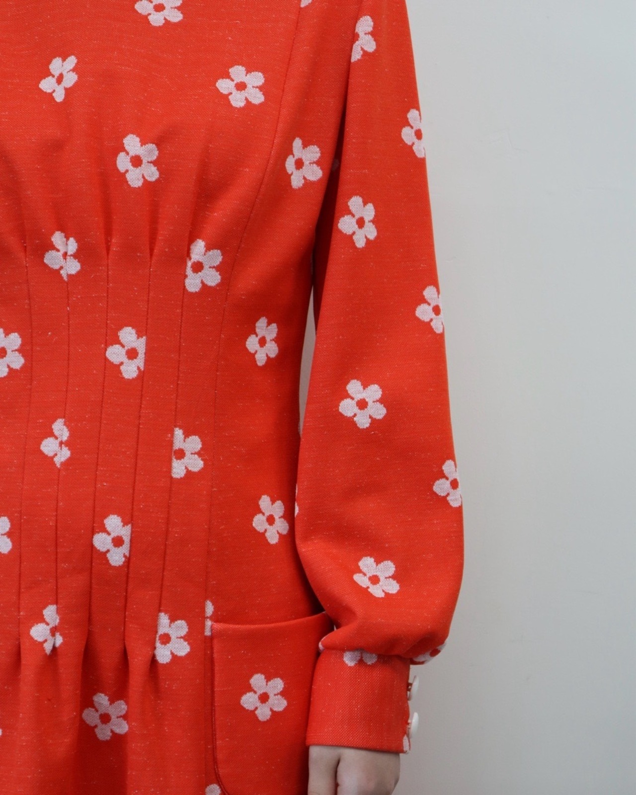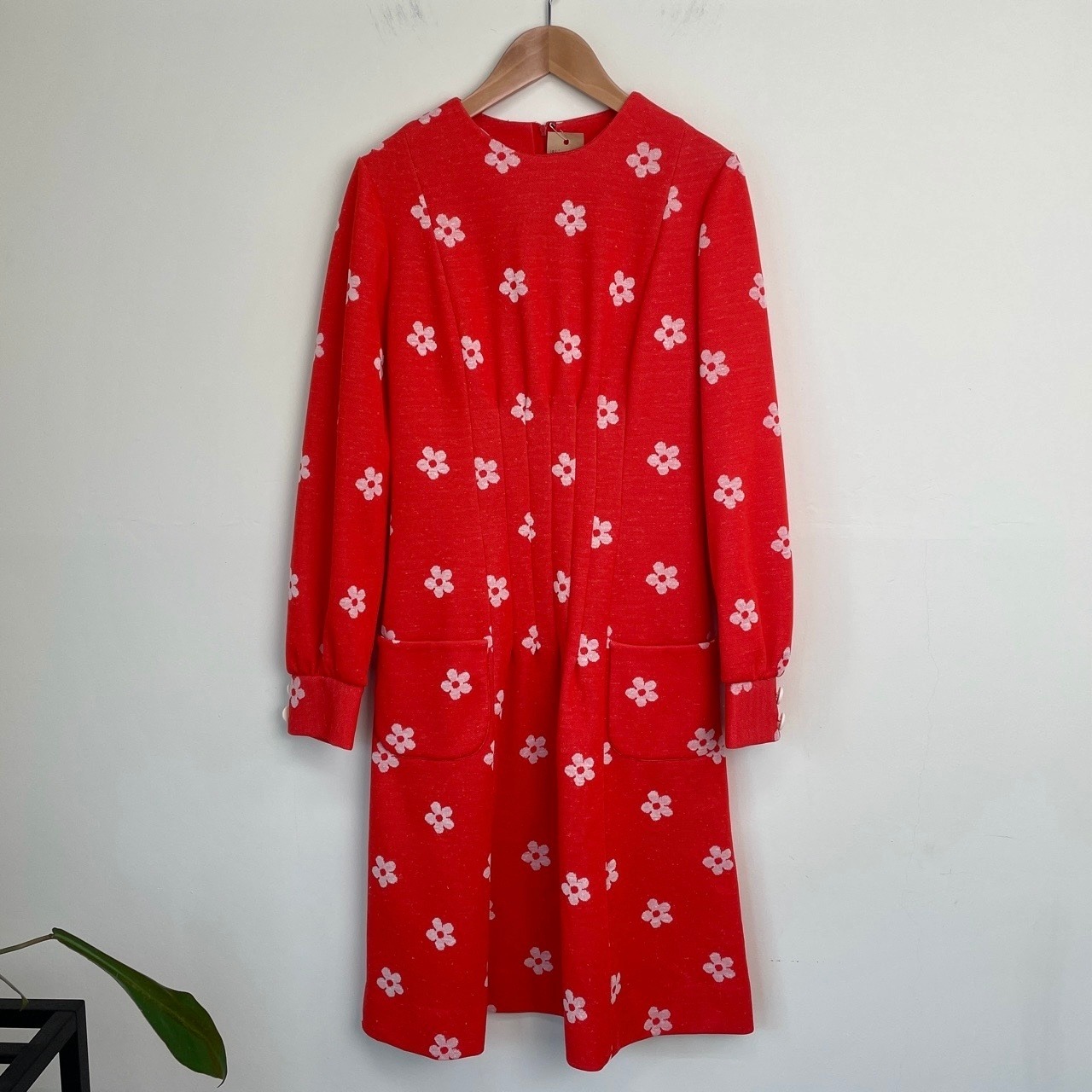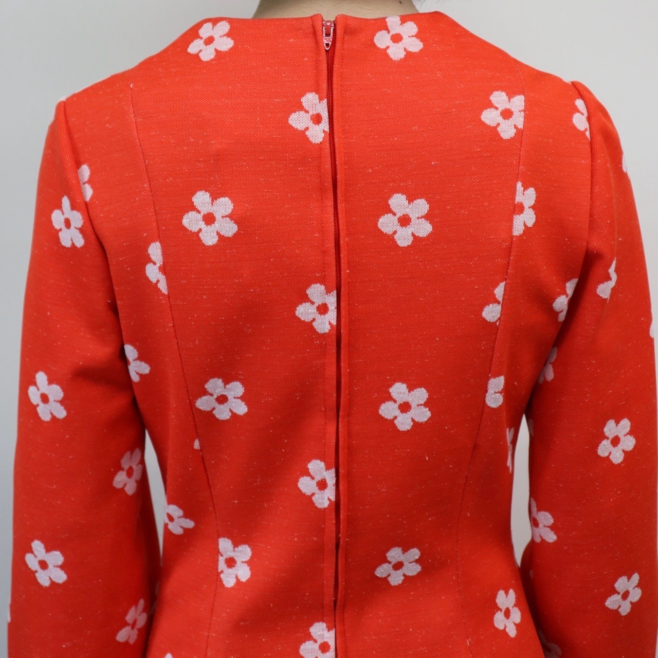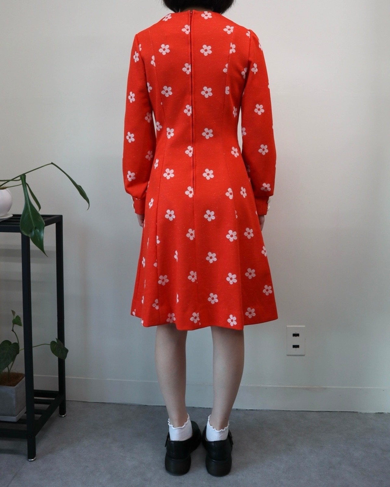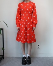 60s 70s レトロ 花柄ワンピース ヴィンテージ 古着 オレンジ 長袖 レディース ヒッピー 60年代 70年代 ビンテージ 25110807