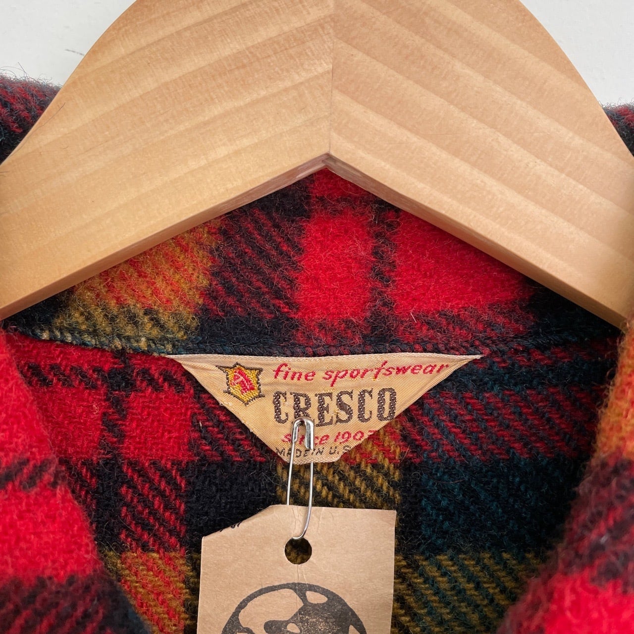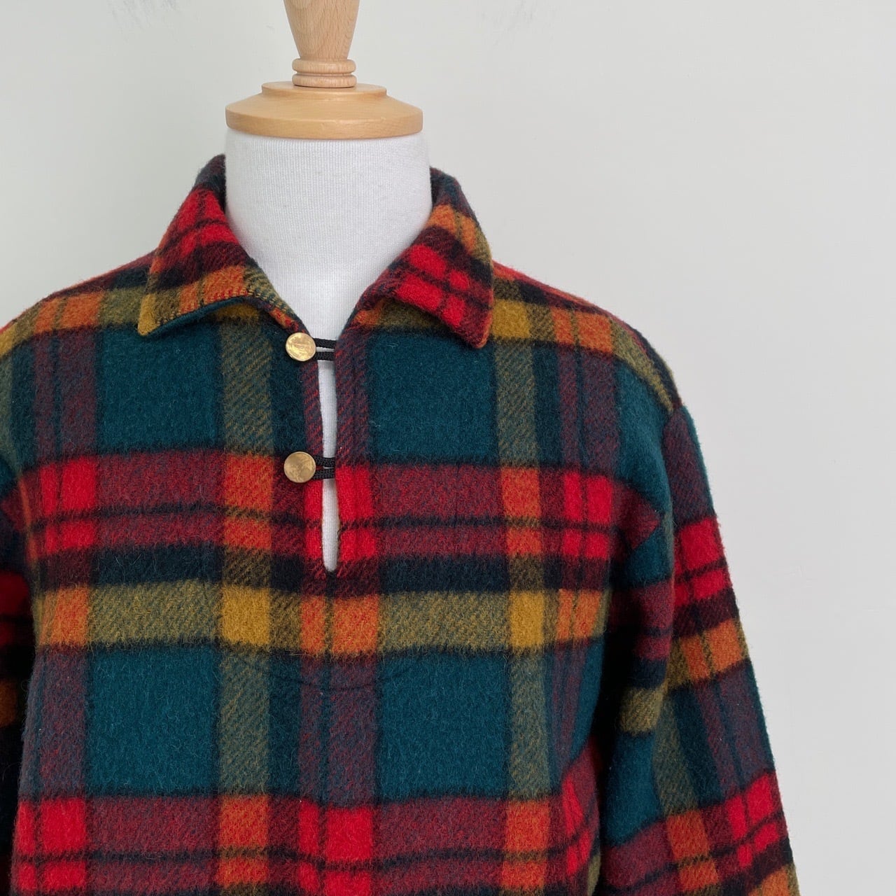 50s 60s USA製 CRESCO チェック ウール スキッパーシャツ ヴィンテージ 古着 プルオーバー 長袖シャツ 50年代 60年代 ビンテージ M 25112210