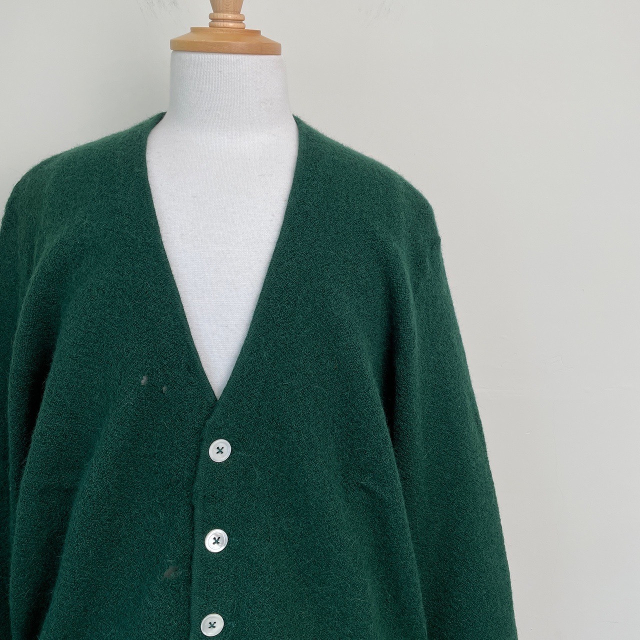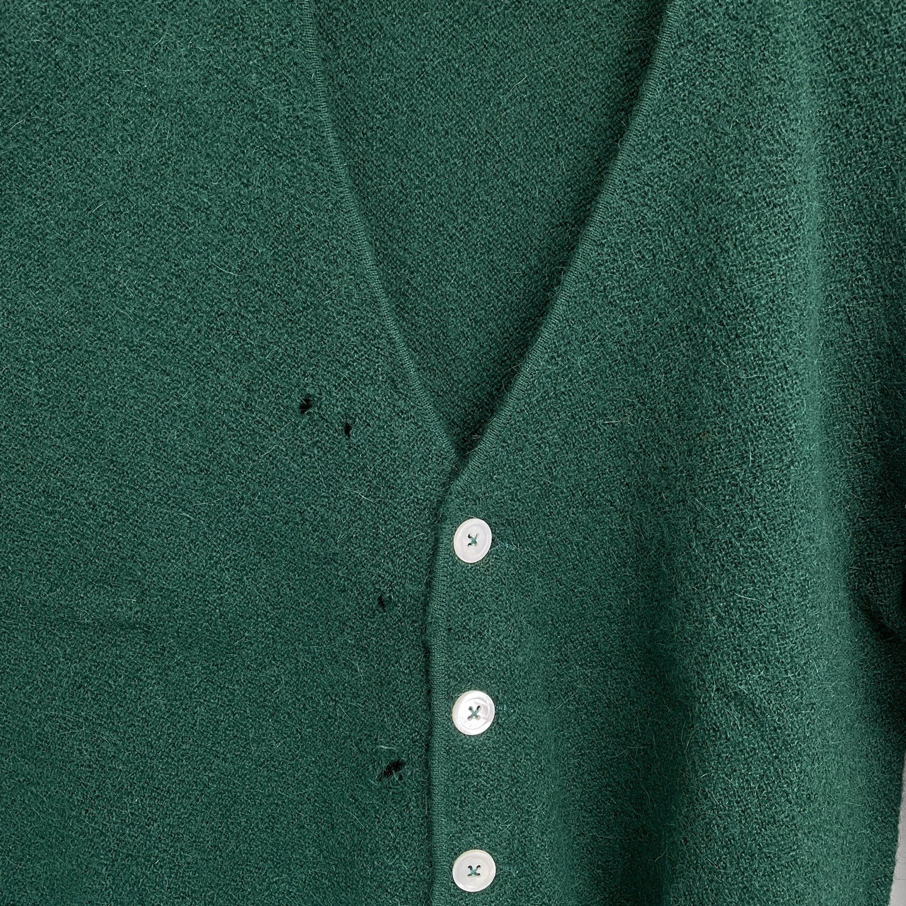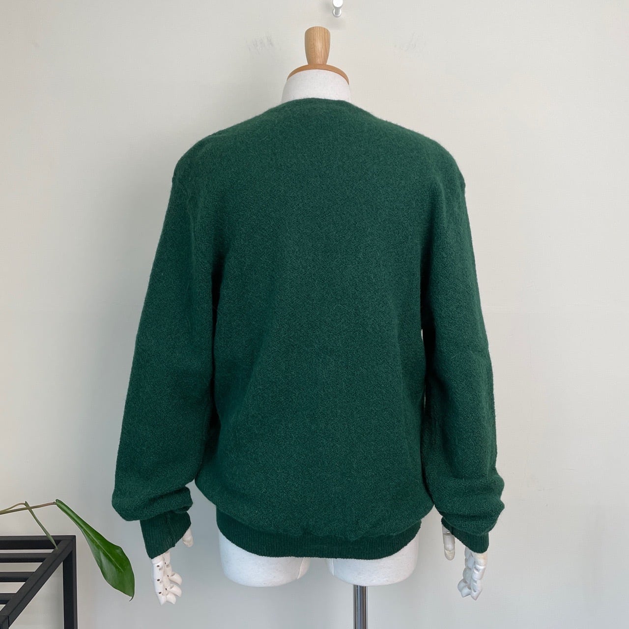 70s 80s USA製 Bullock & Jones アルパカ ニット カーディガン ヴィンテージ ボロ 古着 緑 グリーン 無地 70年代 80年代 ビンテージ XL 25112301