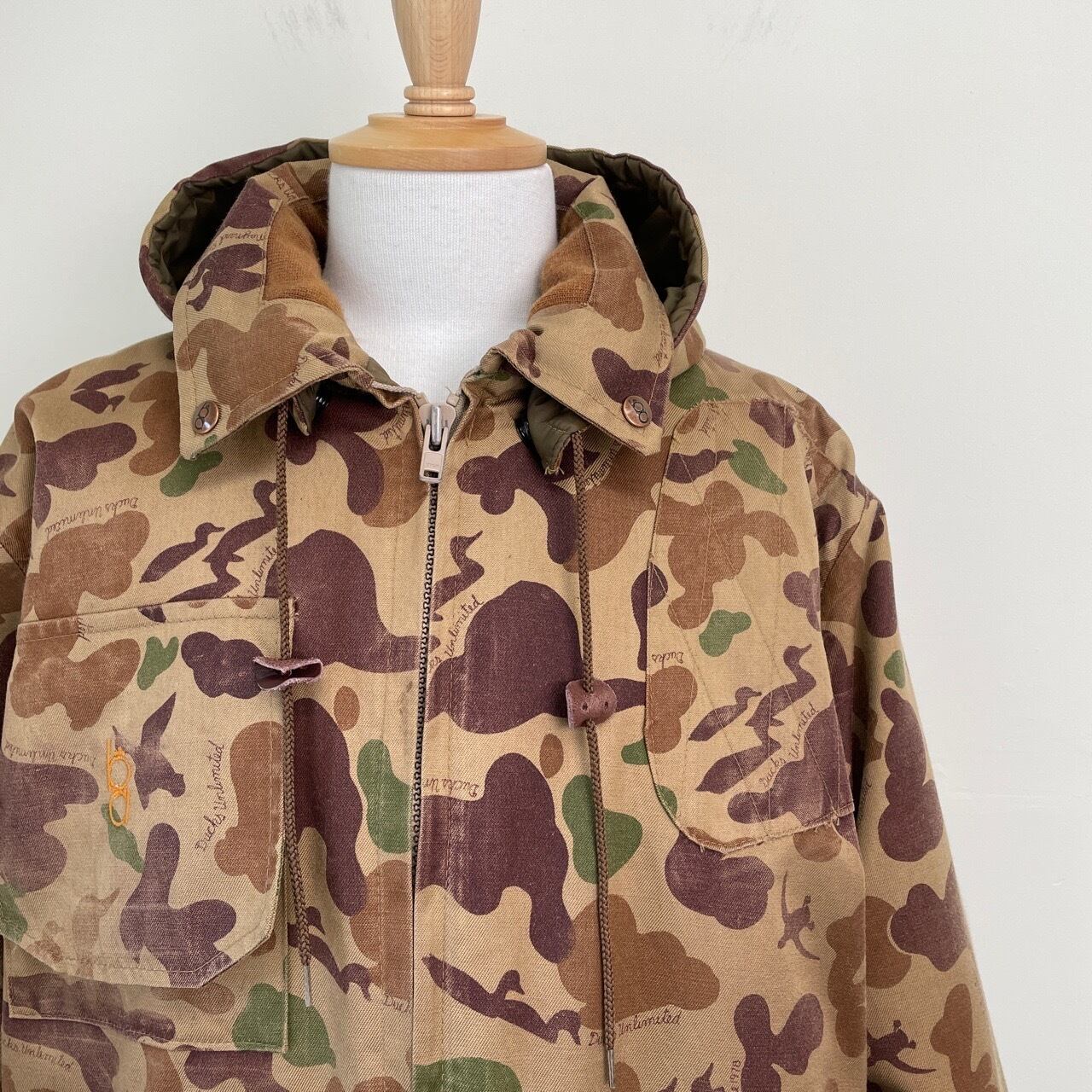 80s 90s Bob Allen GORE-TEX ダックハンターカモ ハンティングジャケット ヴィンテージ 古着 マウンテンパーカー フード付き ナイロン ボブアレン ゴアテックス アウトドア 中綿 80年代 90年代 ビンテージ L 25112308