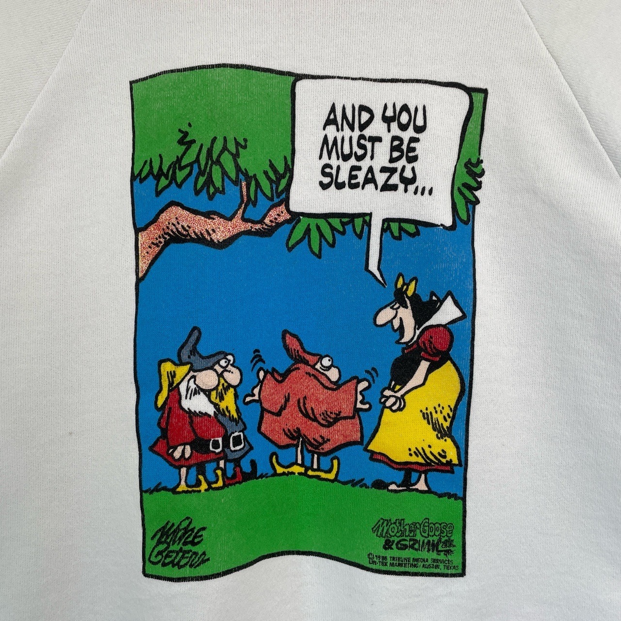 80s USA製 Mother Goose & Grimm スウェット ヴィンテージ 古着 マザーグース&グリム 漫画 アート コミック アメコミ マイクピーターズ 白 ホワイト 80年代 ビンテージ L 25112312