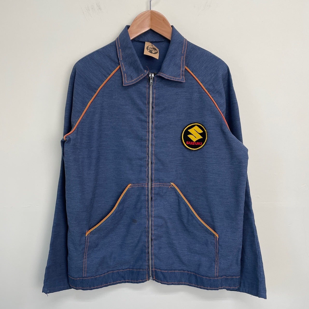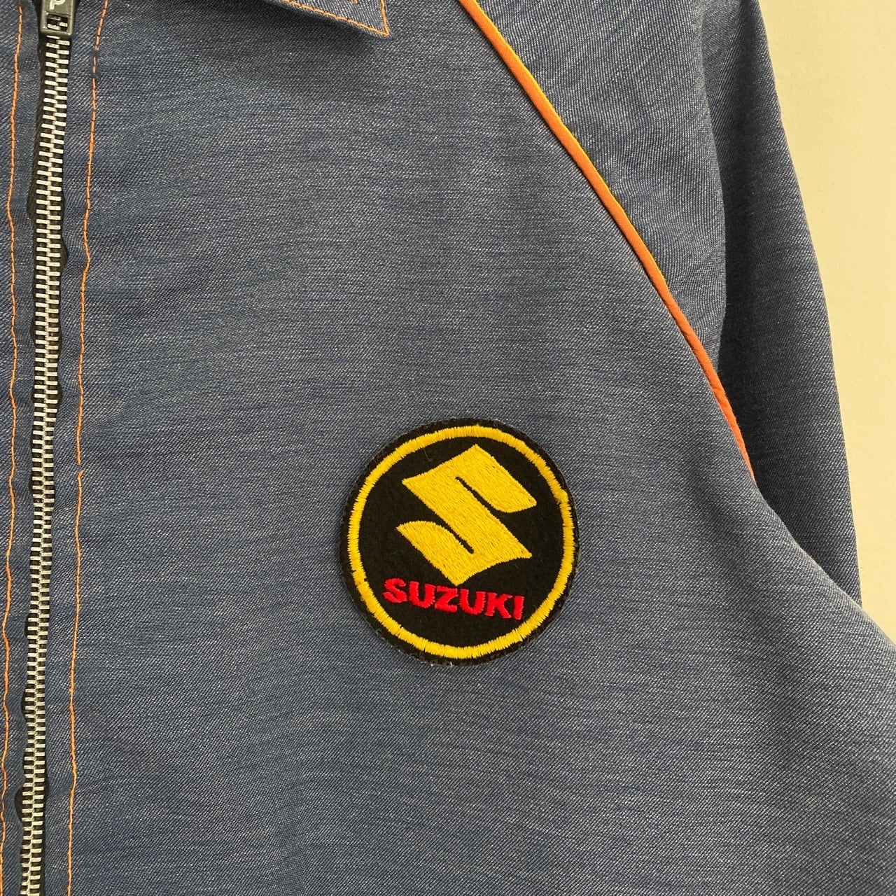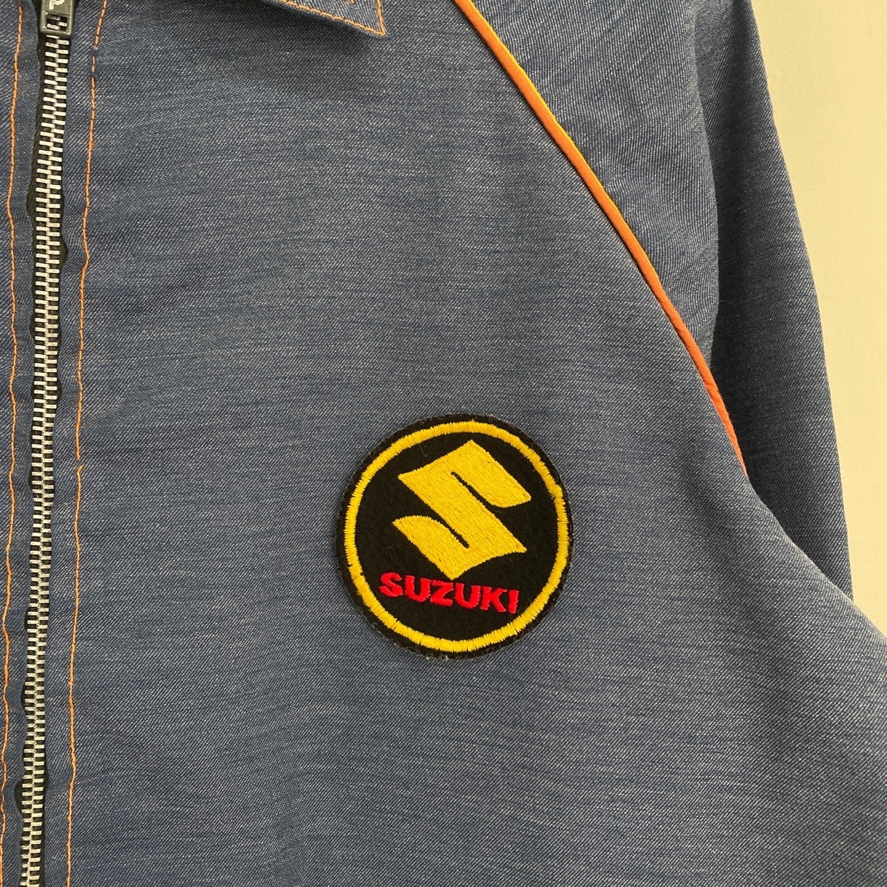 70s SUZUKI ワッペン付きワークジャケット ヴィンテージ 古着 レーシングジャケット スイングトップ スウィングトップ ブルゾン ライトアウター シャンブレー 70年代 ビンテージ レディース 25112401