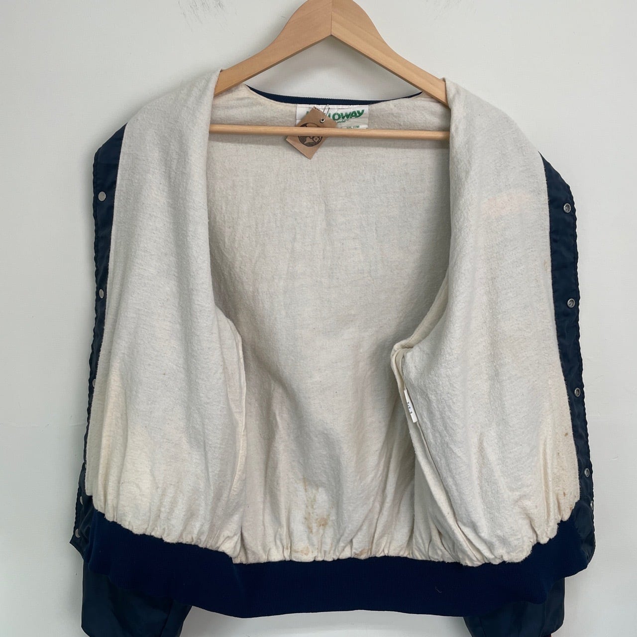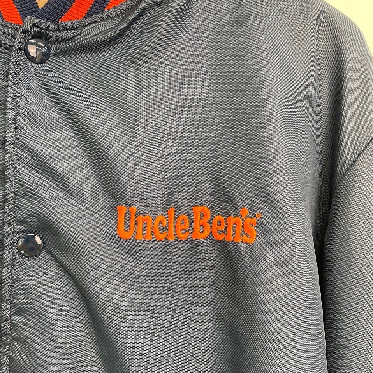 80s 90s USA製 Uncle Ben's 企業ロゴ スタジャン ヴィンテージ 古着 ナイロン ブルゾン Holloway 紺 ネイビー 80年代 90年代 ビンテージ L 25112412