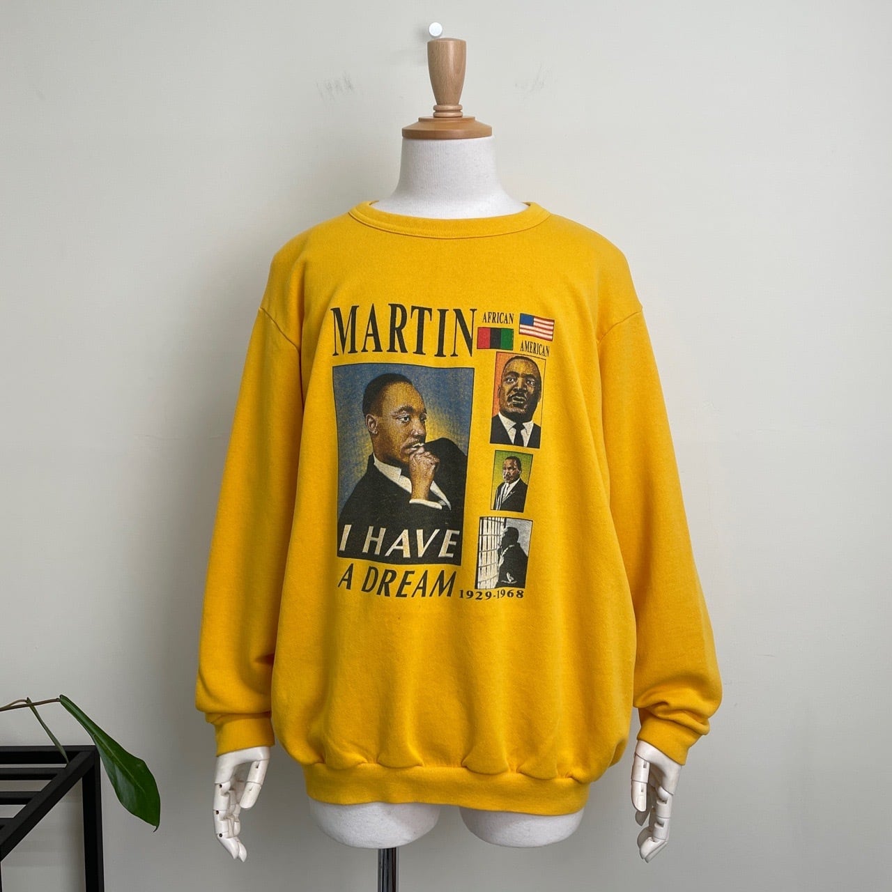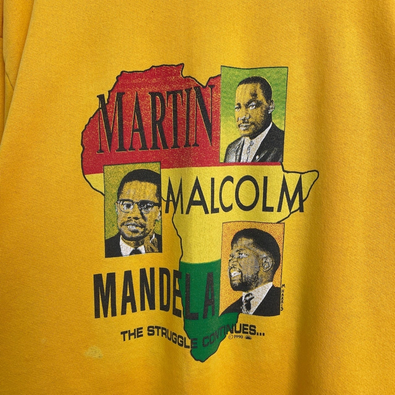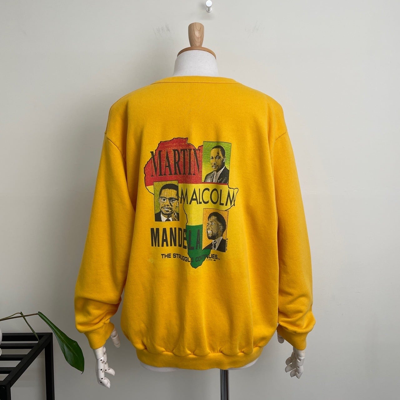 90s キング牧師 マルコムX マンデラ スウェット ヴィンテージ 古着 ブラックパワー 黒人 黄色 イエロー 90年代 ビンテージ 25112501