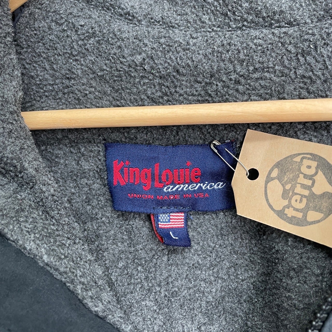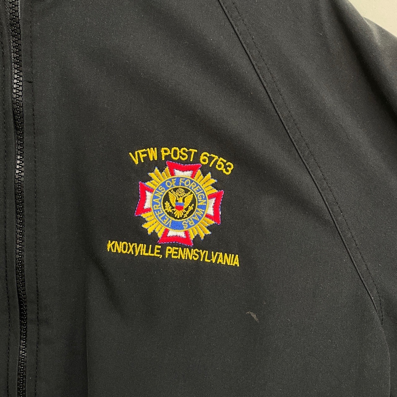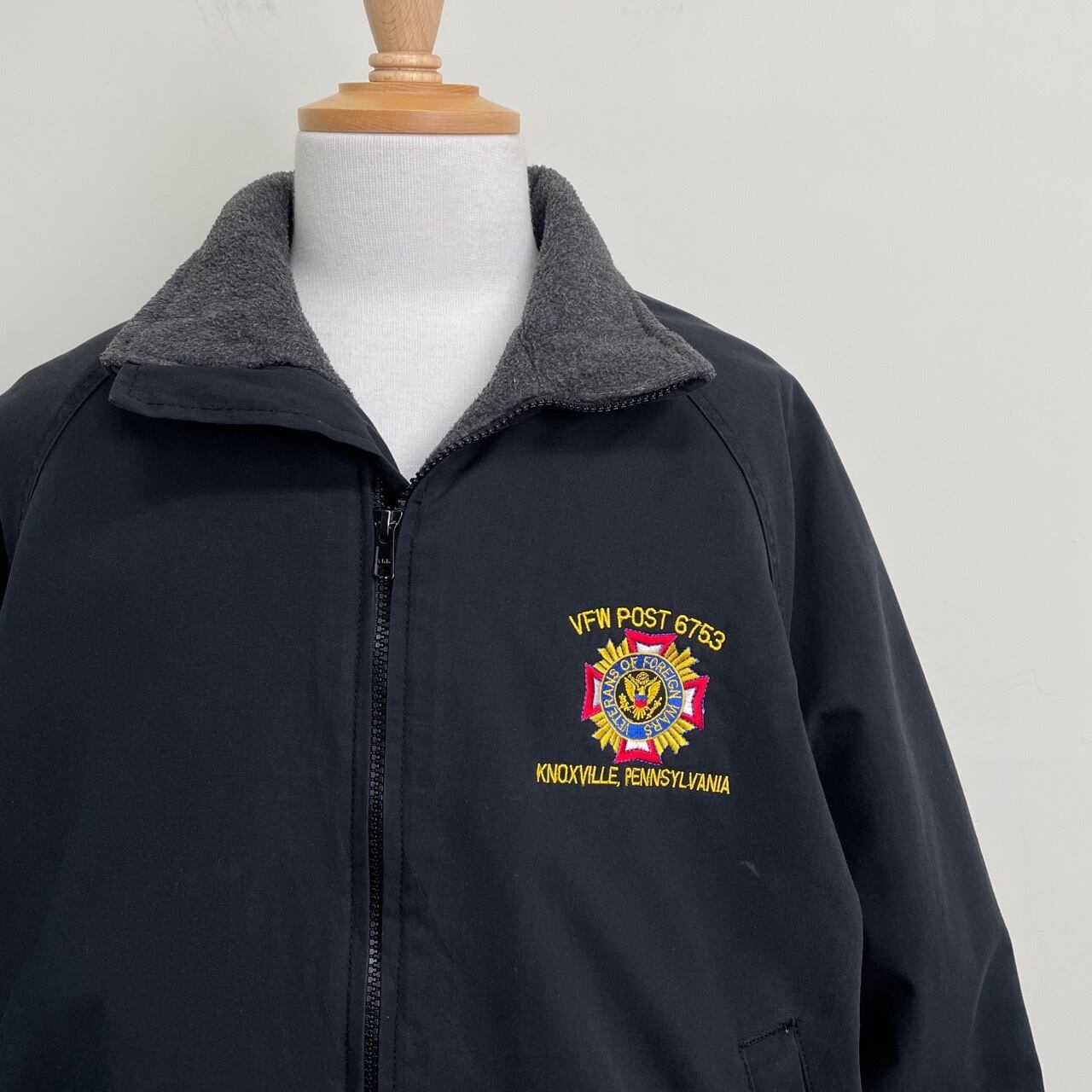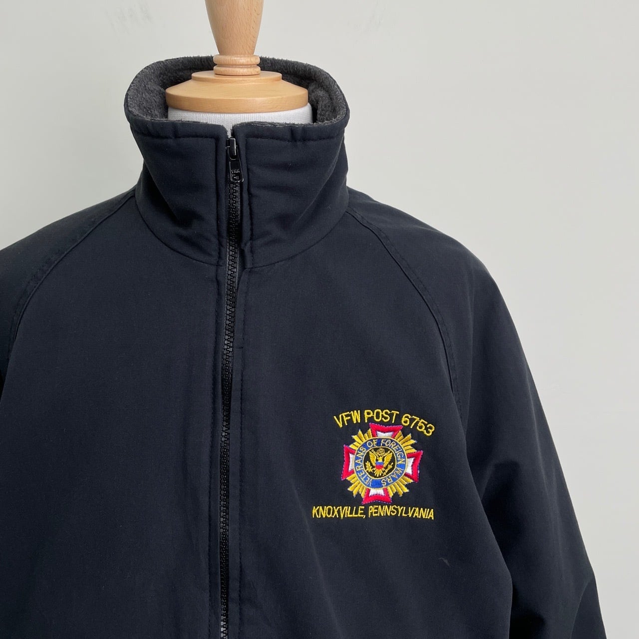 90s 00s USA製 King Louie VFW刺繍 ウォームアップジャケット ヴィンテージ 古着 黒 ブラック ミリタリー 裏フリース シェルジャケット ブルゾン 90年代 ビンテージ L 25112510