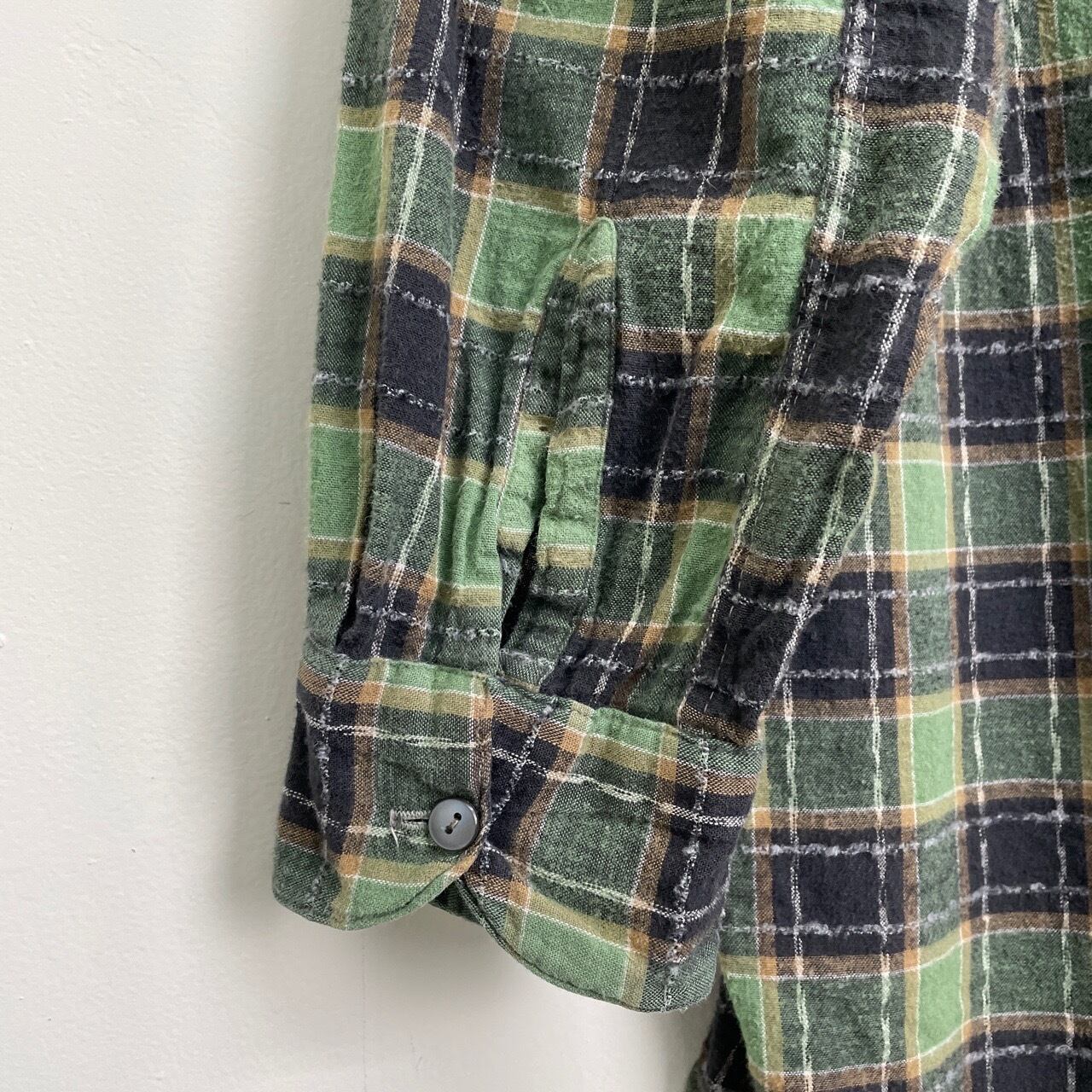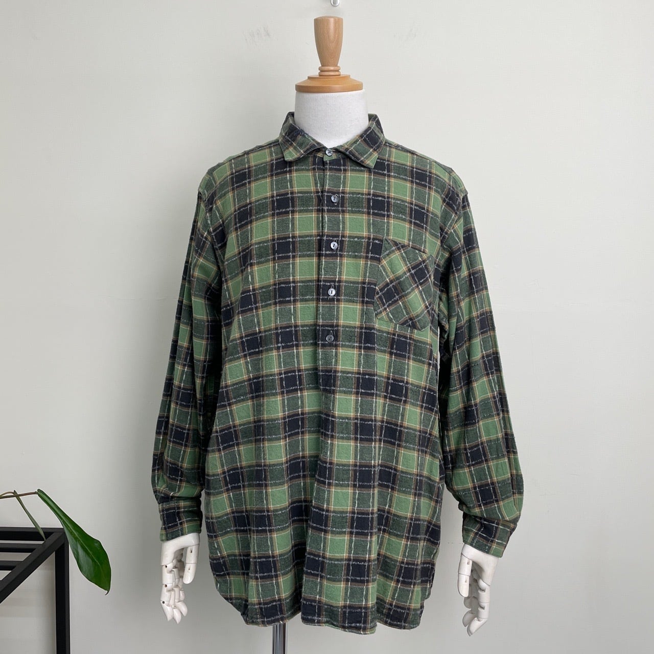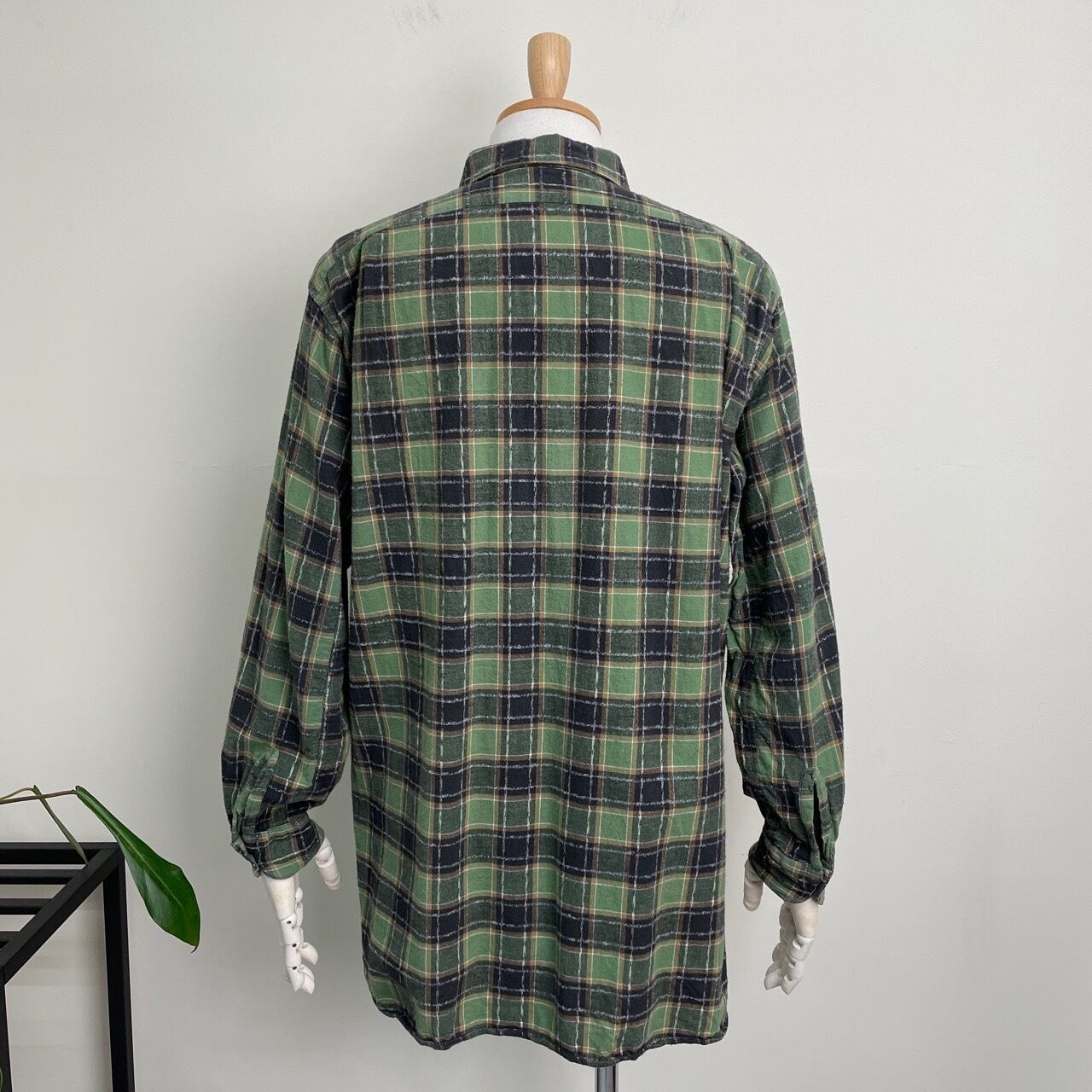 50s 60s ユーロ マチ付き チェック ネルシャツ プルオーバー ヴィンテージ 古着 ライトネル 長袖シャツ 50年代 60年代 ビンテージ 黄緑 グリーン 25112512