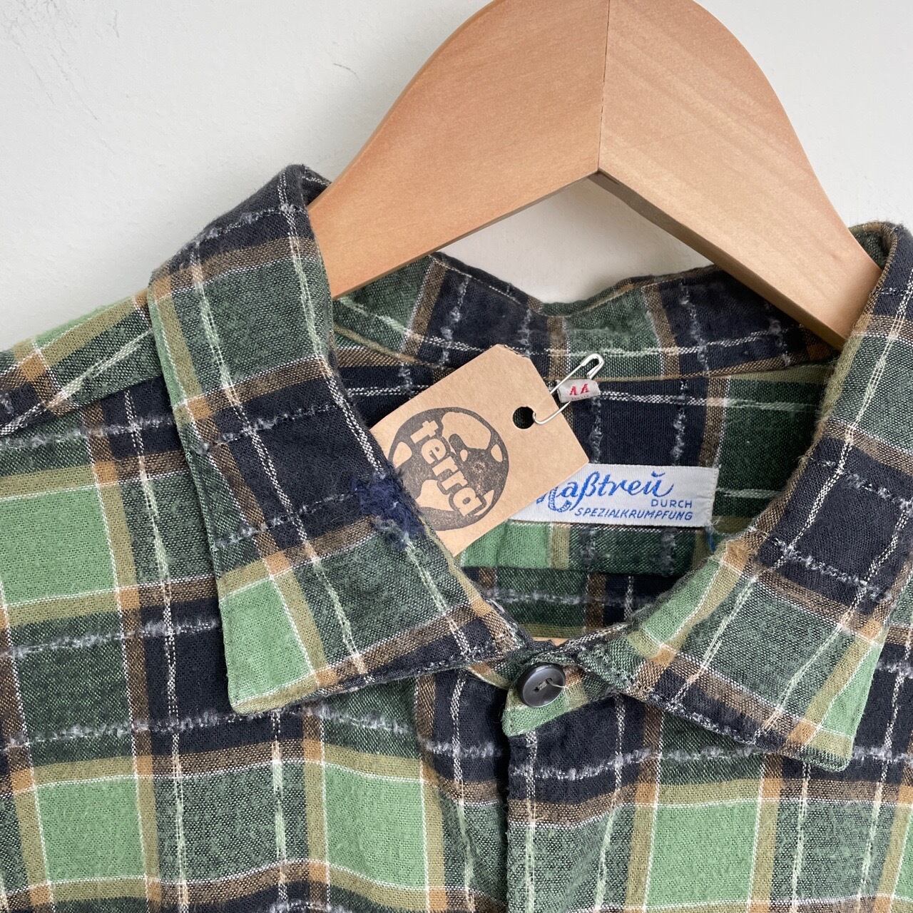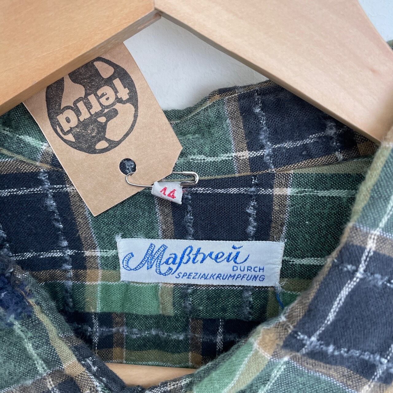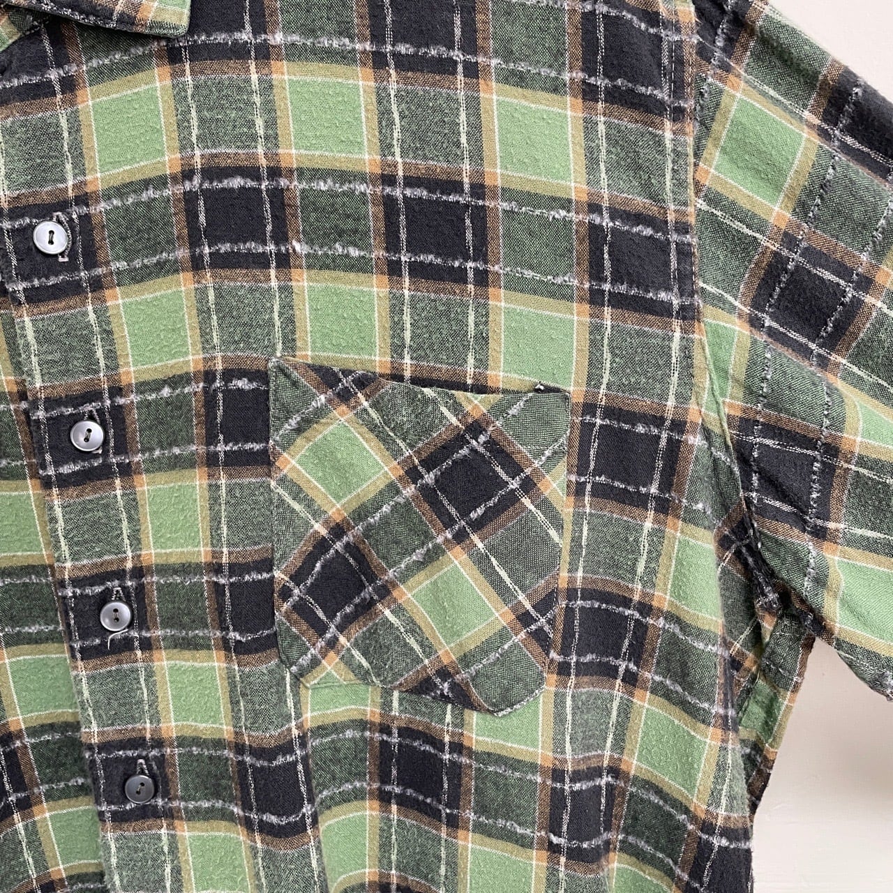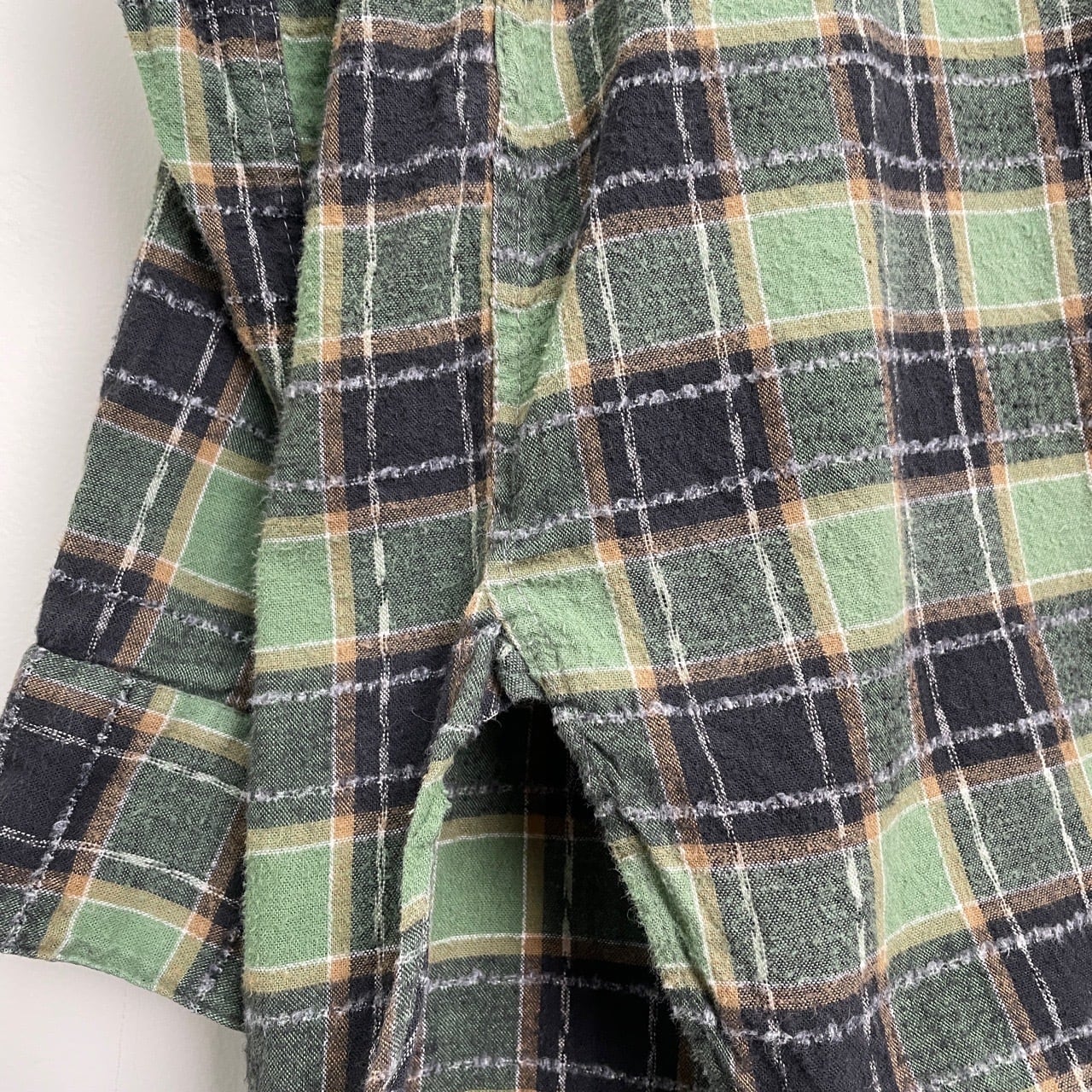 50s 60s ユーロ マチ付き チェック ネルシャツ プルオーバー ヴィンテージ 古着 ライトネル 長袖シャツ 50年代 60年代 ビンテージ 黄緑 グリーン 25112512