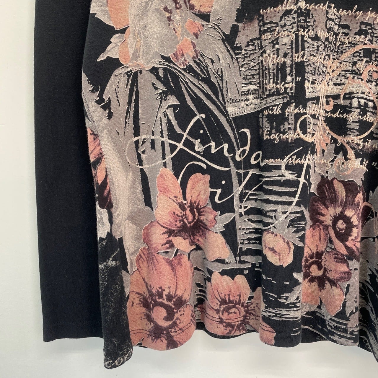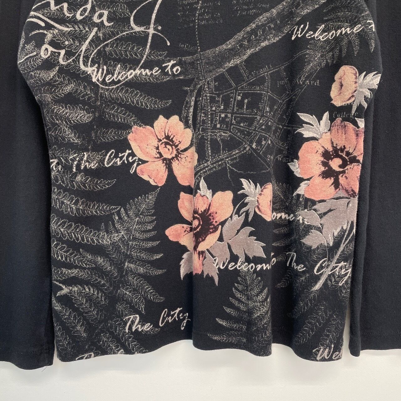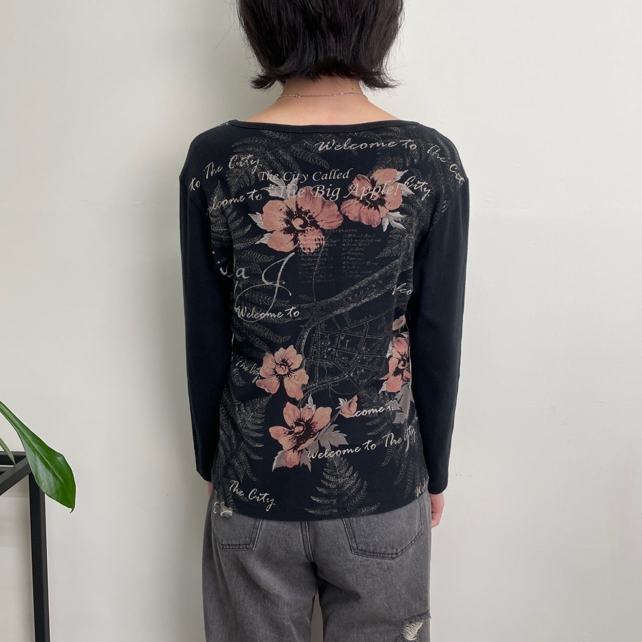 Y2K dressbarn レディース ロンT カットソー 長袖Tシャツ 黒 ブラック 花 自由の女神 New York ニューヨーク 00s アーカイブ USA製 M 25120409