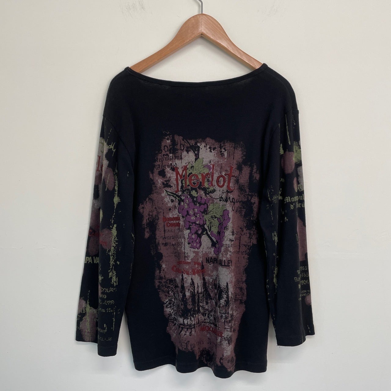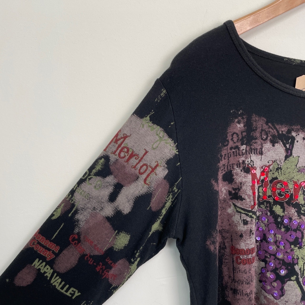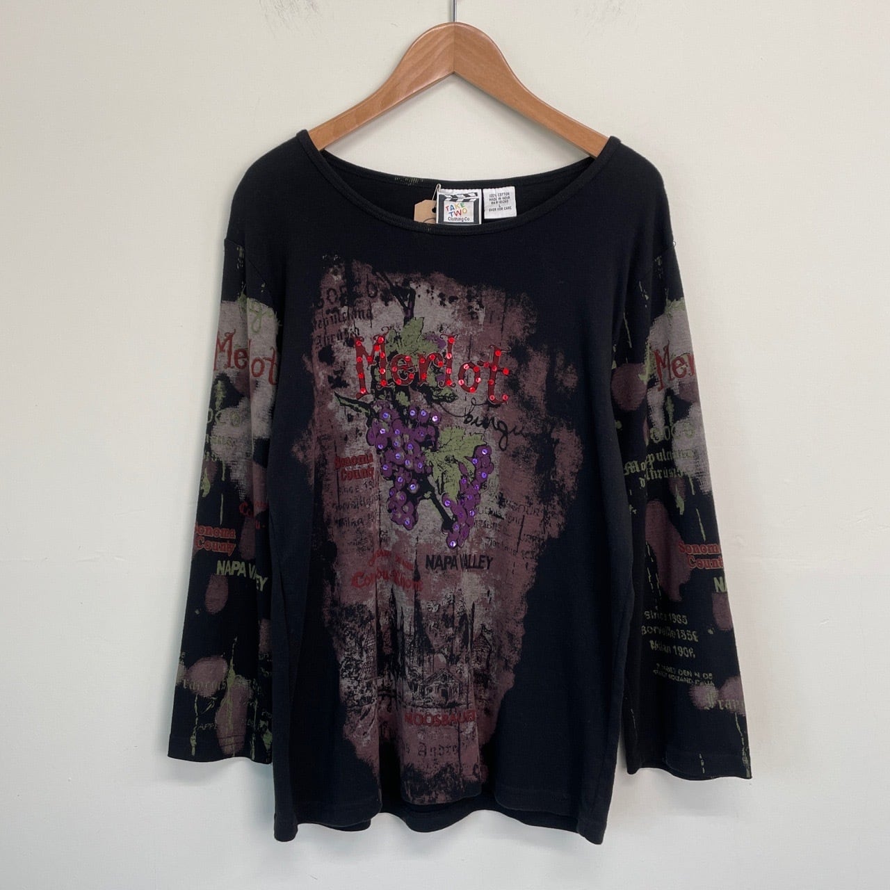 Y2K TAKE TWO レディース ロンT カットソー 長袖Tシャツ 黒 ブラック スパンコール ぶどう ブドウ パンク グランジ 00s アーカイブ L 25120410
