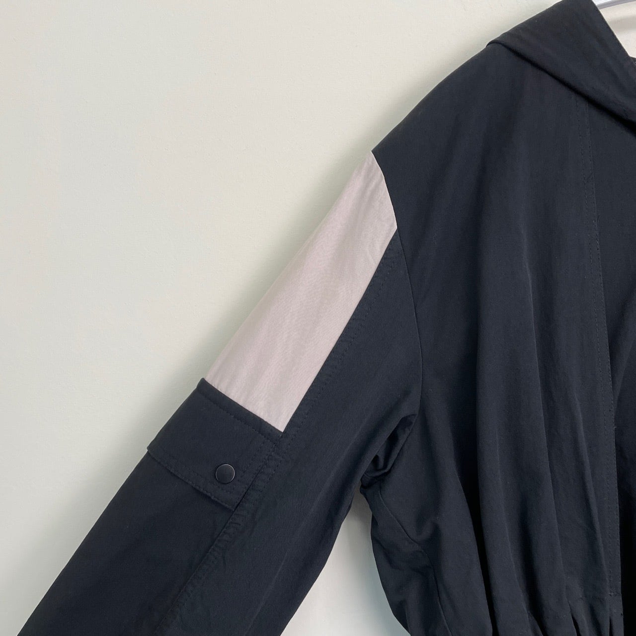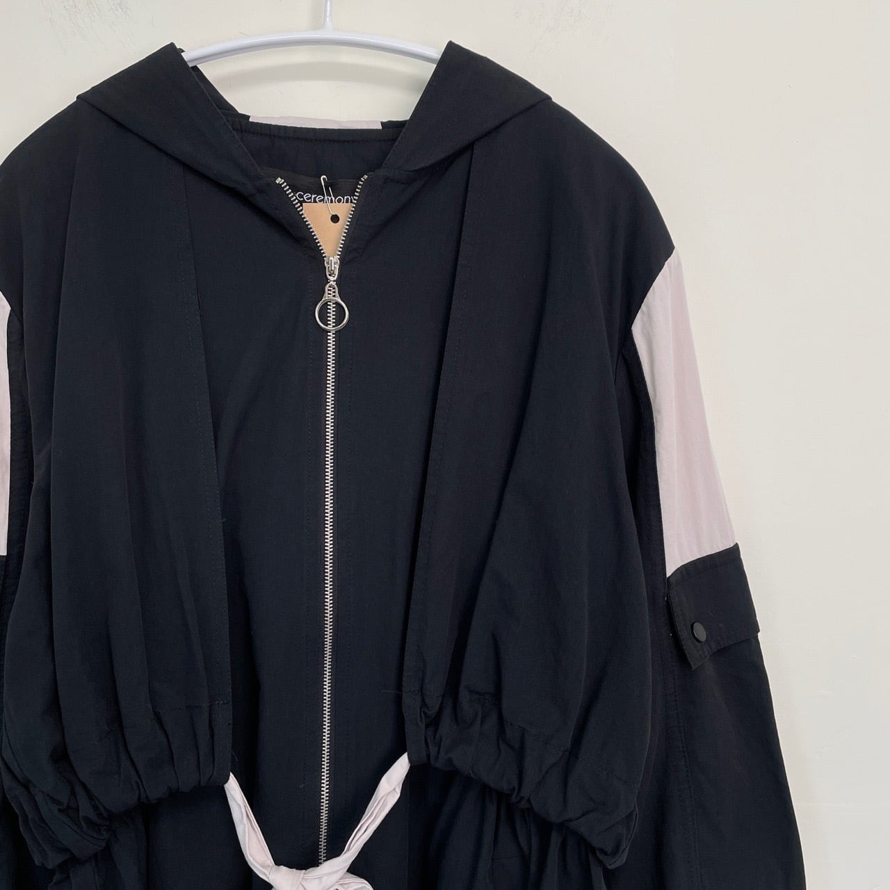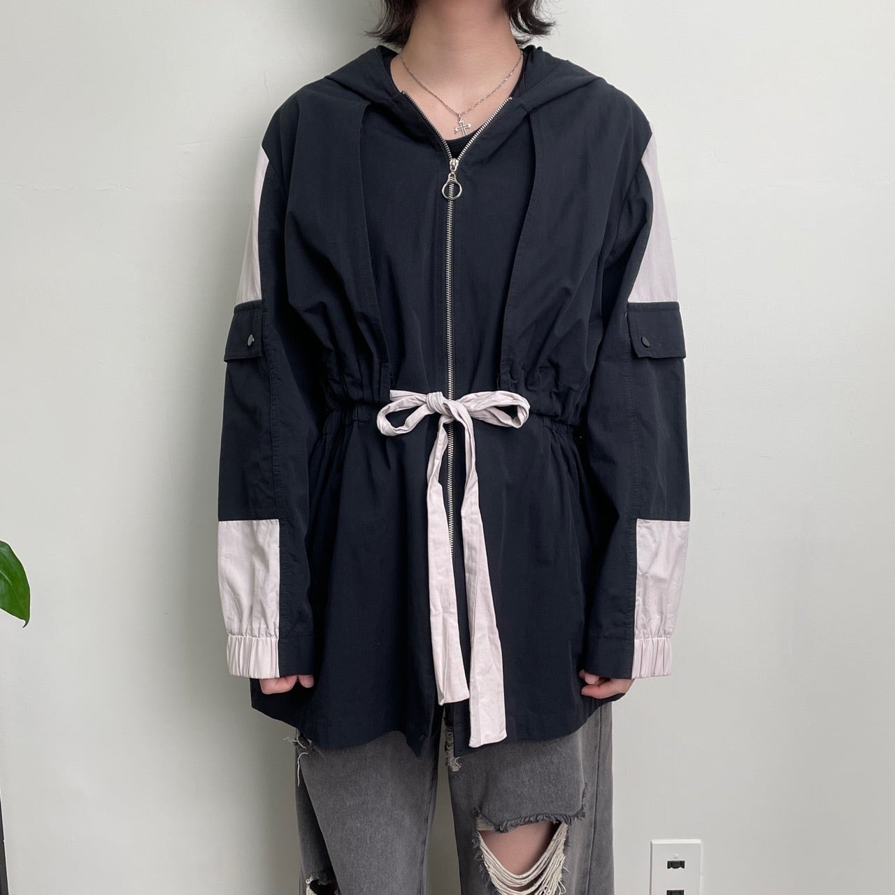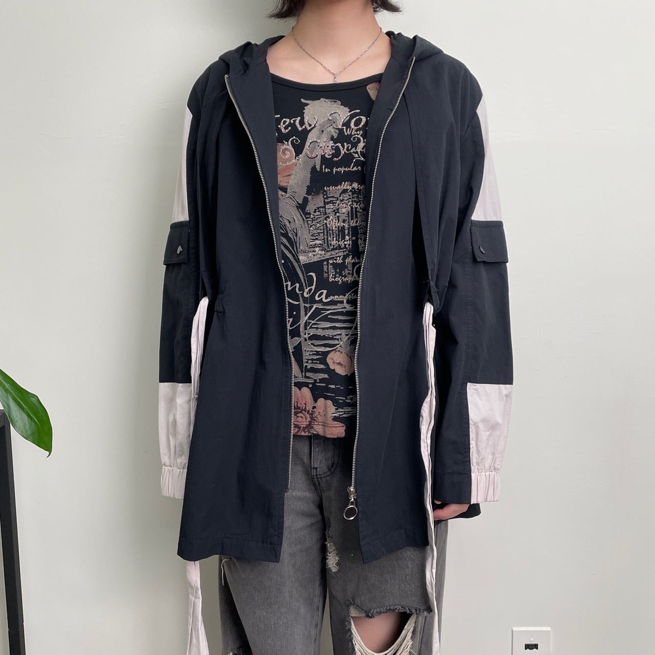 Y2K レディース コットン フードジャケット アウター 黒 ブラック 白 ホワイト モノトーン ジップアップ 羽織り トルコ製 00s アーカイブ 25120411