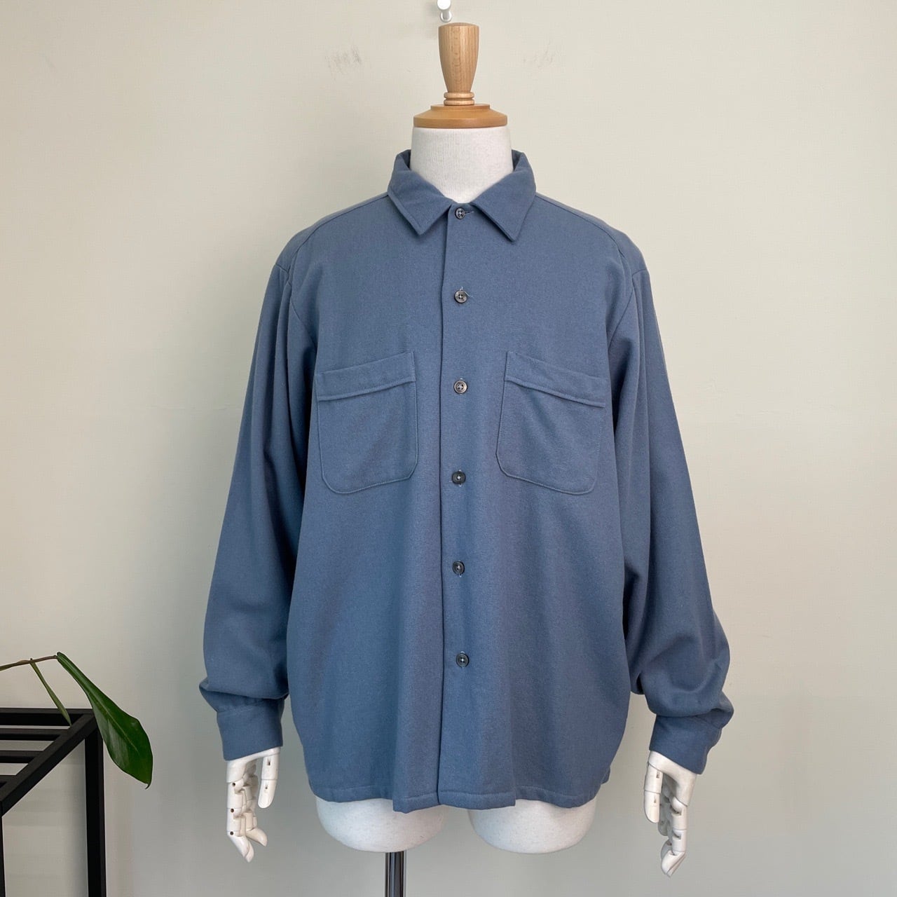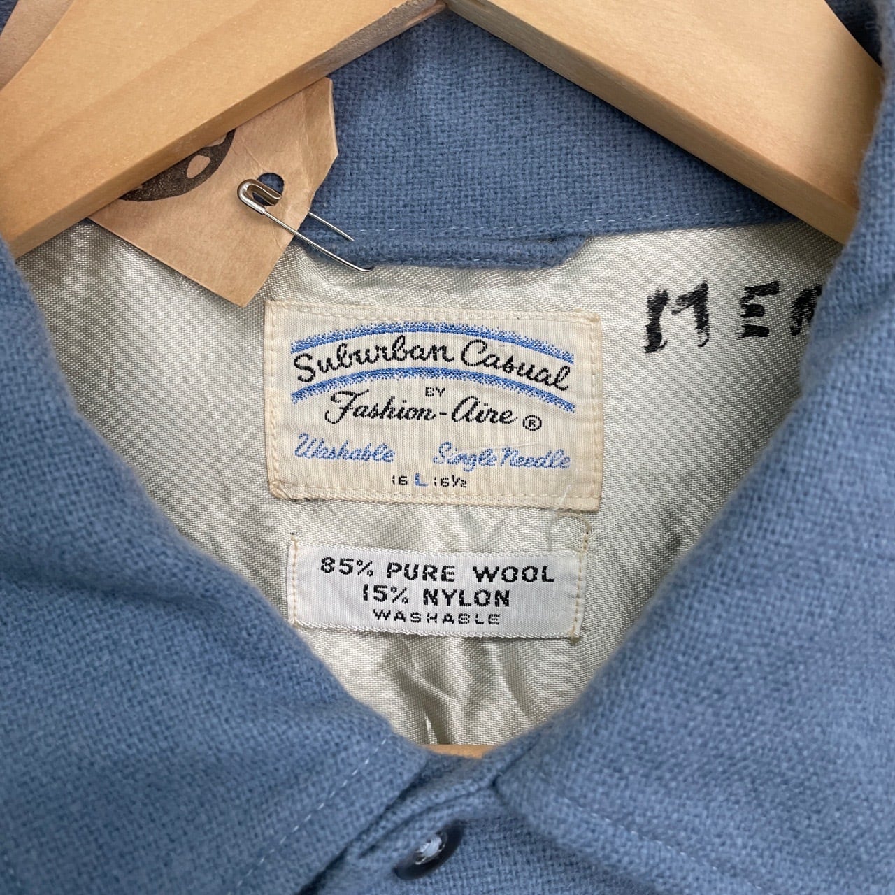 50s 60s ウール ボックスシャツ ヴィンテージ 古着 水色 ライトブルー 無地 50年代 60年代 長袖シャツ ビンテージ L ウールシャツ 25120413