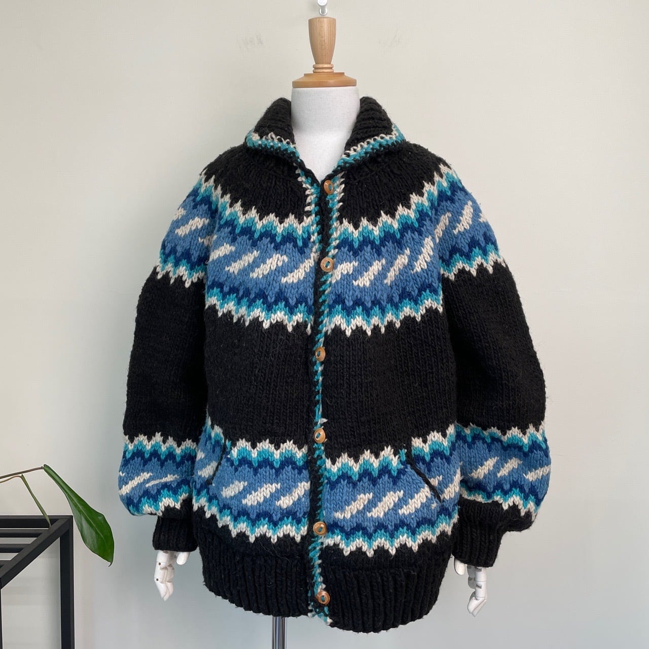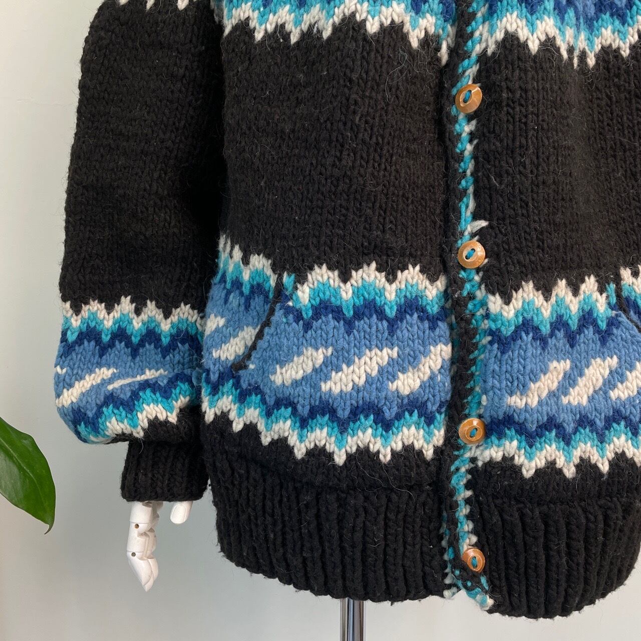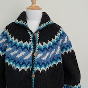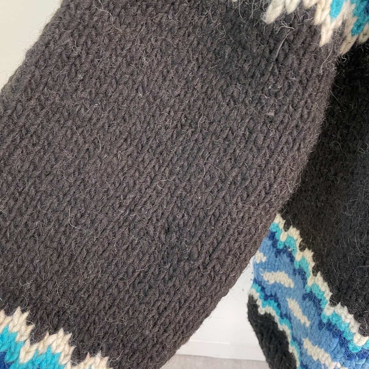 80s 90s Magic Mountain エクアドルニット ハンドニット カーディガン セーター ヴィンテージ 古着 柄ニット カウチン 黒 ブラック 80年代 90年代 ビンテージ 25120414