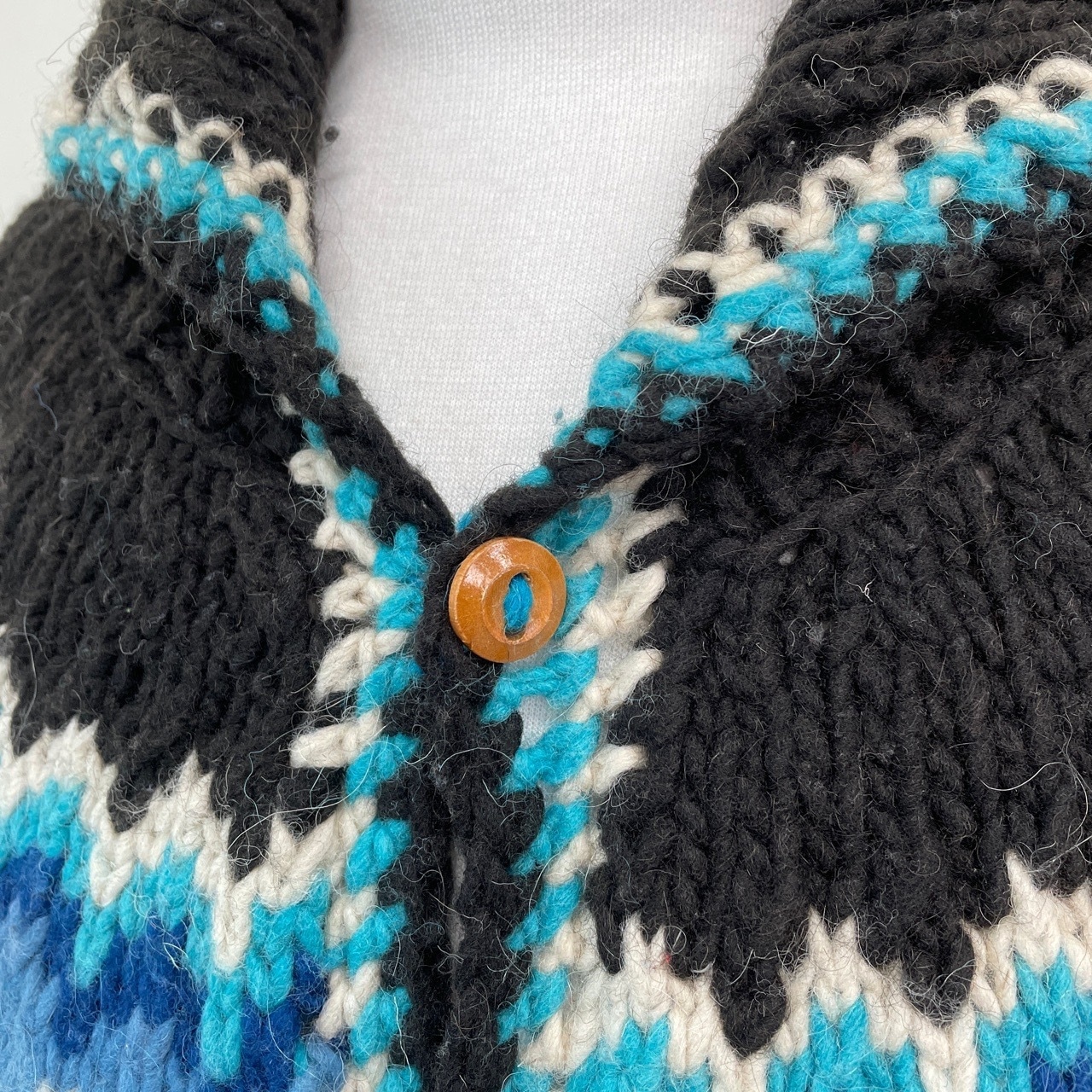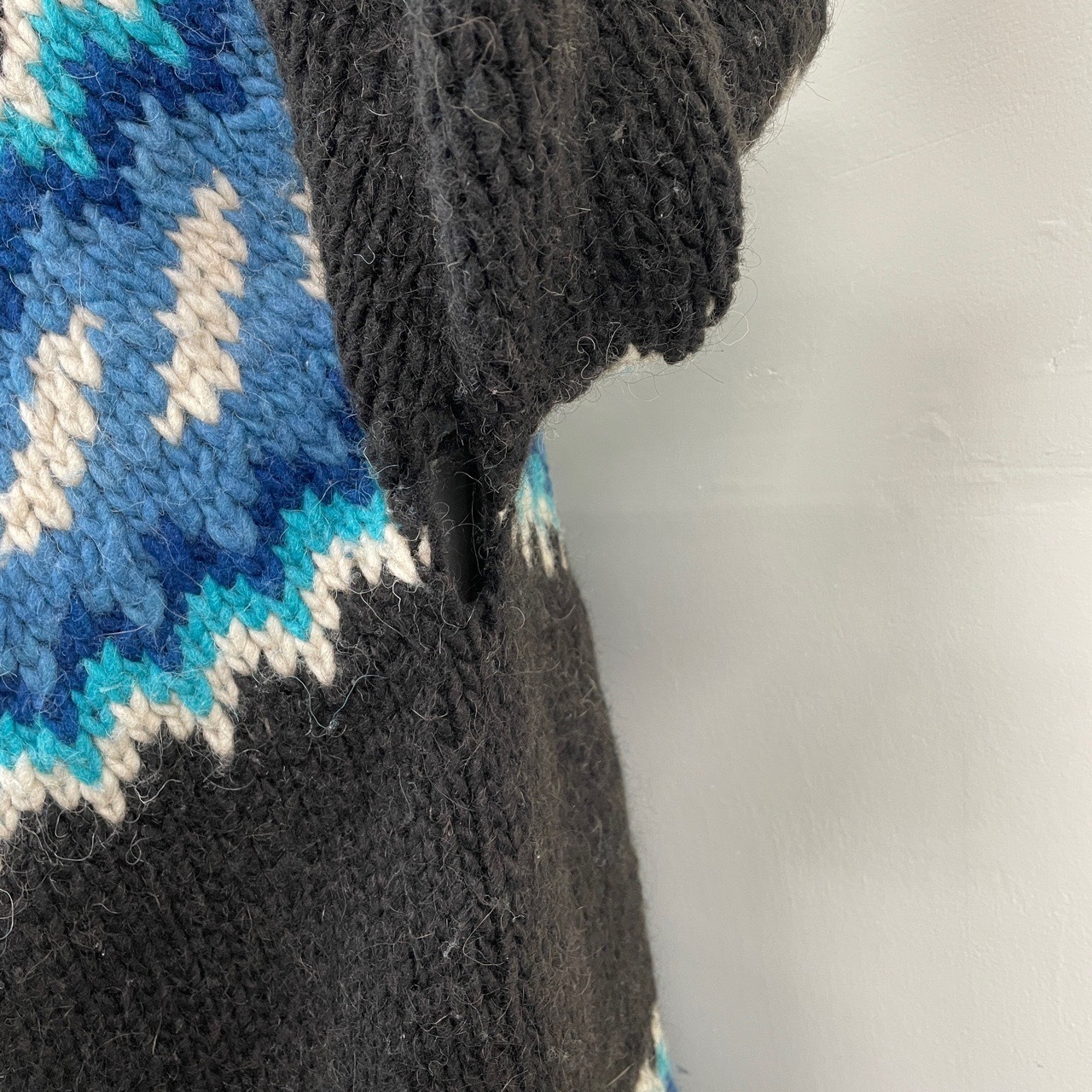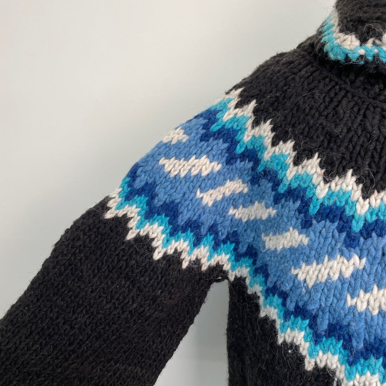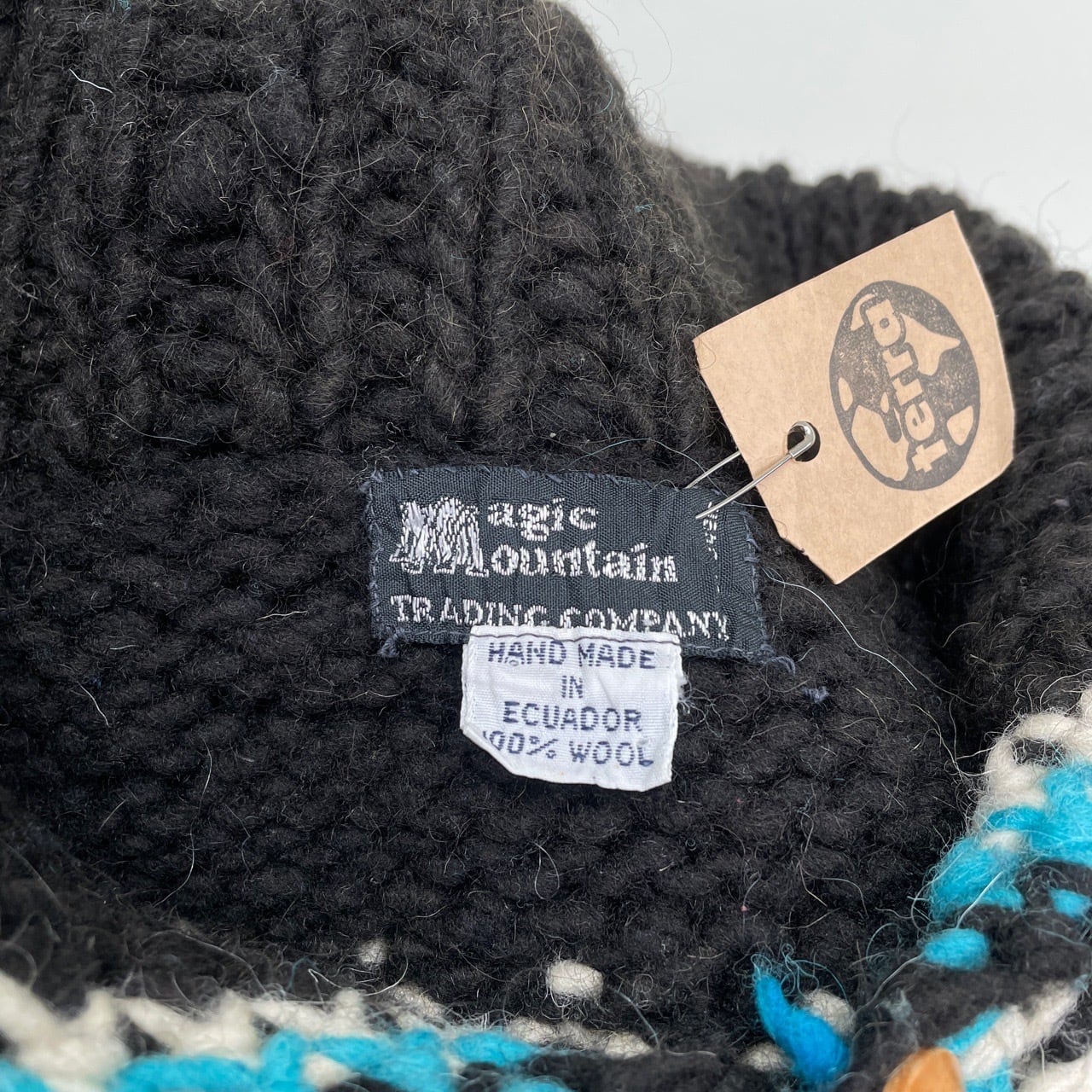 80s 90s Magic Mountain エクアドルニット ハンドニット カーディガン セーター ヴィンテージ 古着 柄ニット カウチン 黒 ブラック 80年代 90年代 ビンテージ 25120414
