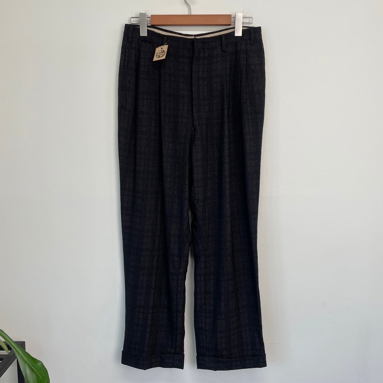 60s チェック ウール ツータック スラックス ヴィンテージ 古着 2タック 黒 ブラック 茶 ブラウン 60年代 ビンテージ W31 25120703