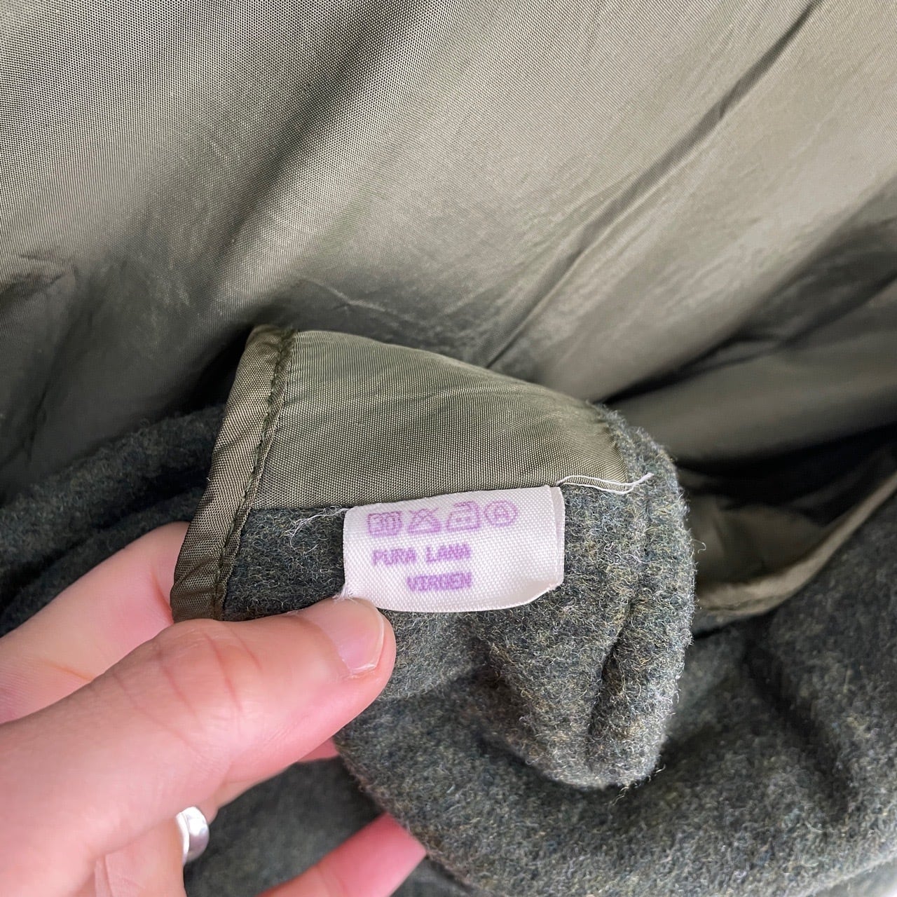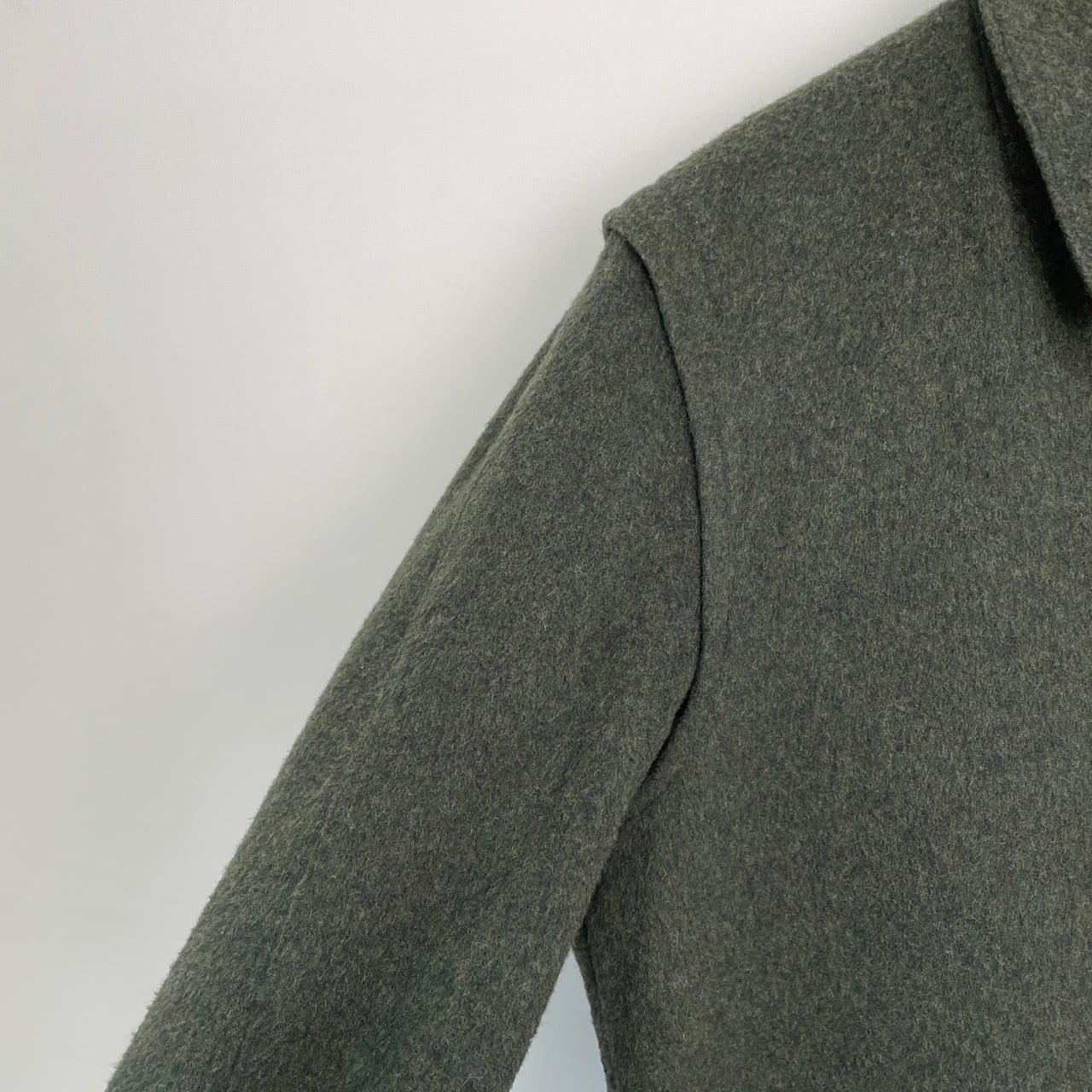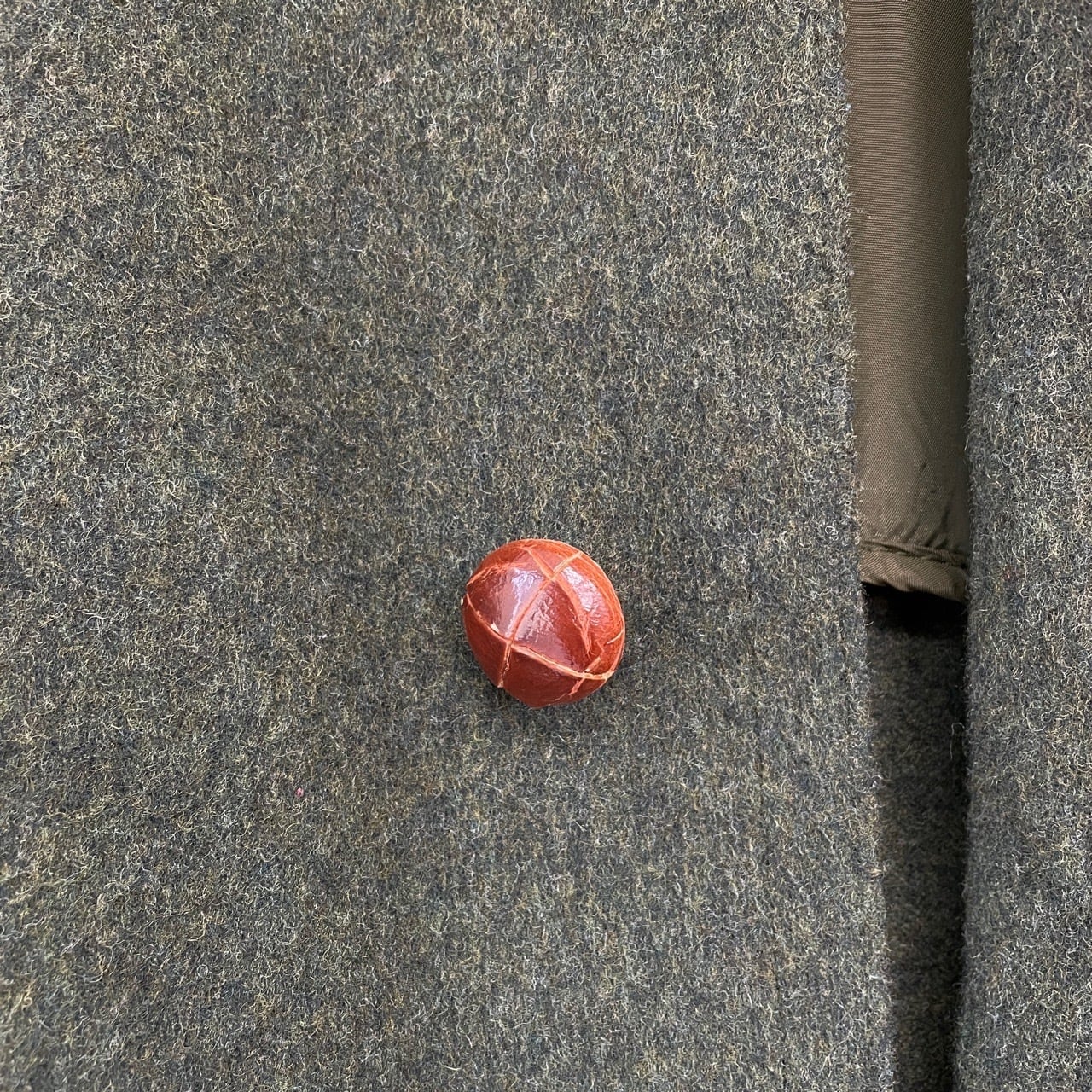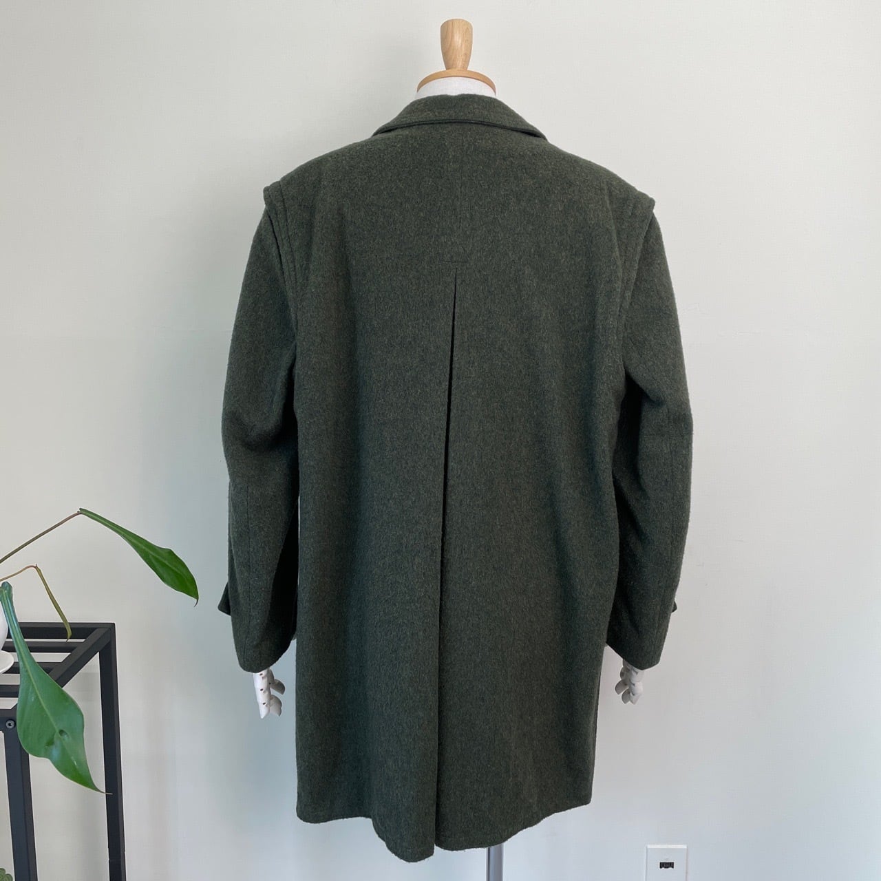 70s Palma スペイン製 ウールコート ヴィンテージ 古着 オリーブグリーン レザーくるみボタン 緑 ハーフコート シングルブレスト 70年代 ユーロ 50 25120802