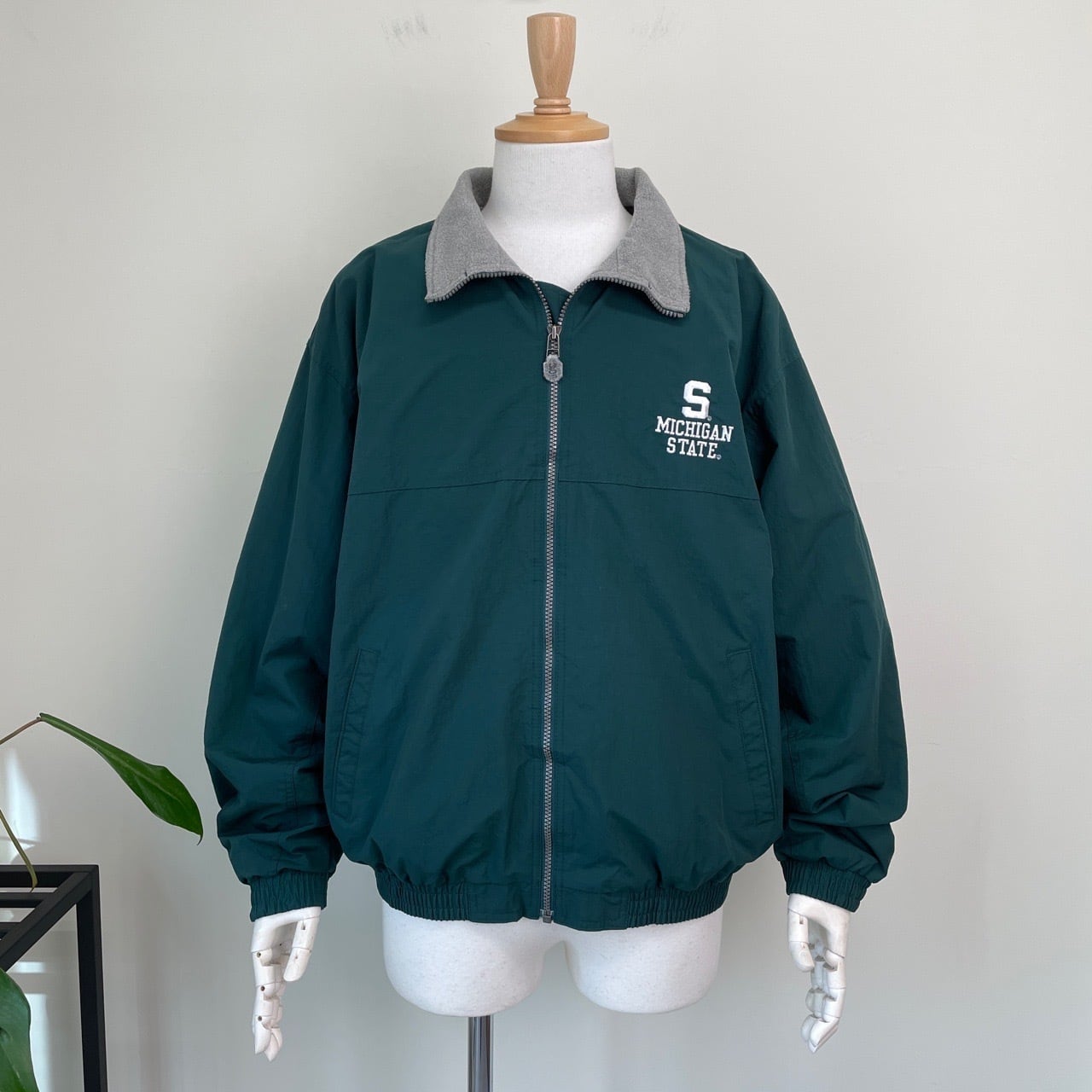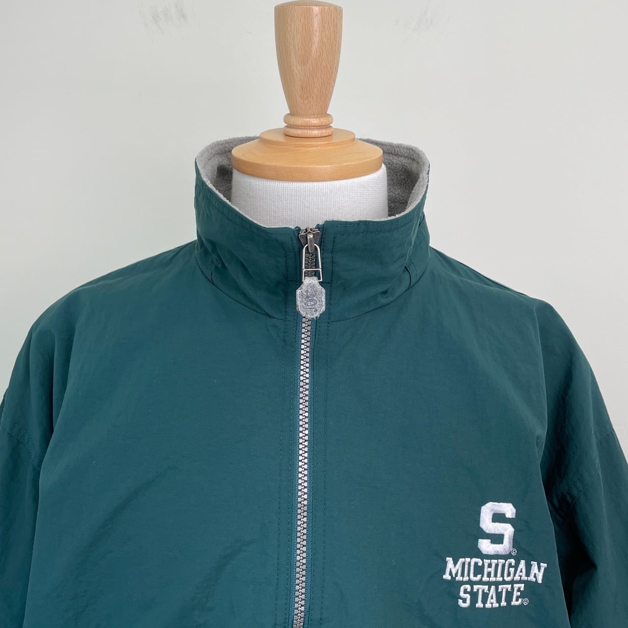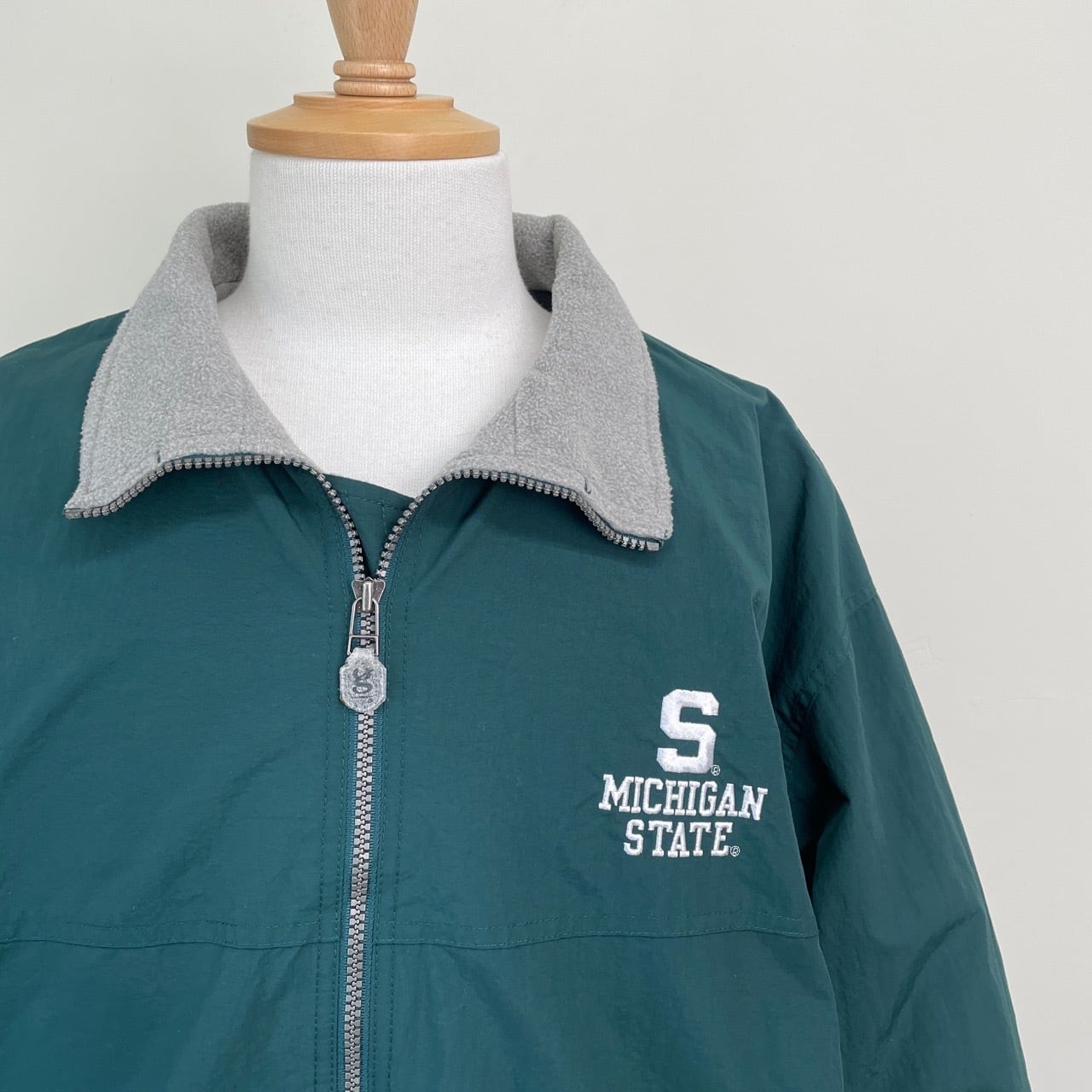 90s 00s MICHIGAN STATE カレッジ ウォームアップジャケット ヴィンテージ 古着 緑 グリーン 刺繍 ミシガン大学 裏フリース ナイロンジャケット ブルゾン アウトドア 90年代 ビンテージ M カレッジロゴ 25120805