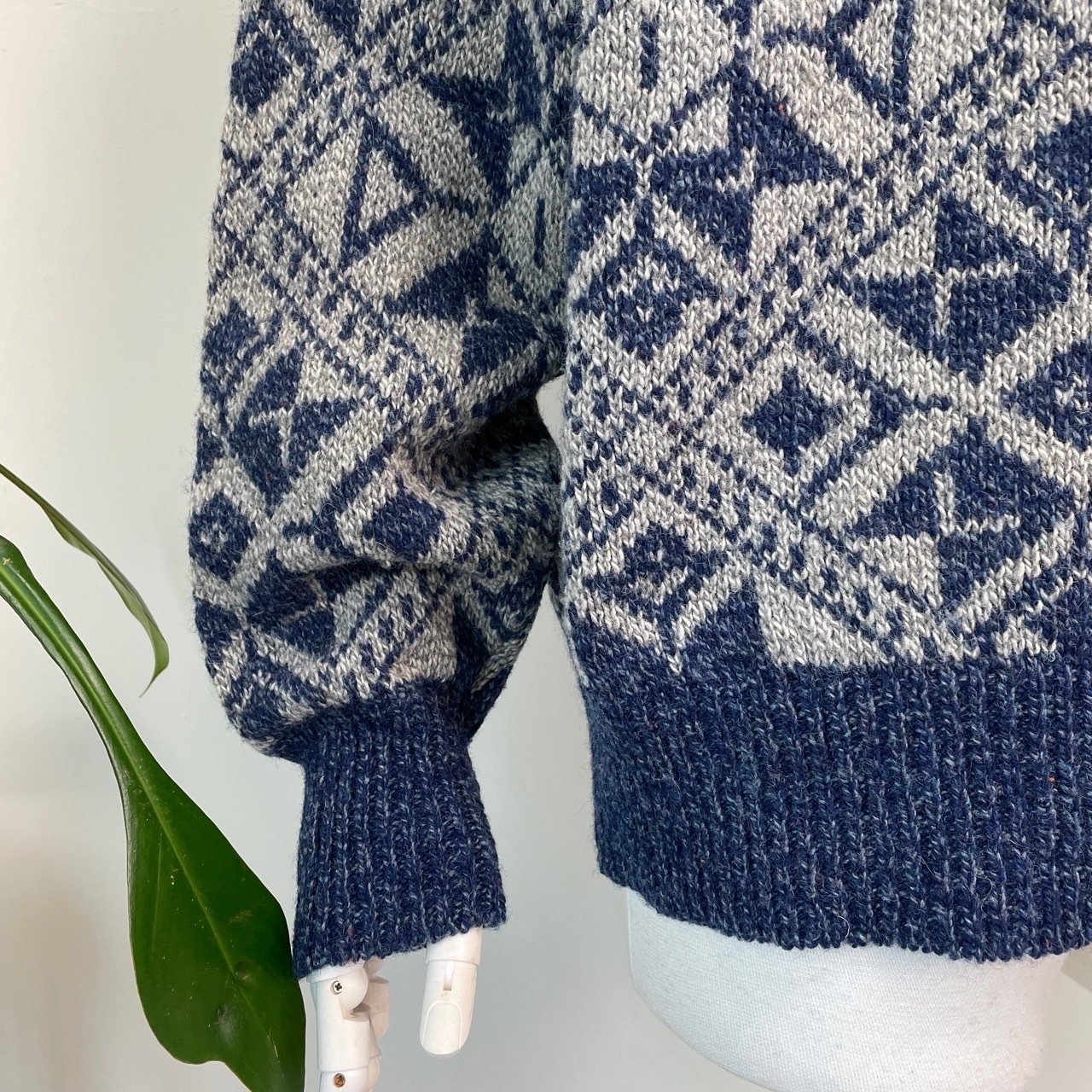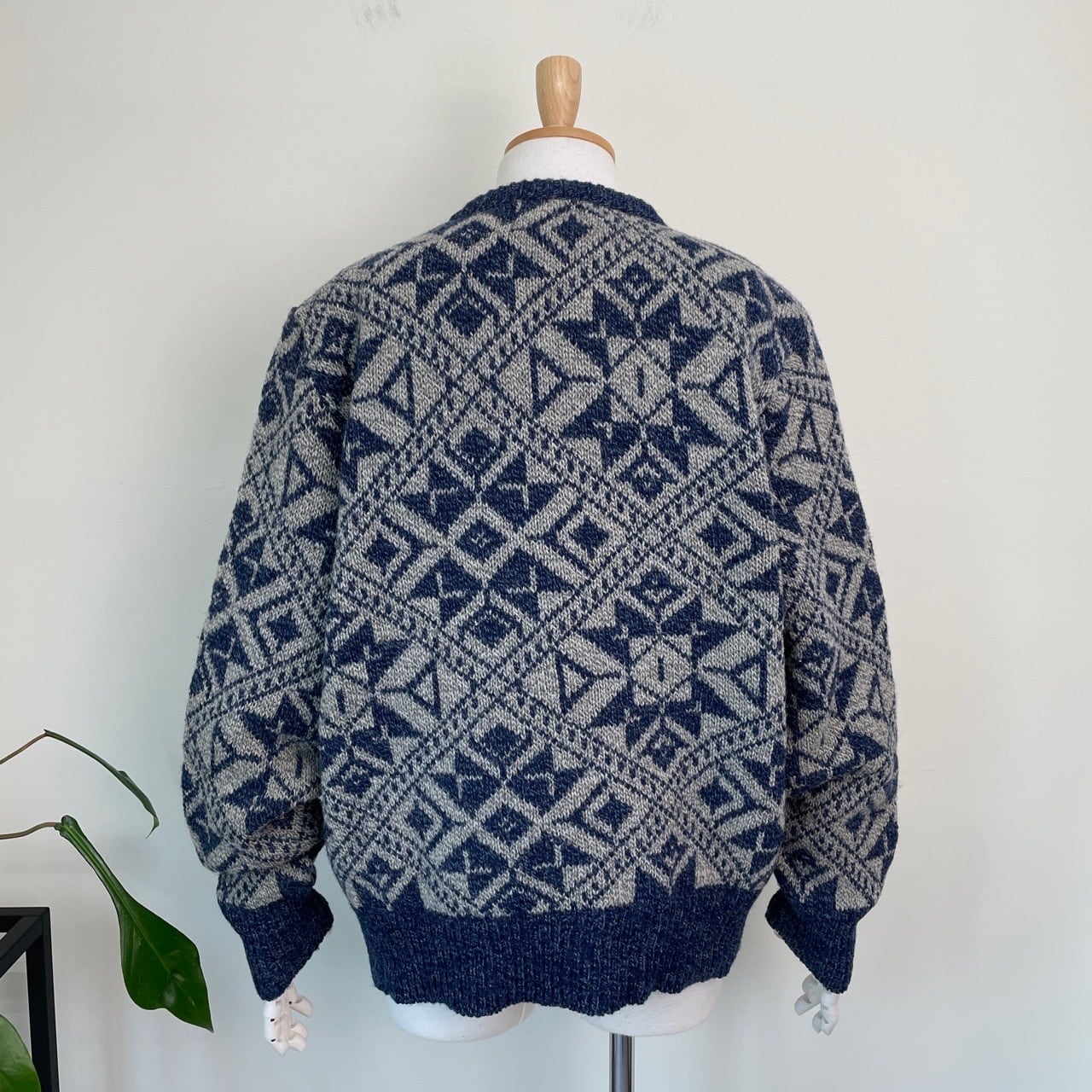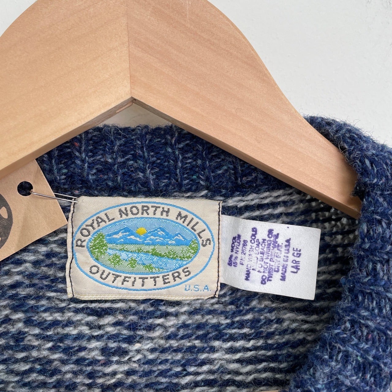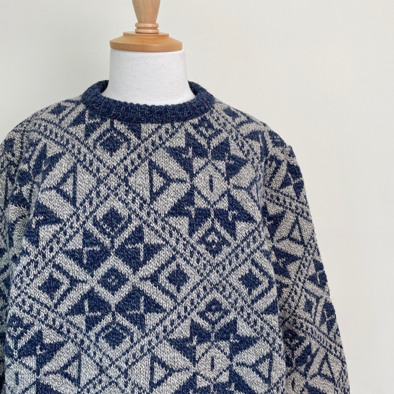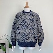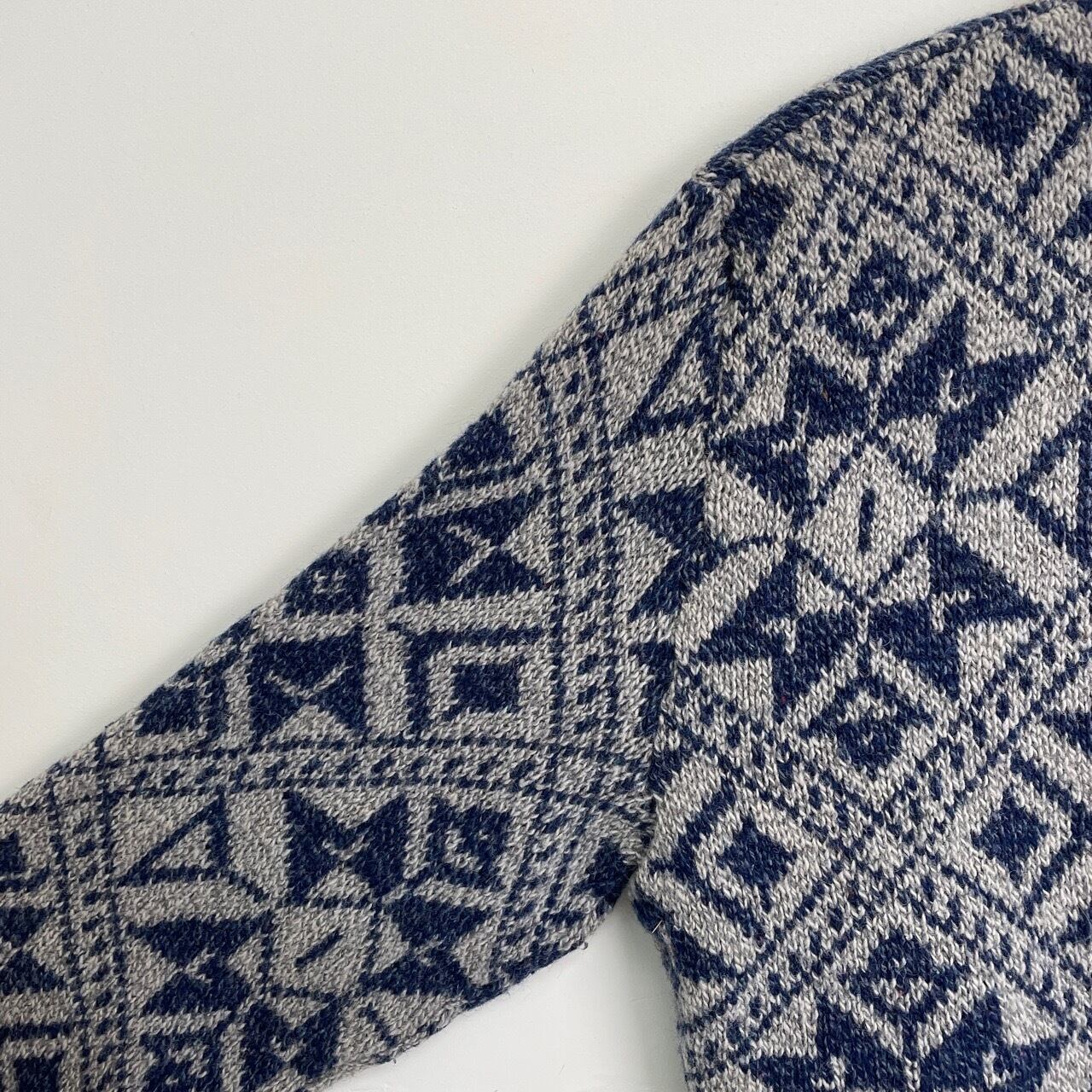 80s 90s USA製 総柄ニット ウール セーター ヴィンテージ 古着 幾何学模様 ROYAL NORTH MILLS 青 ブルー グレー アウトドア 80年代 90年代 ビンテージ L 25120810