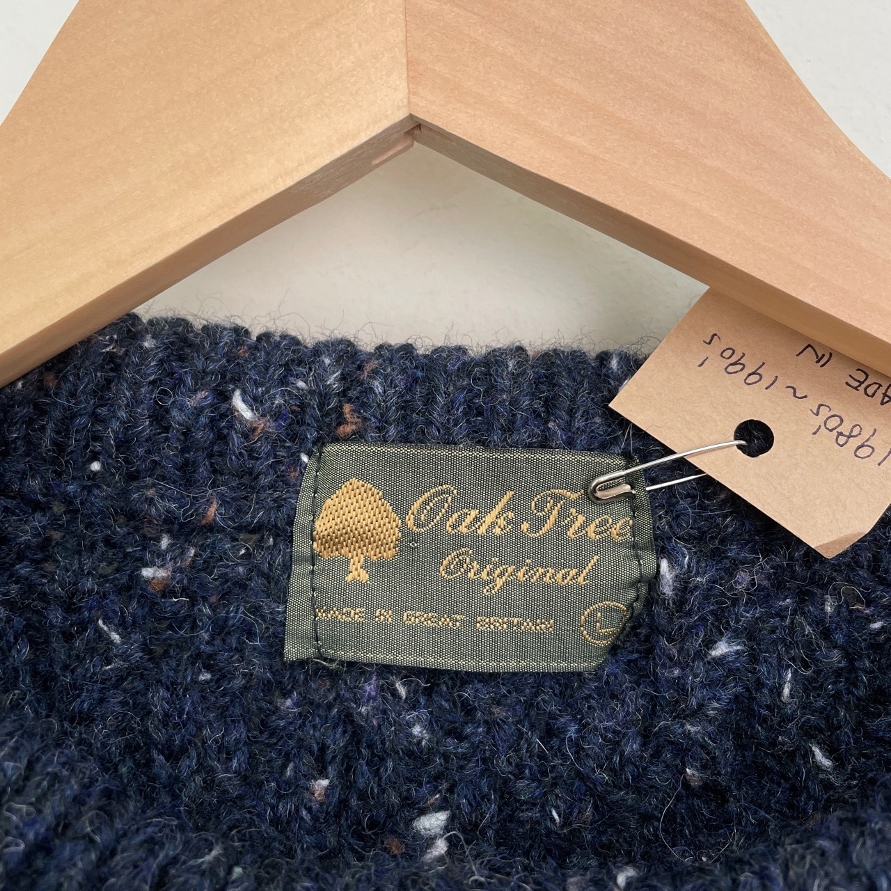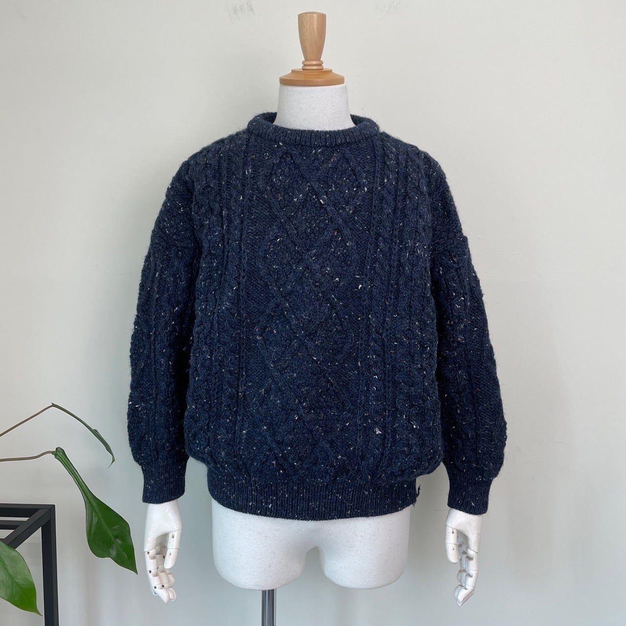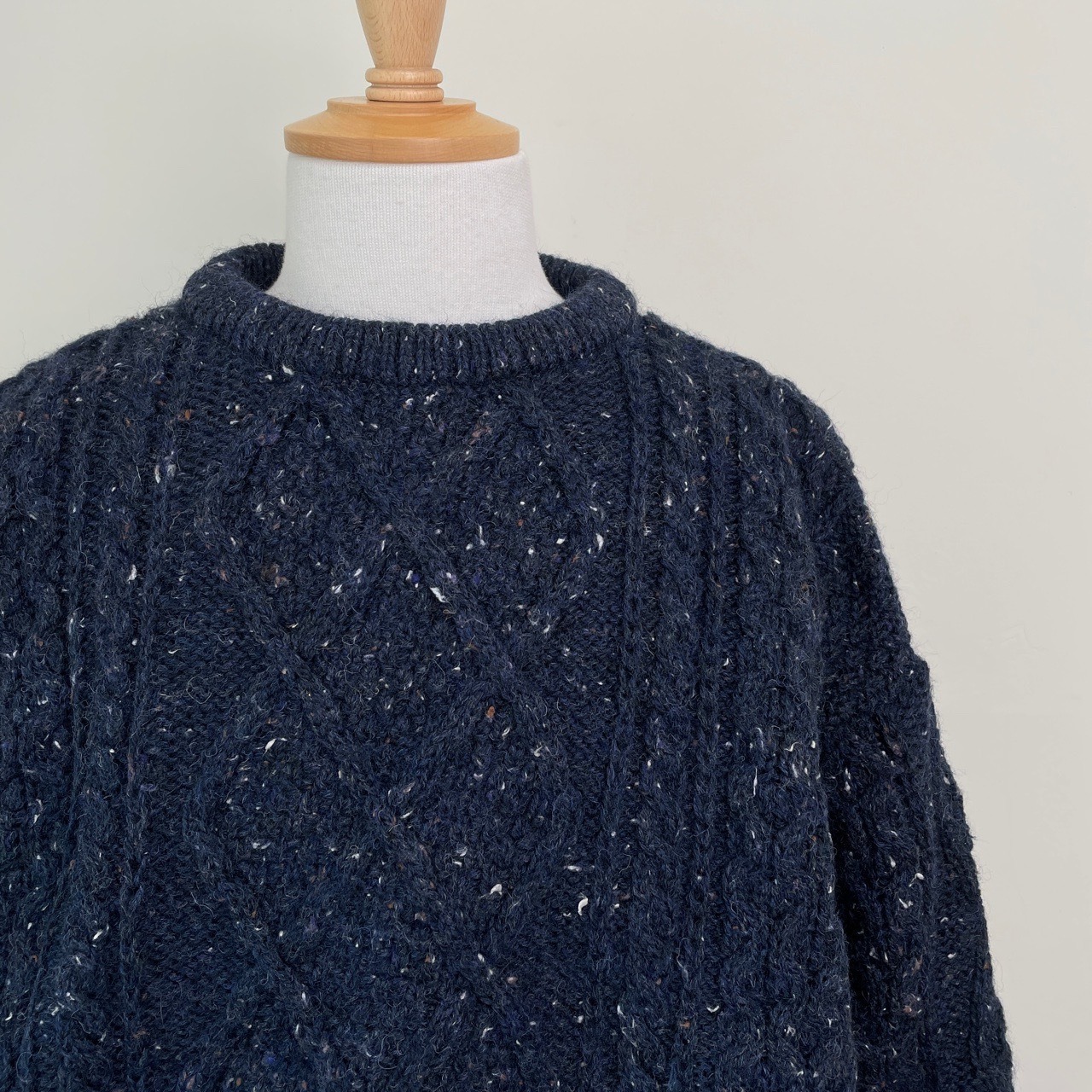 80s 90s 英国製 カラーネップ ケーブルニット セーター ヴィンテージ 古着 ウール アランニット 紺 ネイビー ローケージ 80年代 90年代 ビンテージ L 25120812