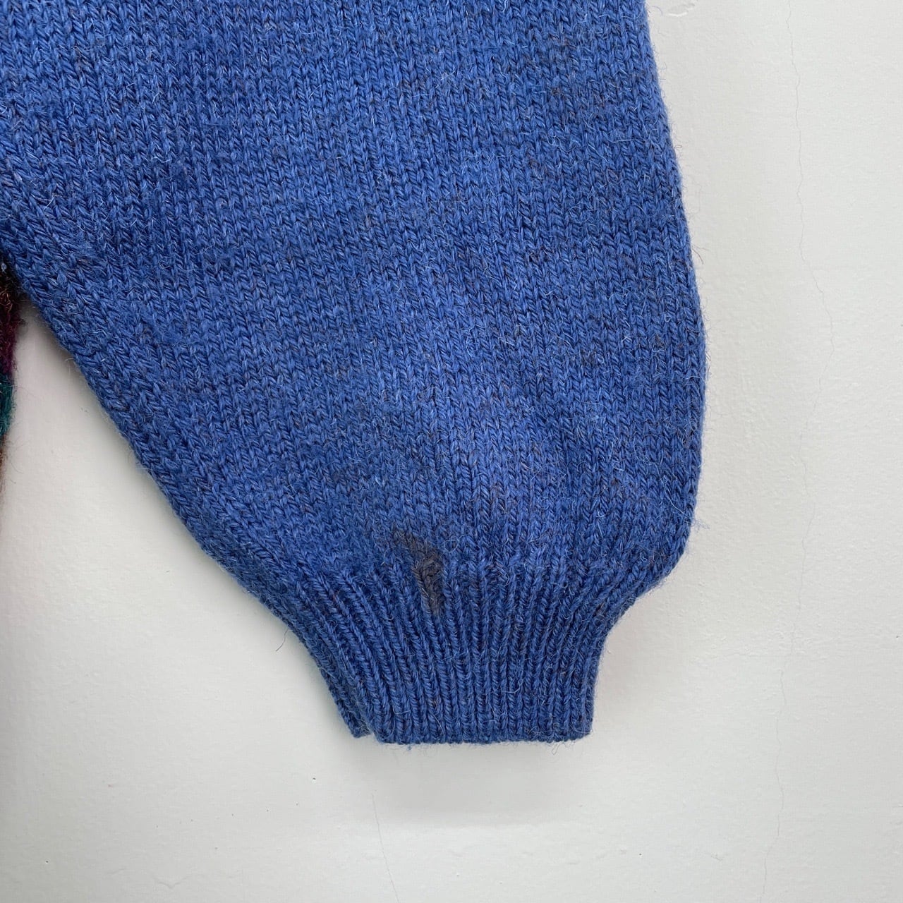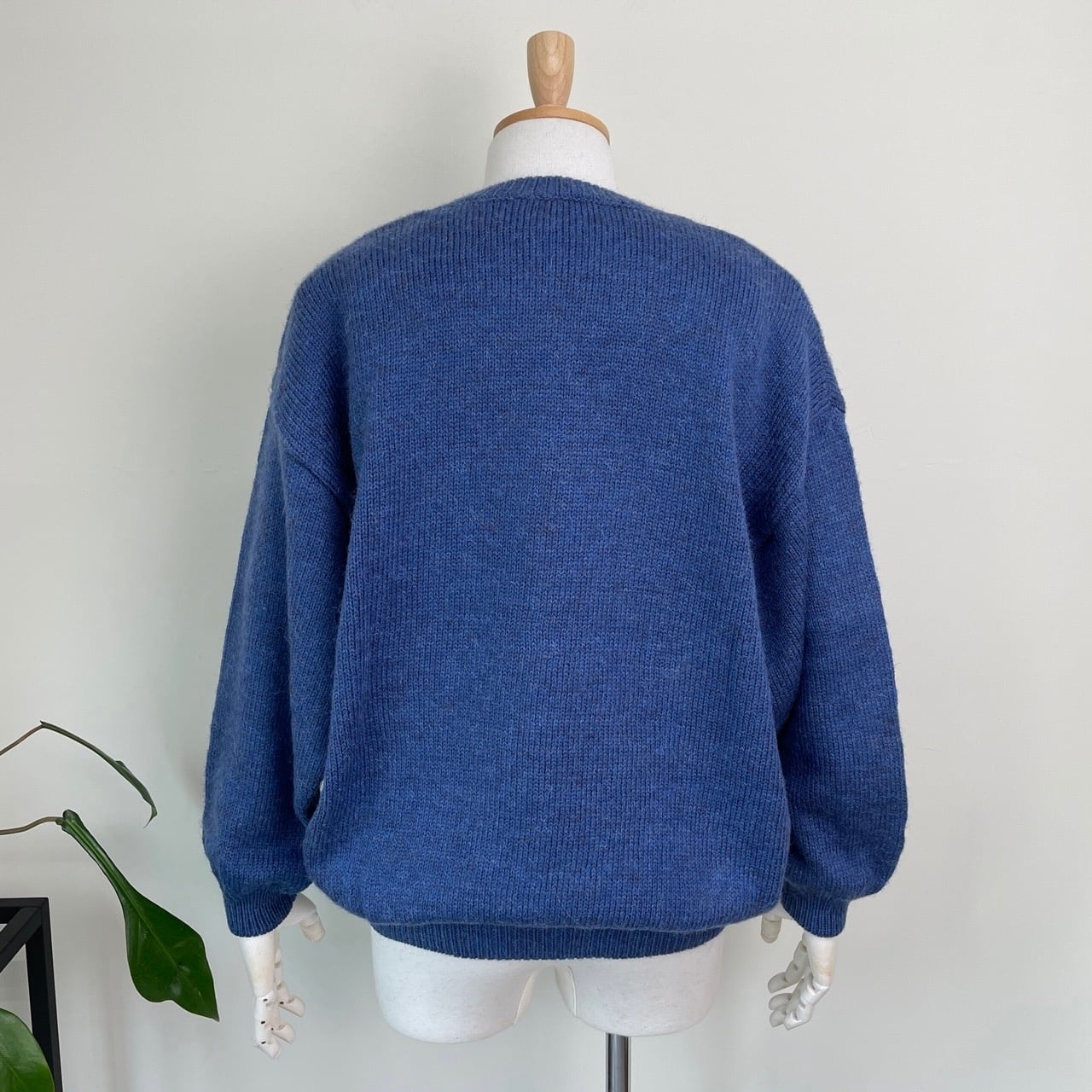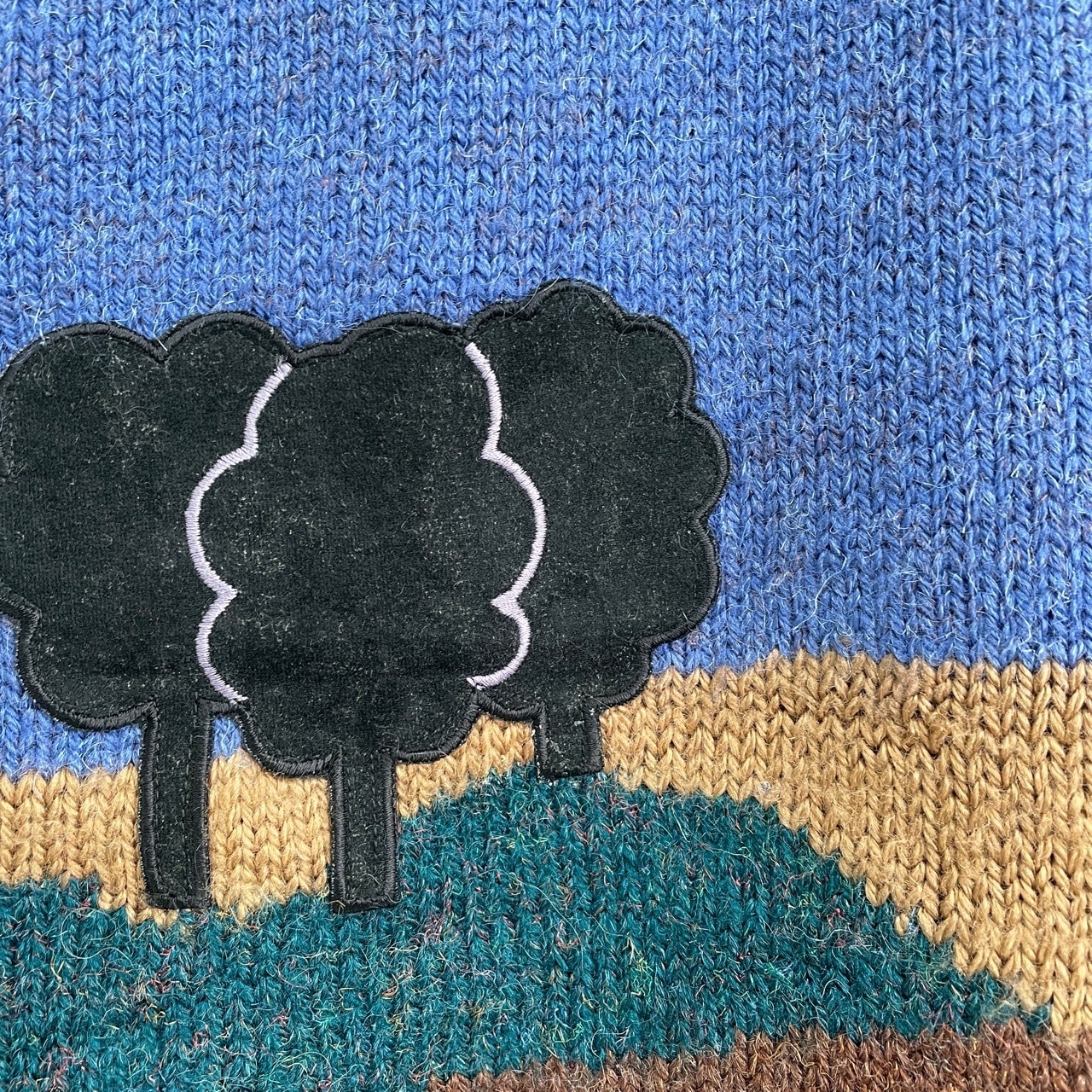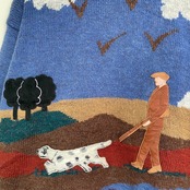 80s 90s 犬 ハンティング アート ニット セーター ヴィンテージ 古着 ウール アクリル 水色 ライトブルー 風景 アニマル 動物 80年代 90年代 ビンテージ 25120902