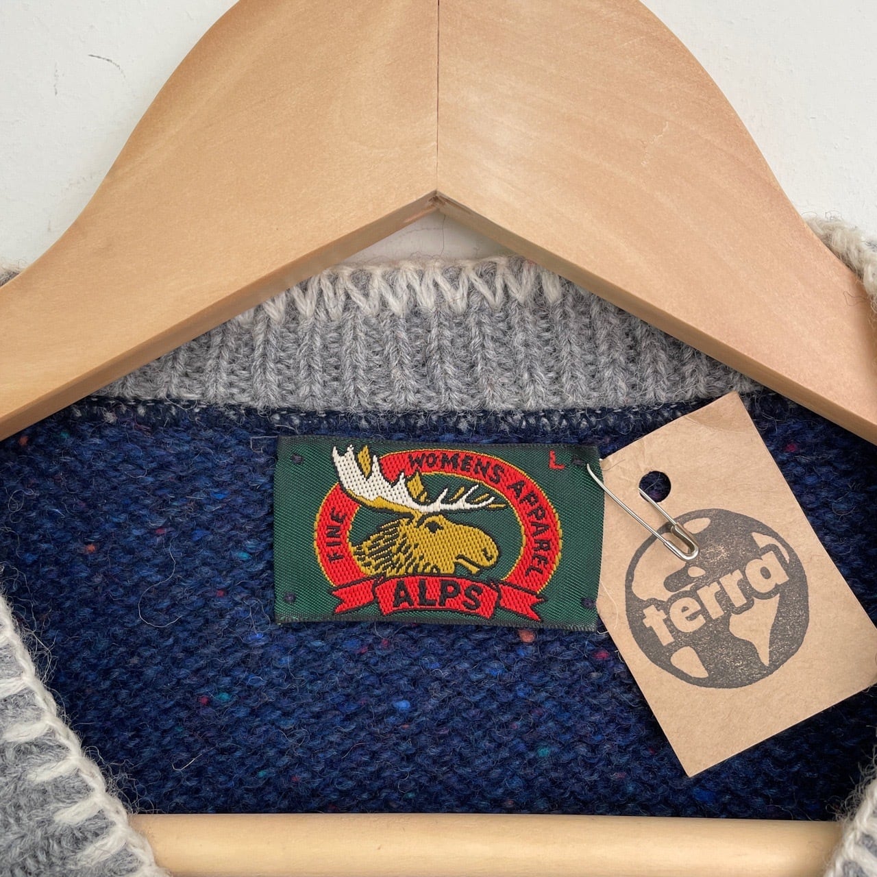 80s 90s USA製 ALPS カラーネップ ウールニット セーター ヴィンテージ 古着 青 ブルー アウトドア 80年代 90年代 ビンテージ L レディース メンズ 25120906