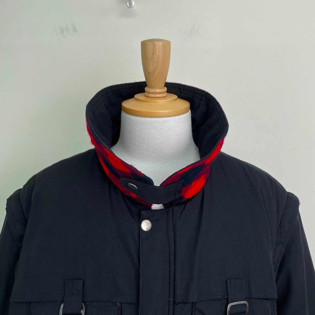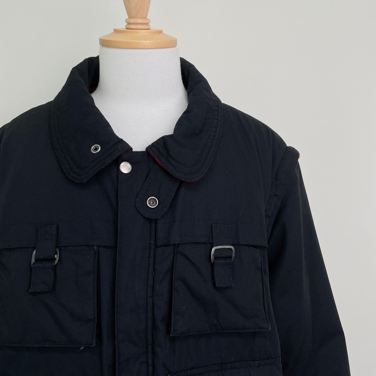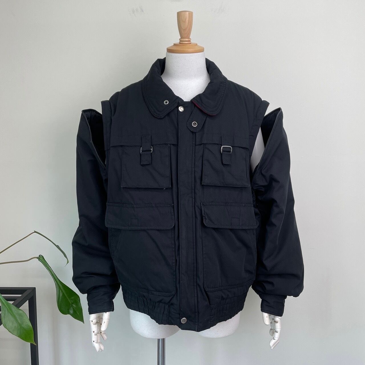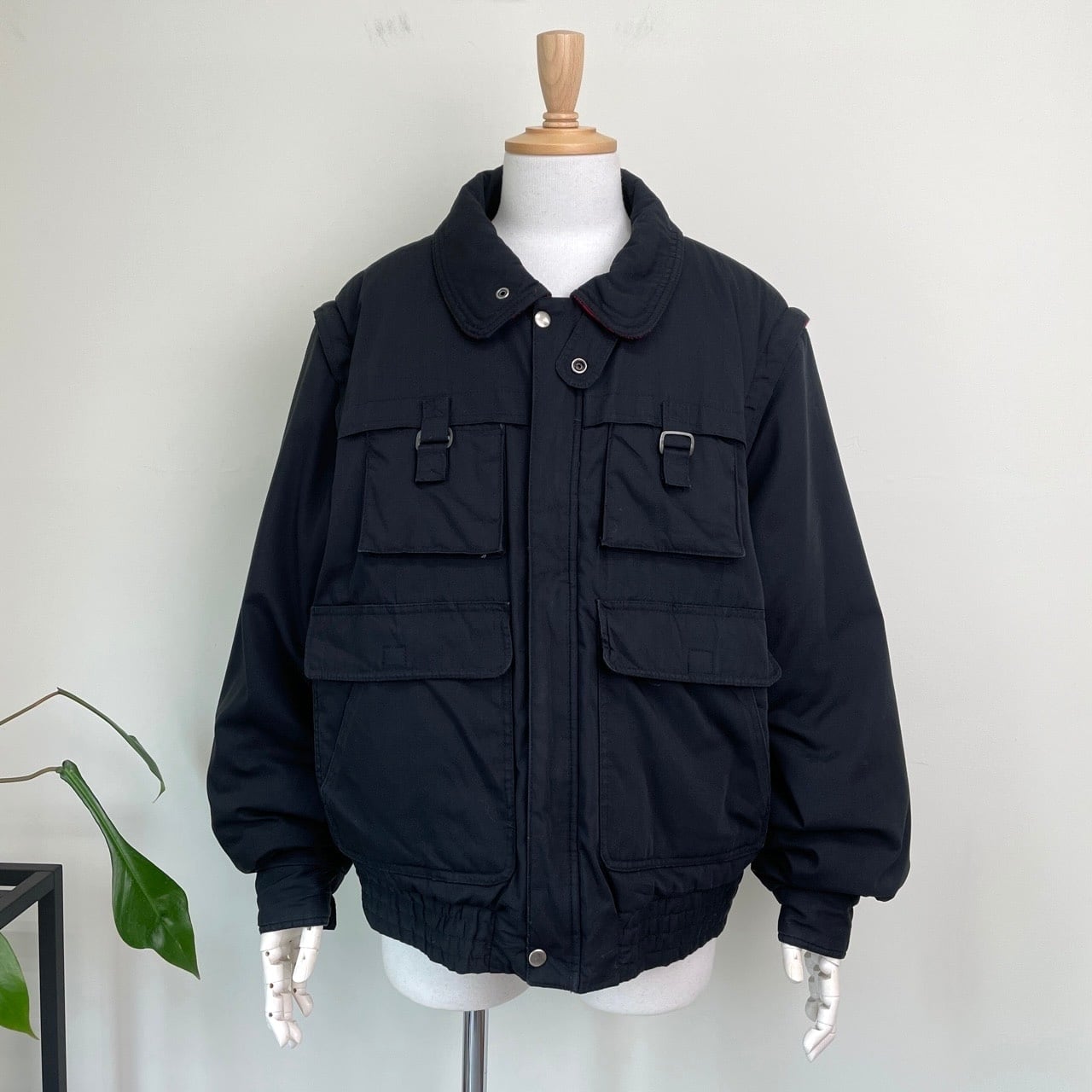 80s 90s デタッチャブルアーム 中綿ブルゾン 黒 ブラック ヴィンテージ 古着 フィッシング アウトドア ジャケット ギミック 80年代 90年代 ビンテージ XL 25120908