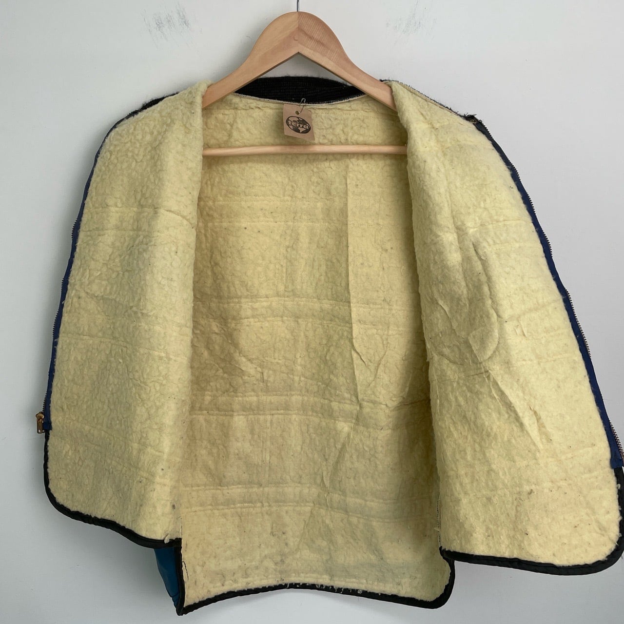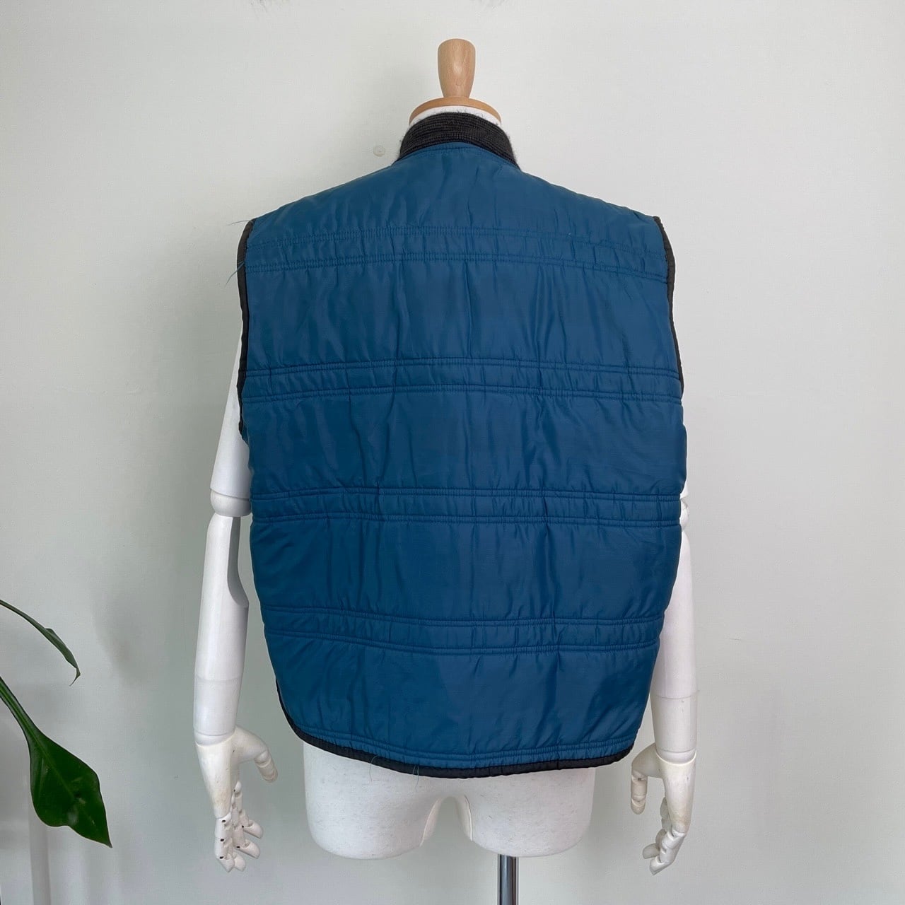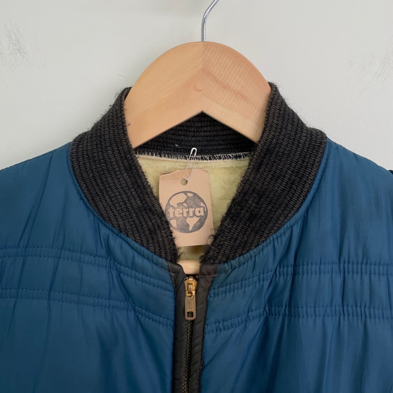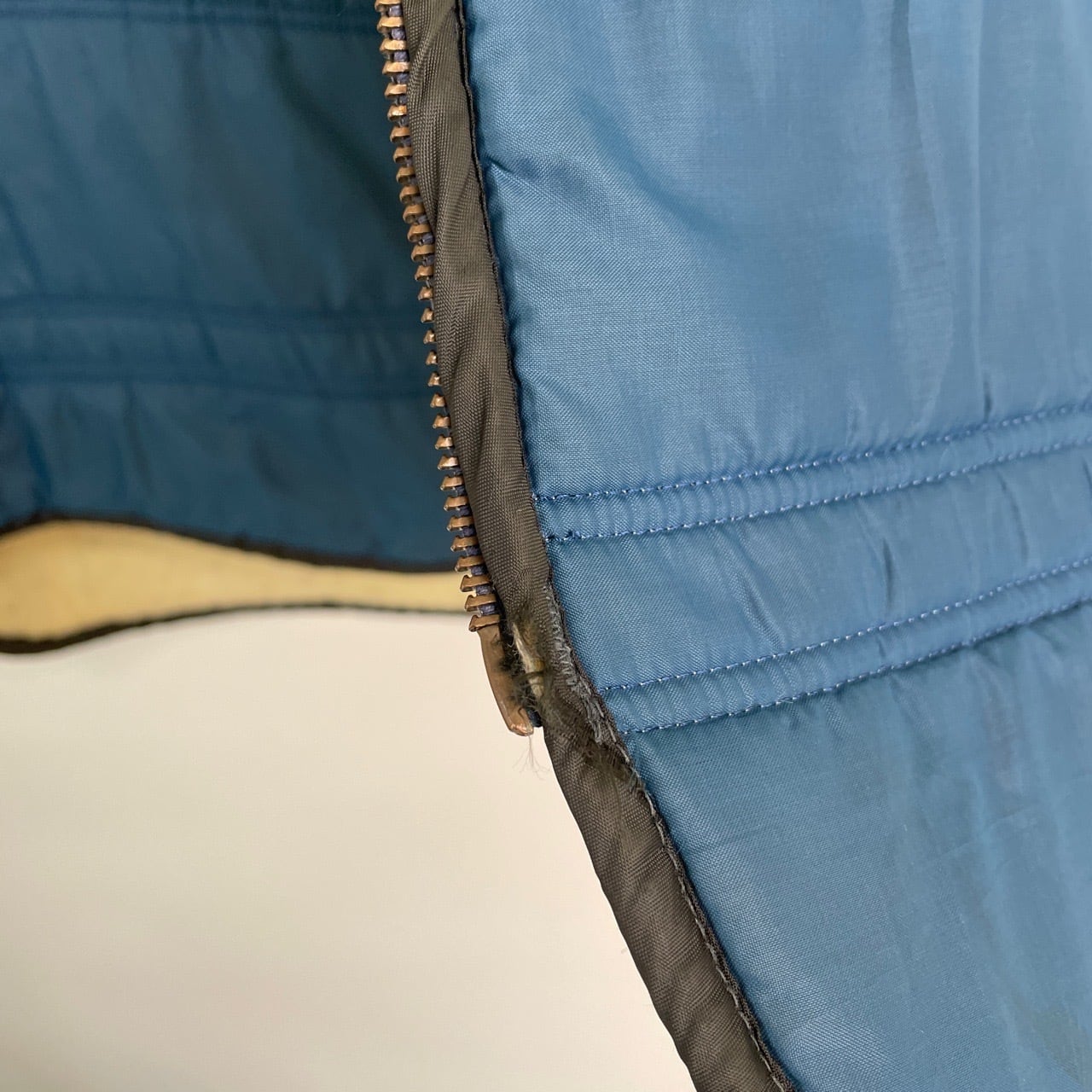 60s 裏ボア ナイロンベスト ジップアップ ヴィンテージ 古着 青 ブルー TALON 60年代 ビンテージ L アウトドア ワーク キルティングベスト 25120911
