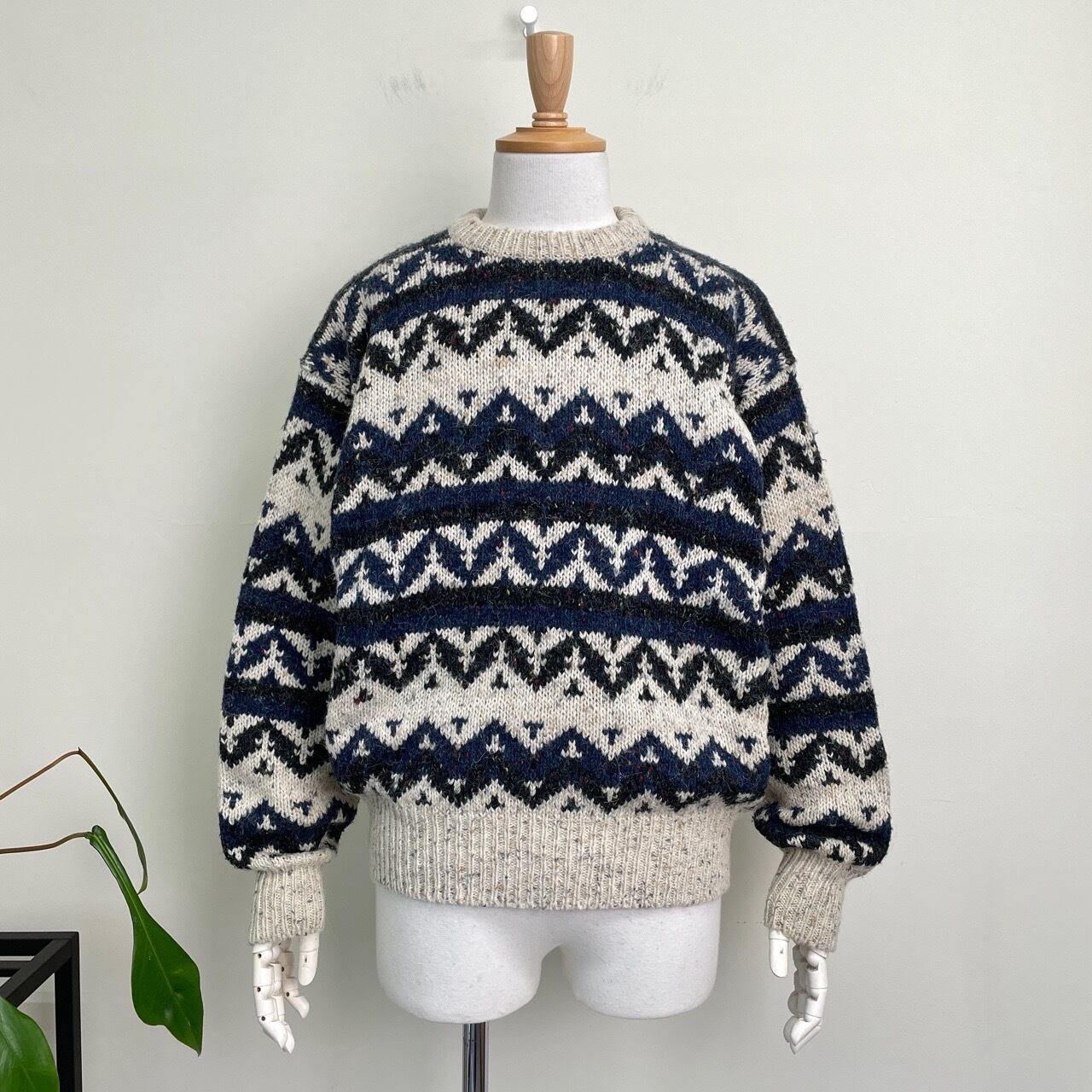 80s 90s Peter England 幾何学模様 カラーネップ セーター ヴィンテージ 古着 ジグザグ 総柄ニット アクリル ウール 80年代 90年代 ビンテージ M 25122103