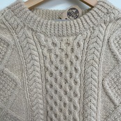 80s 90s アイルランド製 inisfree ハンドニット フィッシャーマンセーター ヴィンテージ 古着 アランニット 手編み 生成り アイボリー ウール 80年代 90年代 ビンテージ 25122109