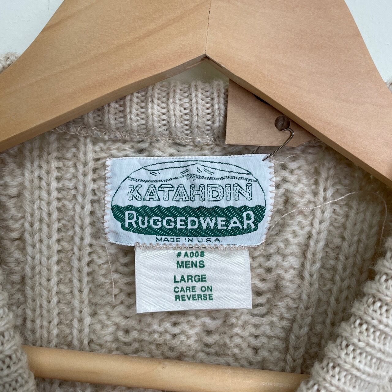 80s 90s USA製 KATAHDIN ウールニット フィッシャーマンセーター ヴィンテージ 古着 ケーブルニット アランニット 生成り アイボリー 80年代 90年代 ビンテージ L 25122110