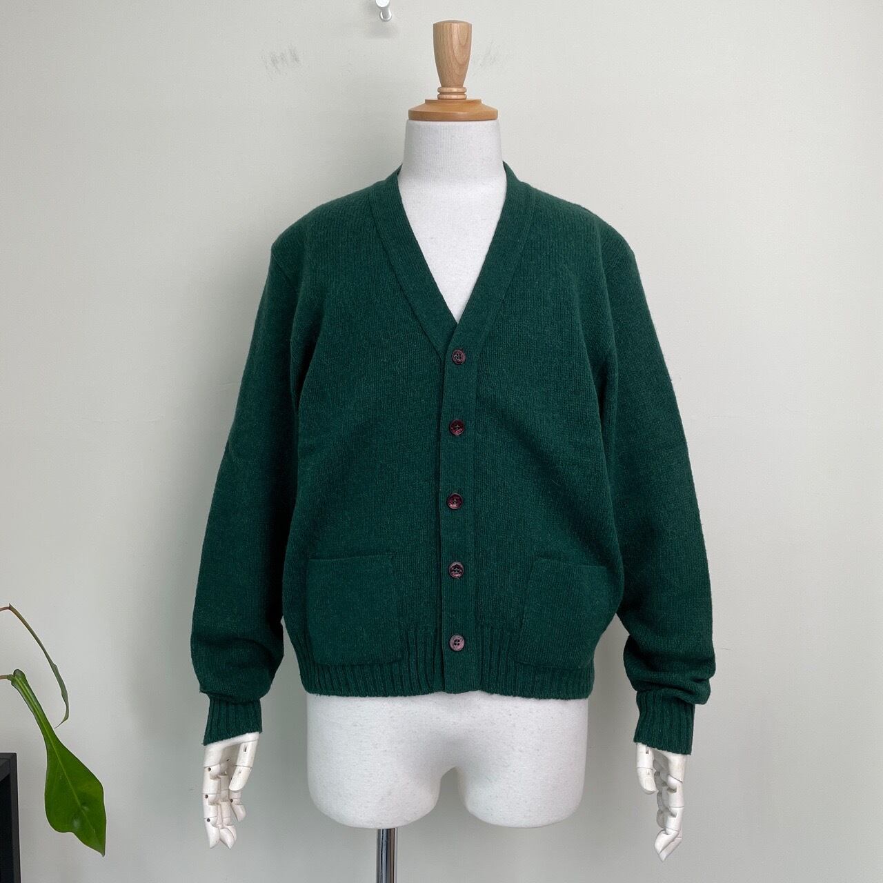 60s USA製 Jantzen Scotch Tumbler ウールニット カーディガン ヴィンテージ 古着 緑 グリーン 無地 60年代 ビンテージ M 25122209