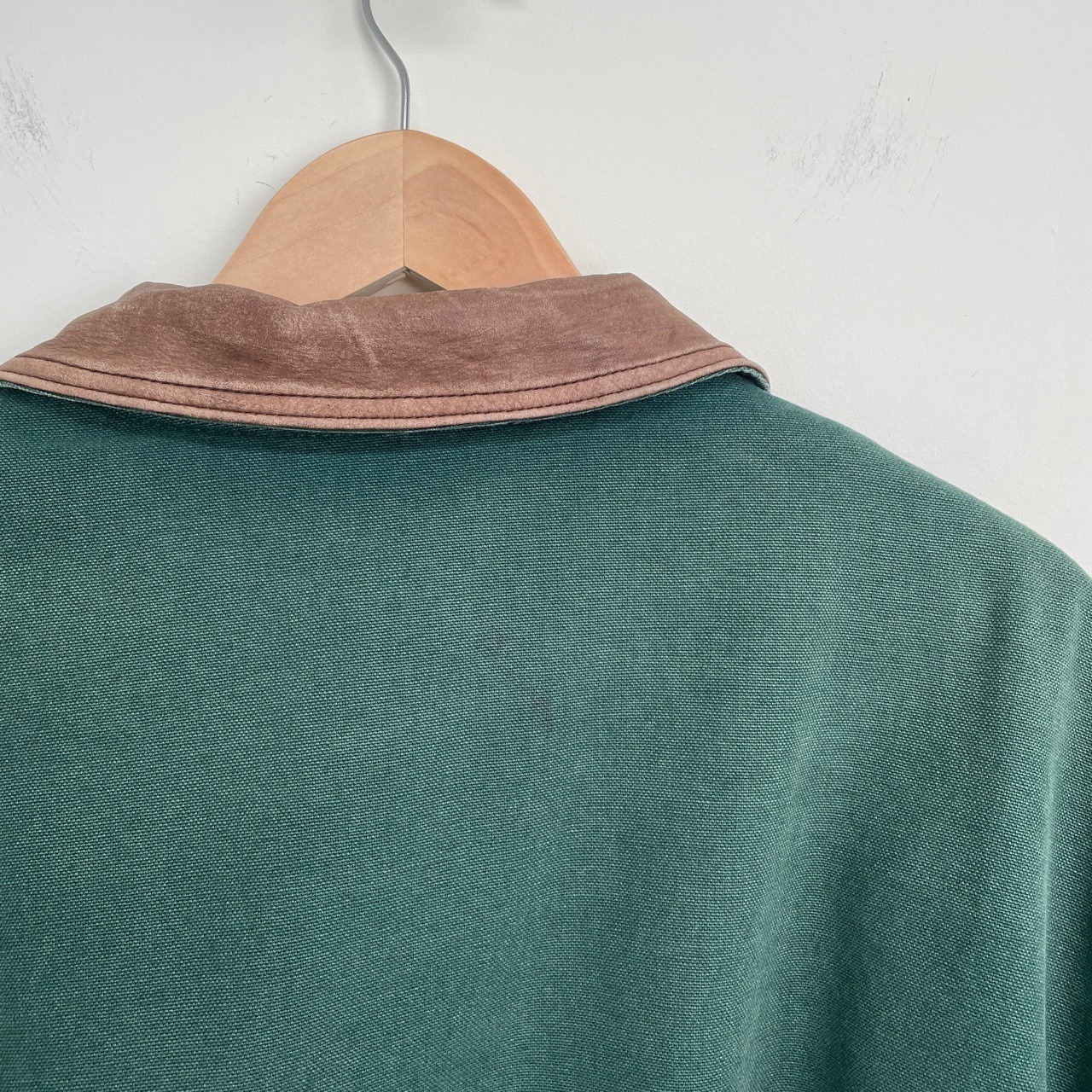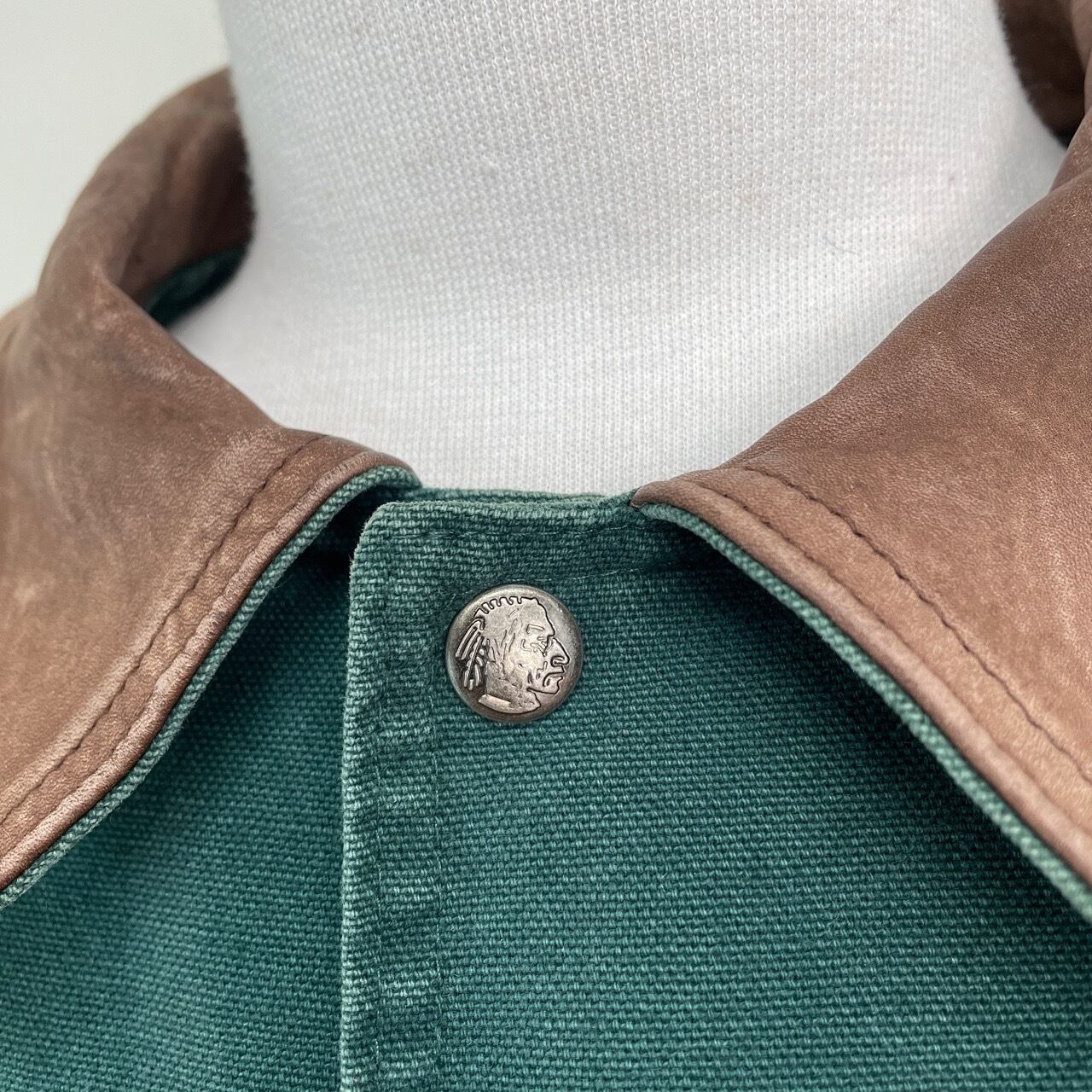 素材:コットン100%、襟レザー、裏地ウール85%ナイロン15%