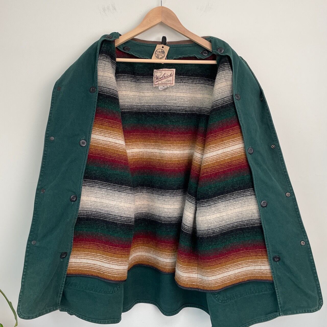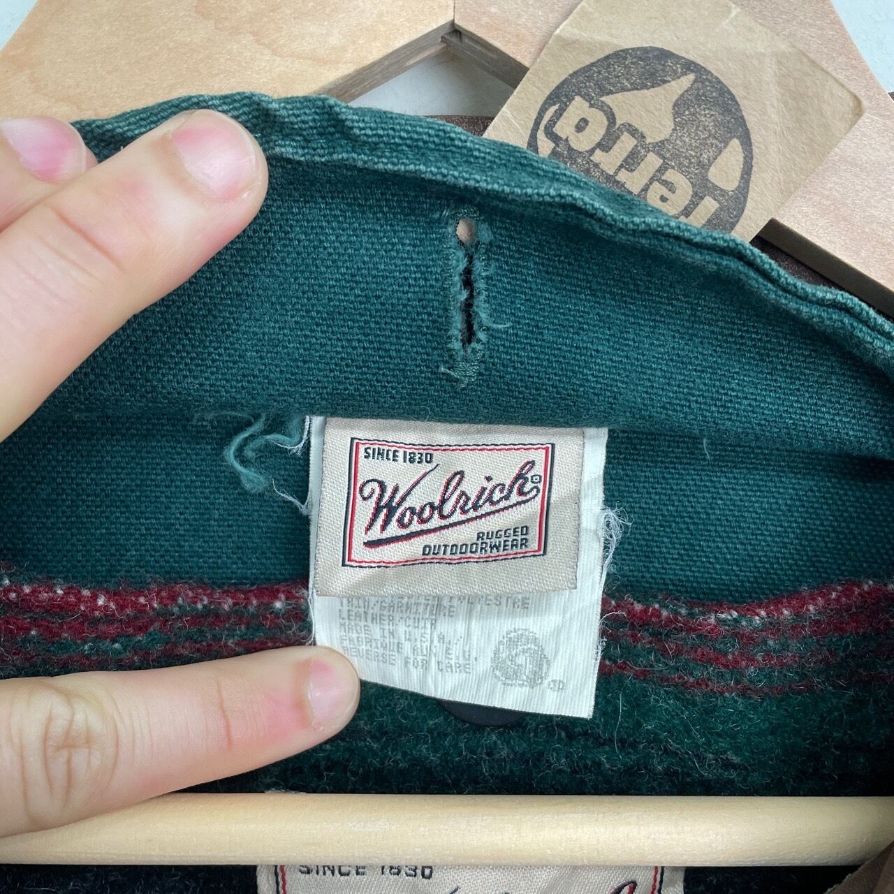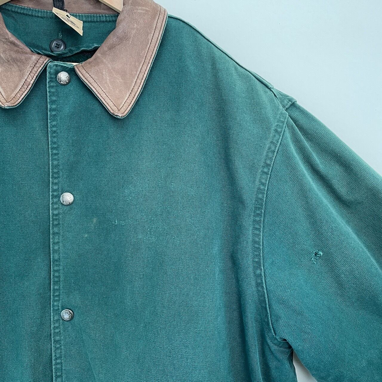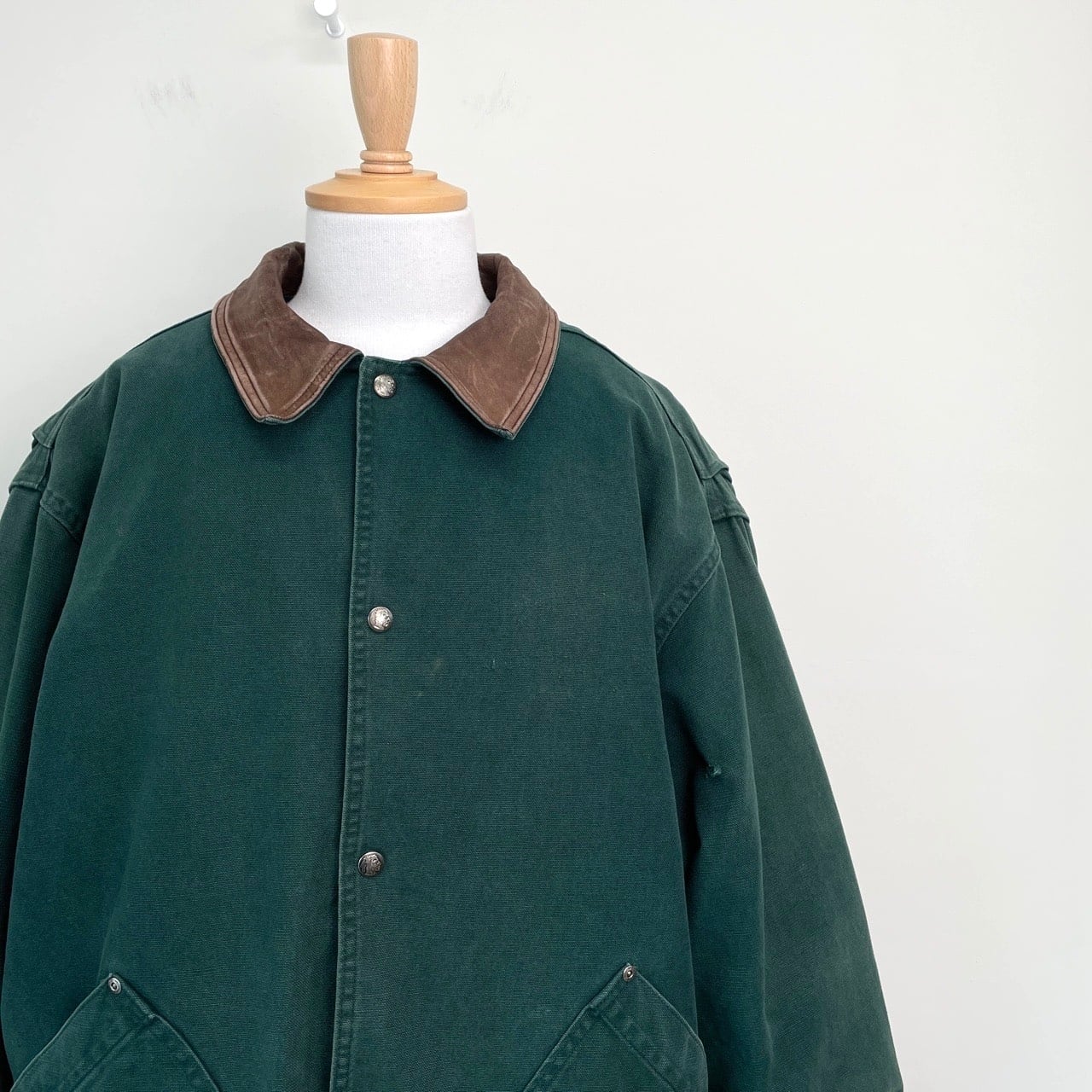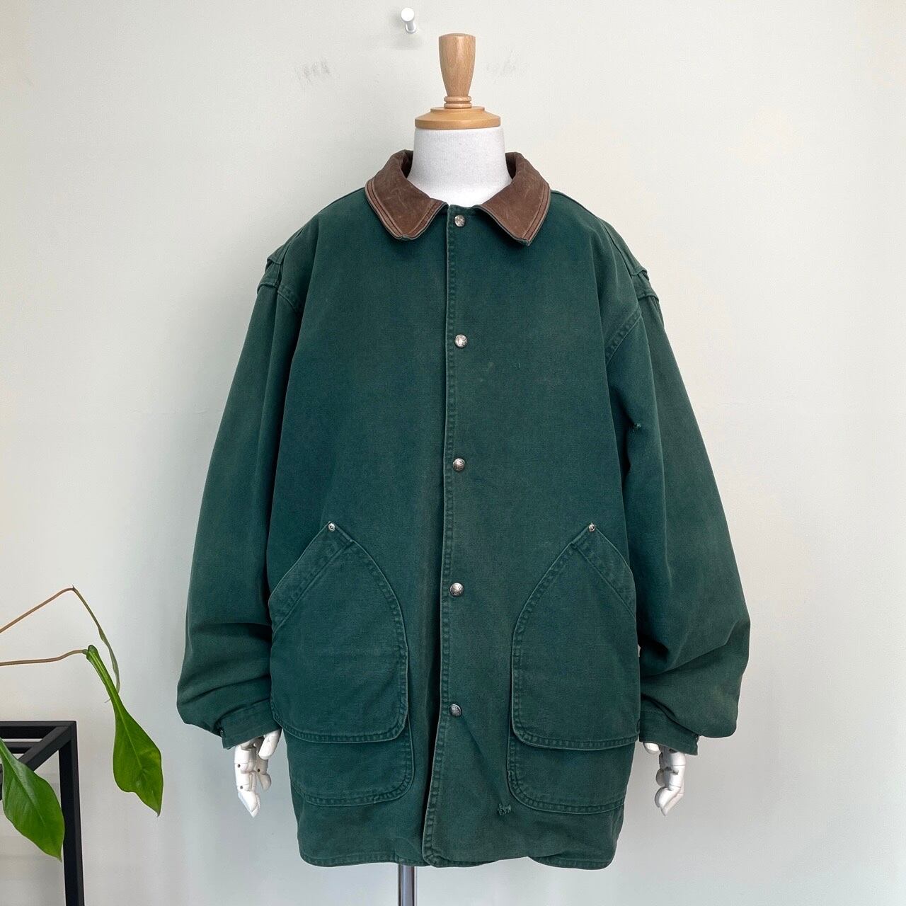 90s USA製 Woolrich ライナー付き ハンティングジャケット ヴィンテージ 古着 襟レザー 緑 グリーン ウールリッチ 90年代 ビンテージ XL 25123001