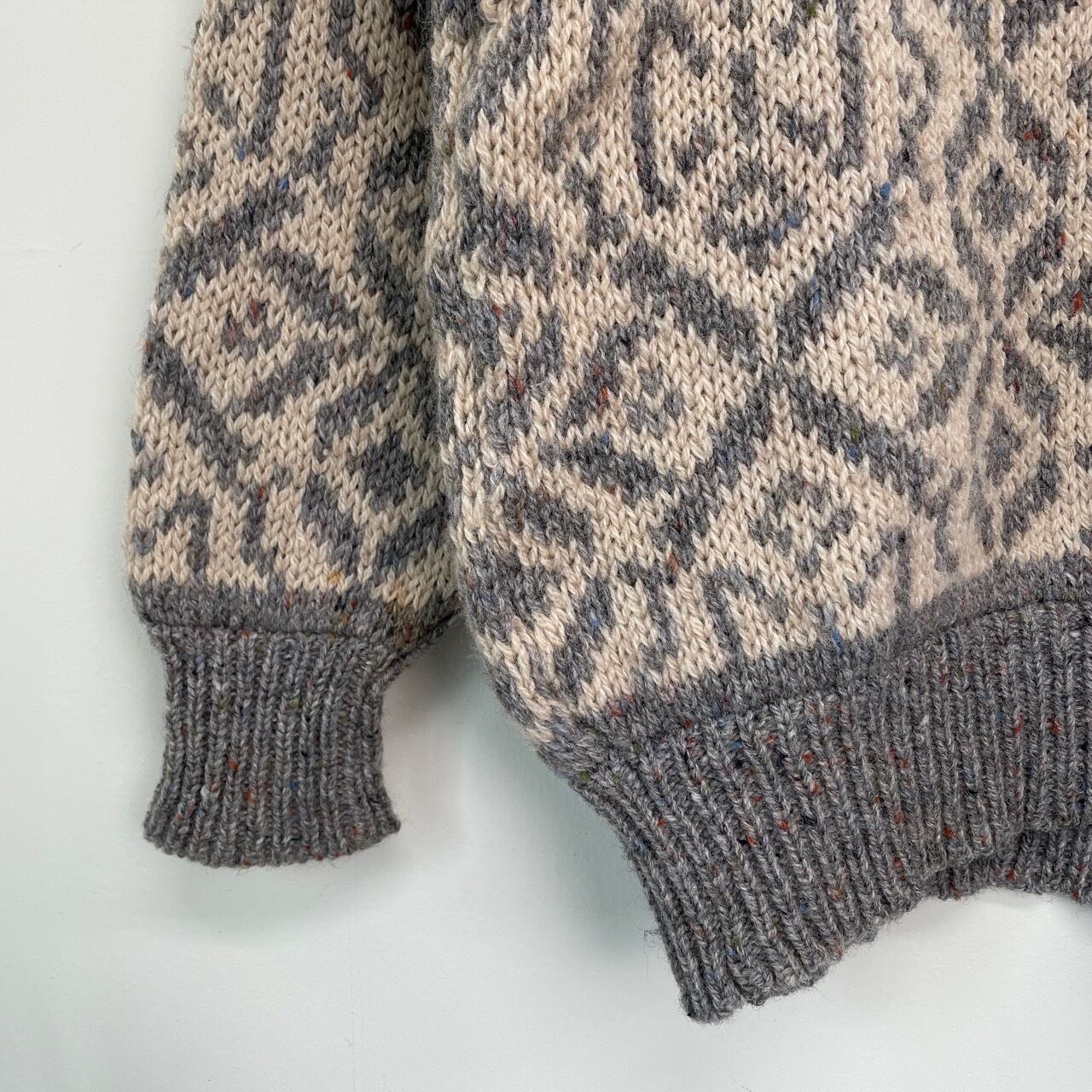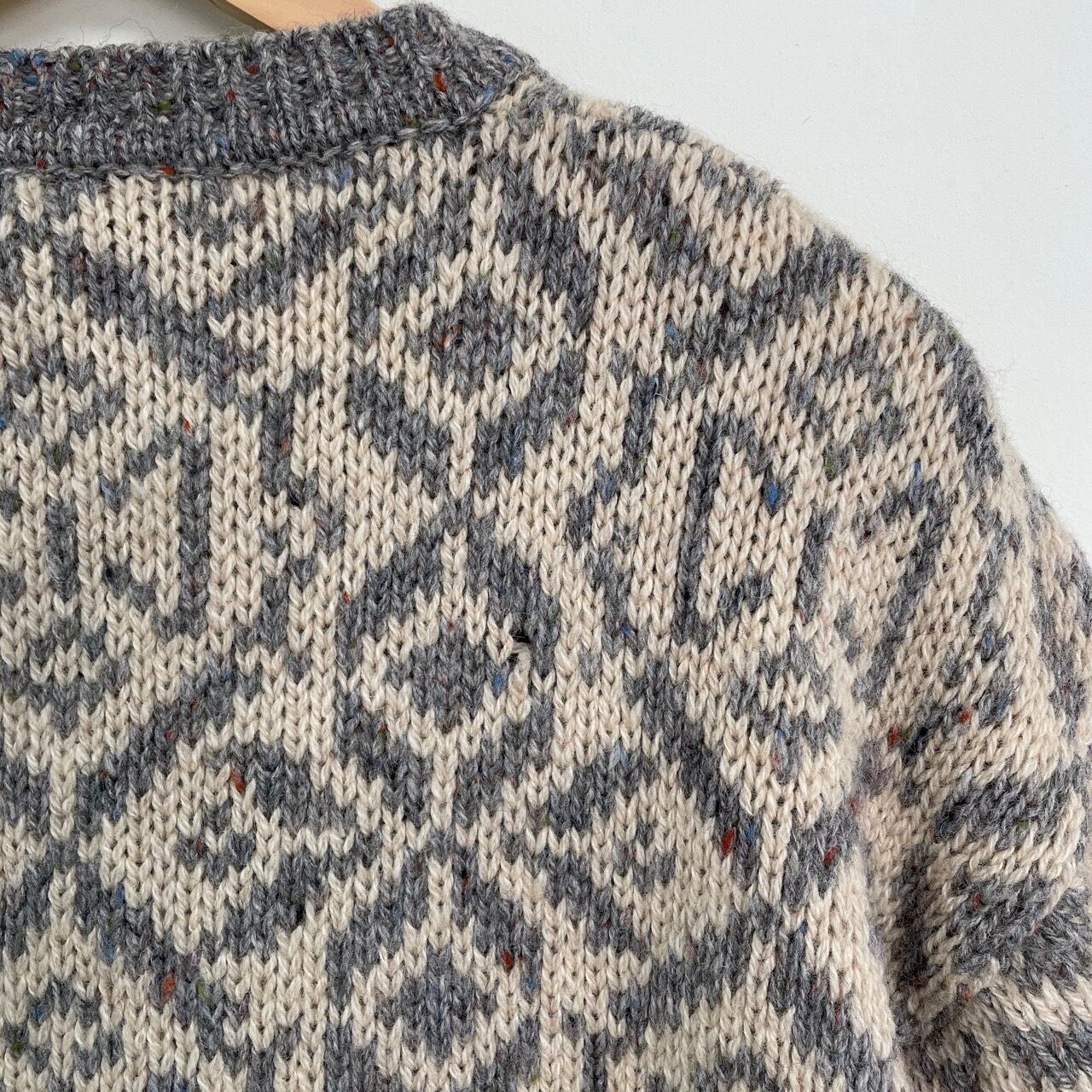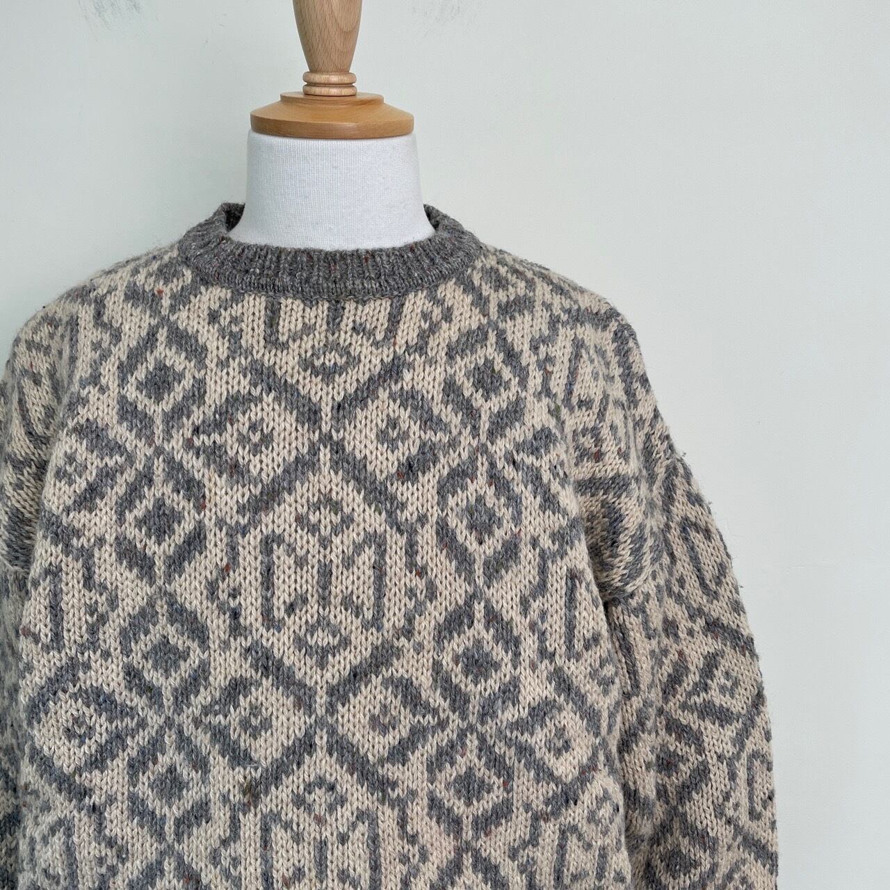 80s 90s アイルランド製 Gaeltarra 幾何学模様 カラーネップ ウール セーター ヴィンテージ 古着 柄ニット ノルディック柄 アイボリー グレー 80年代 90年代 ビンテージ 25123006