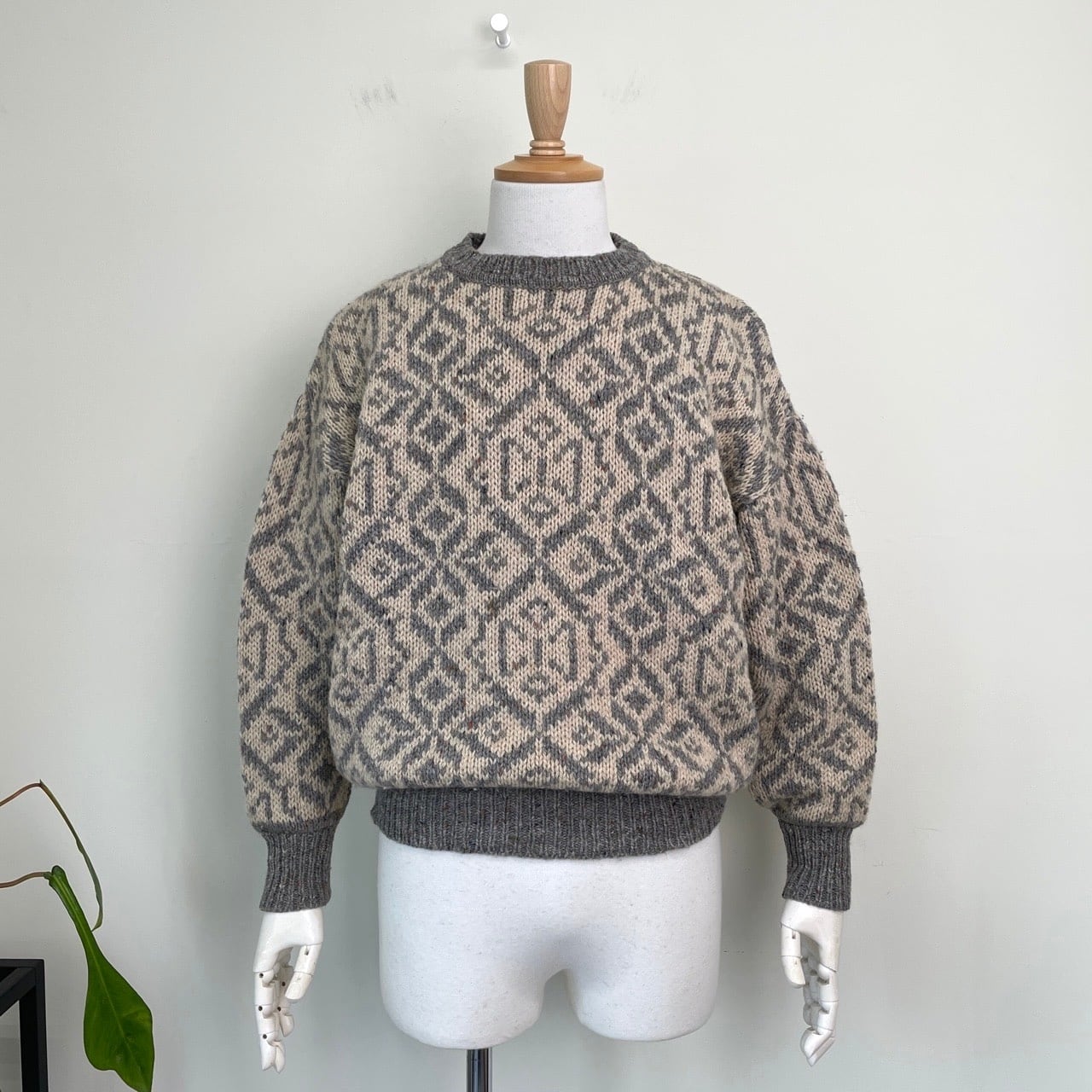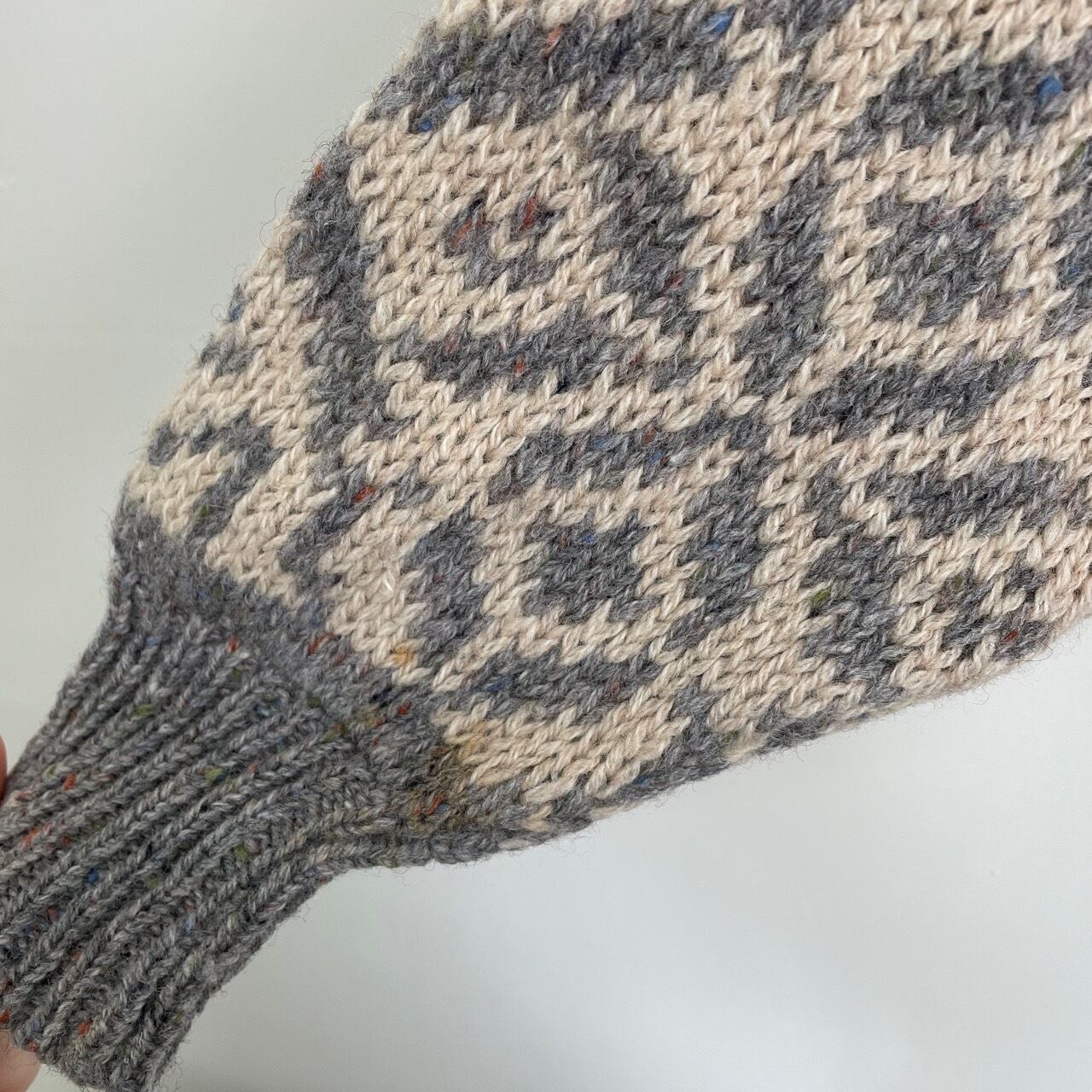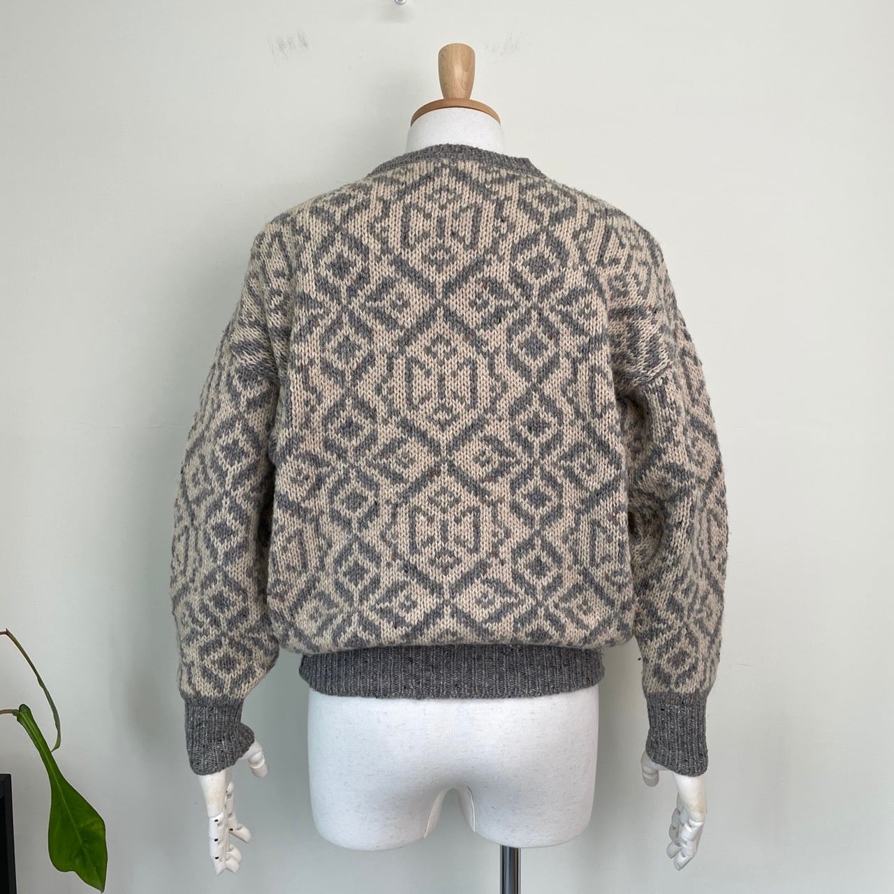 80s 90s アイルランド製 Gaeltarra 幾何学模様 カラーネップ ウール セーター ヴィンテージ 古着 柄ニット ノルディック柄 アイボリー グレー 80年代 90年代 ビンテージ 25123006
