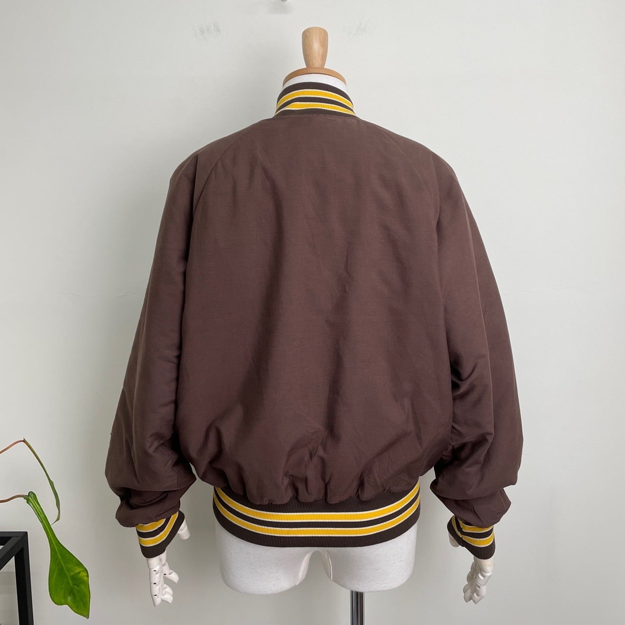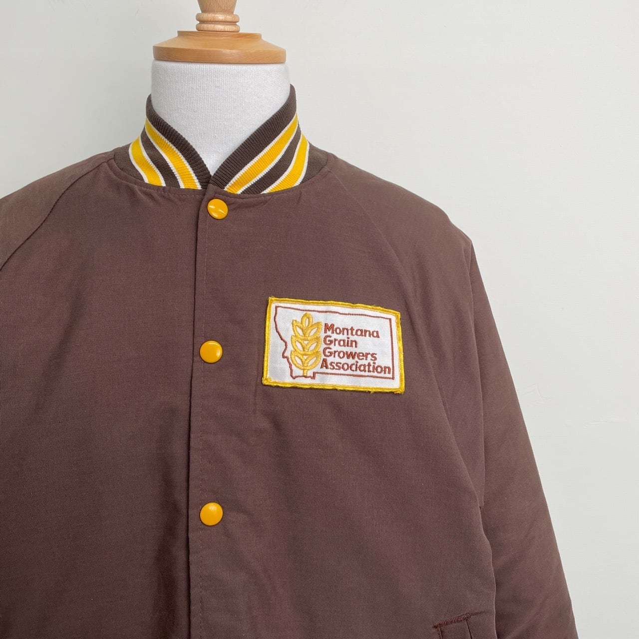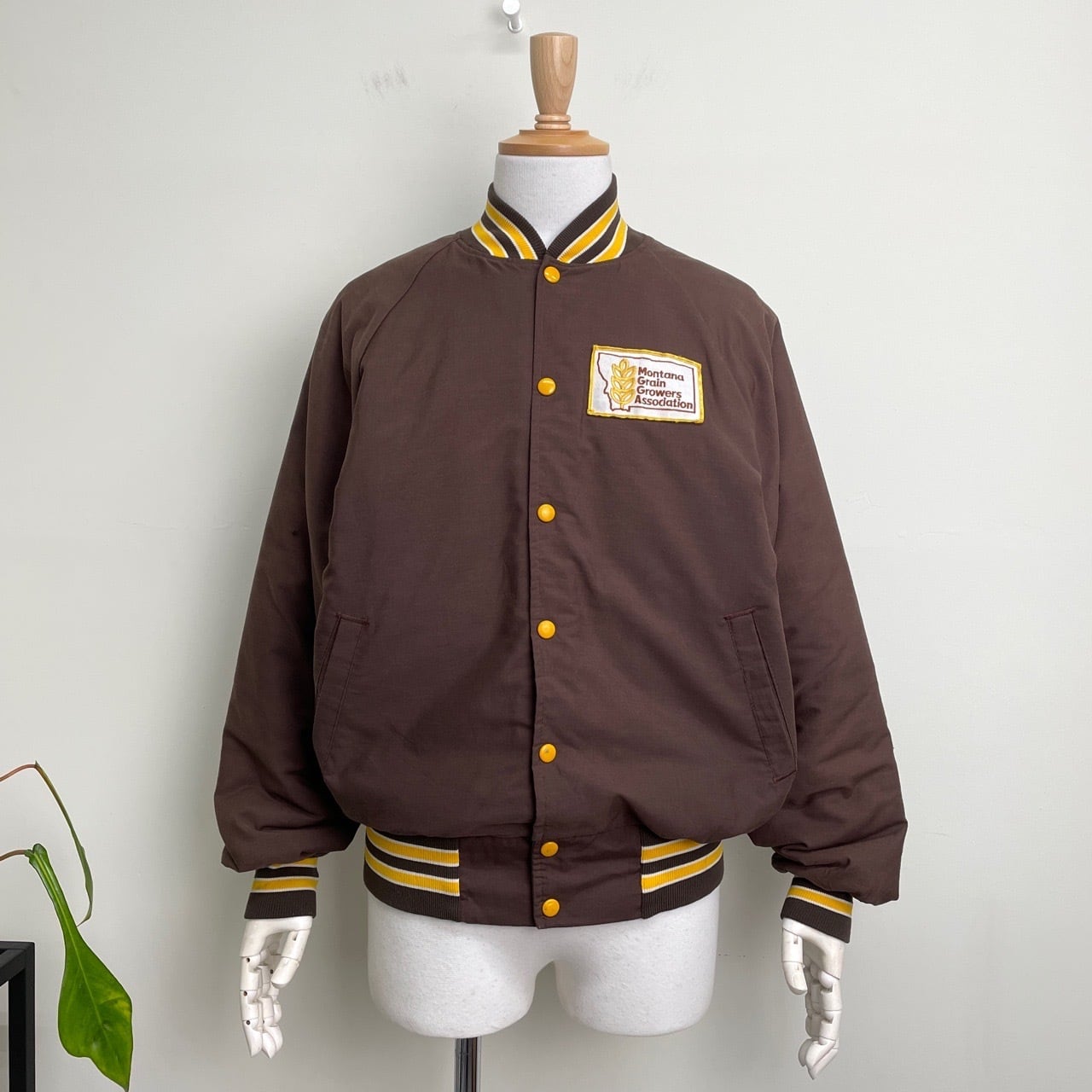 80s 90s USA製 ワッペン付き 中綿スタジャン ヴィンテージ 古着 茶 ブラウン 裏キルティング ブルゾン 80年代 90年代 アウター ビンテージ L 26010201