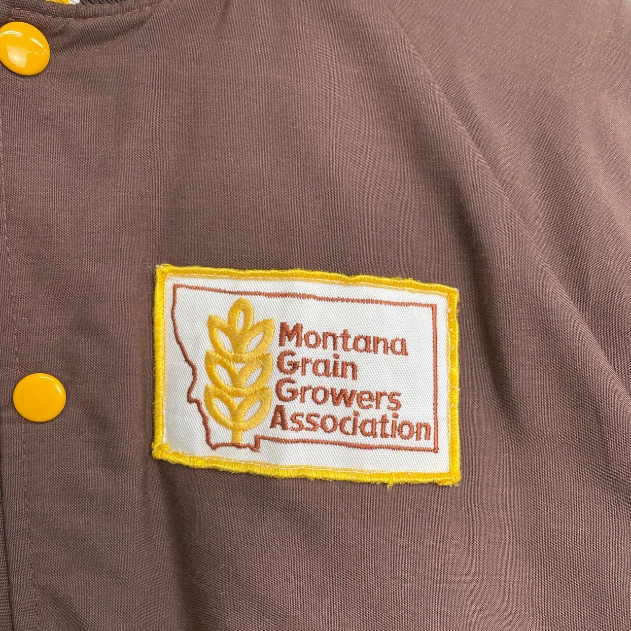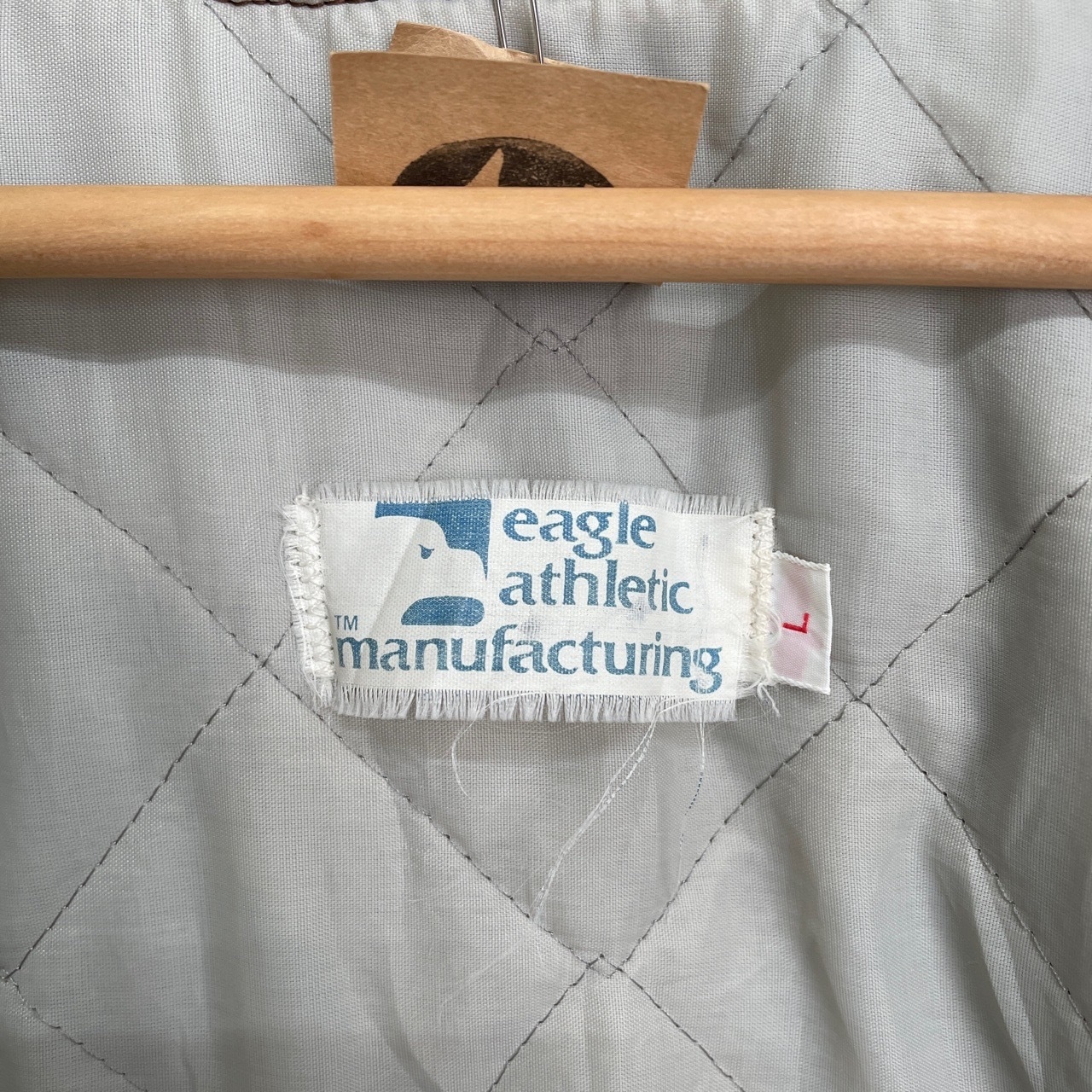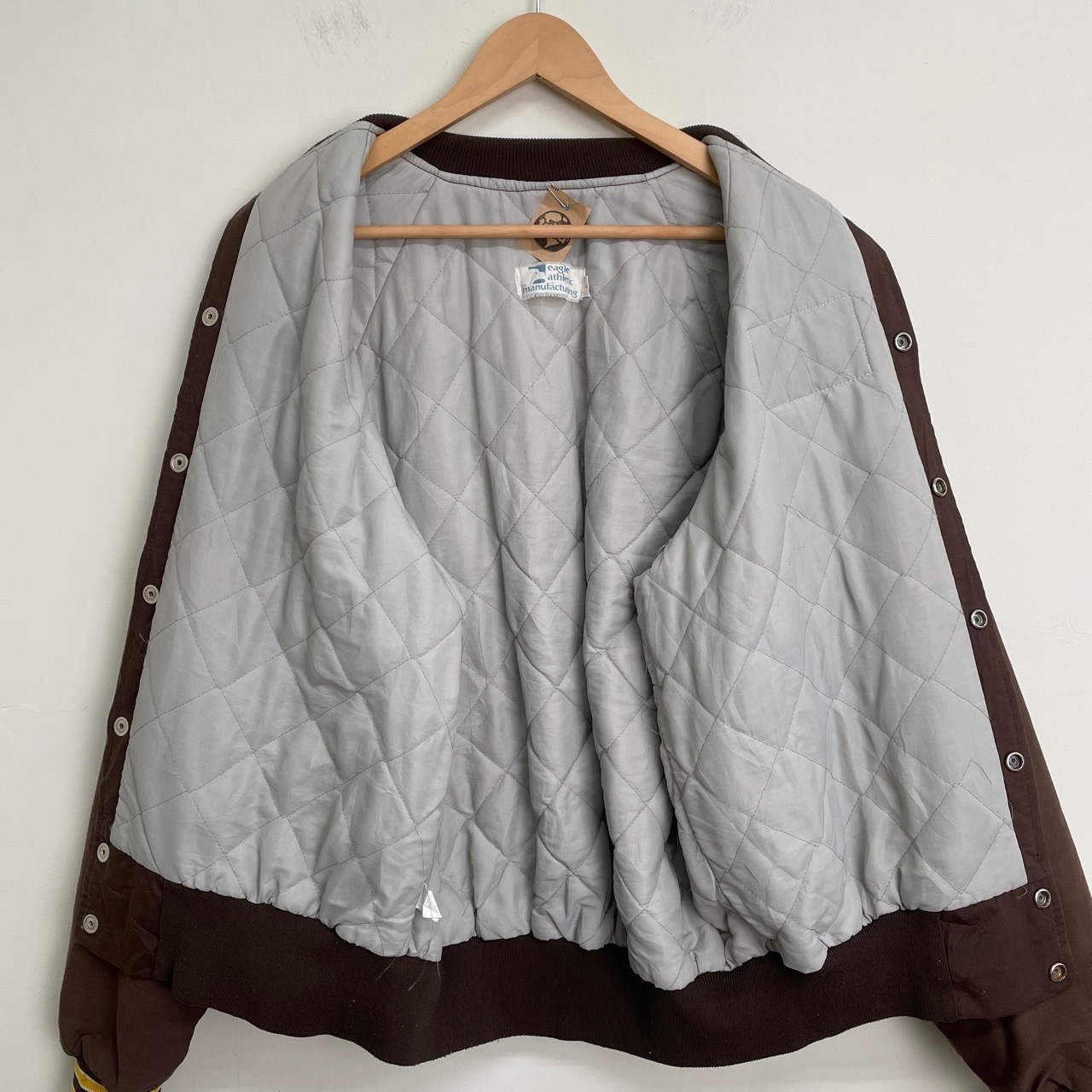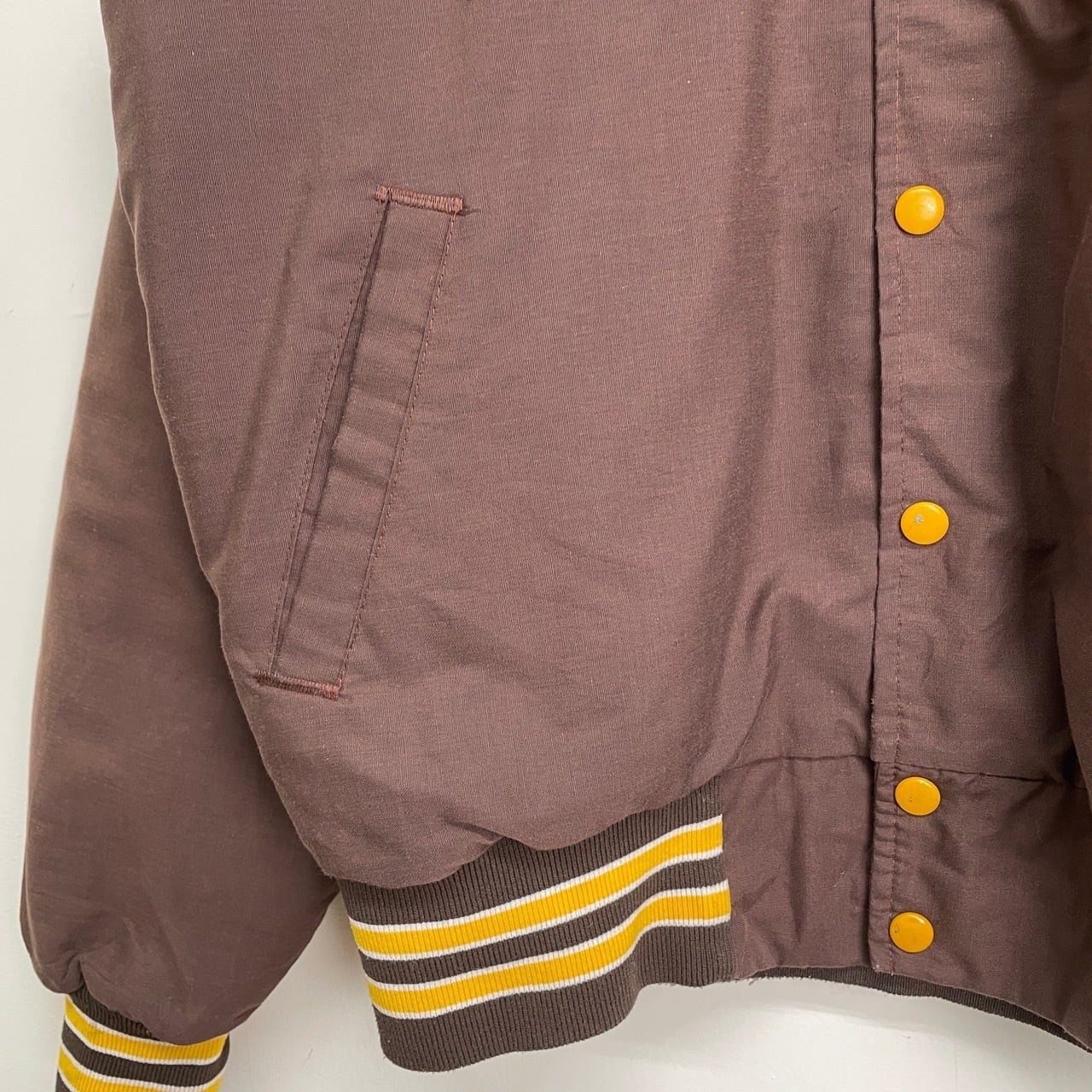 80s 90s USA製 ワッペン付き 中綿スタジャン ヴィンテージ 古着 茶 ブラウン 裏キルティング ブルゾン 80年代 90年代 アウター ビンテージ L 26010201