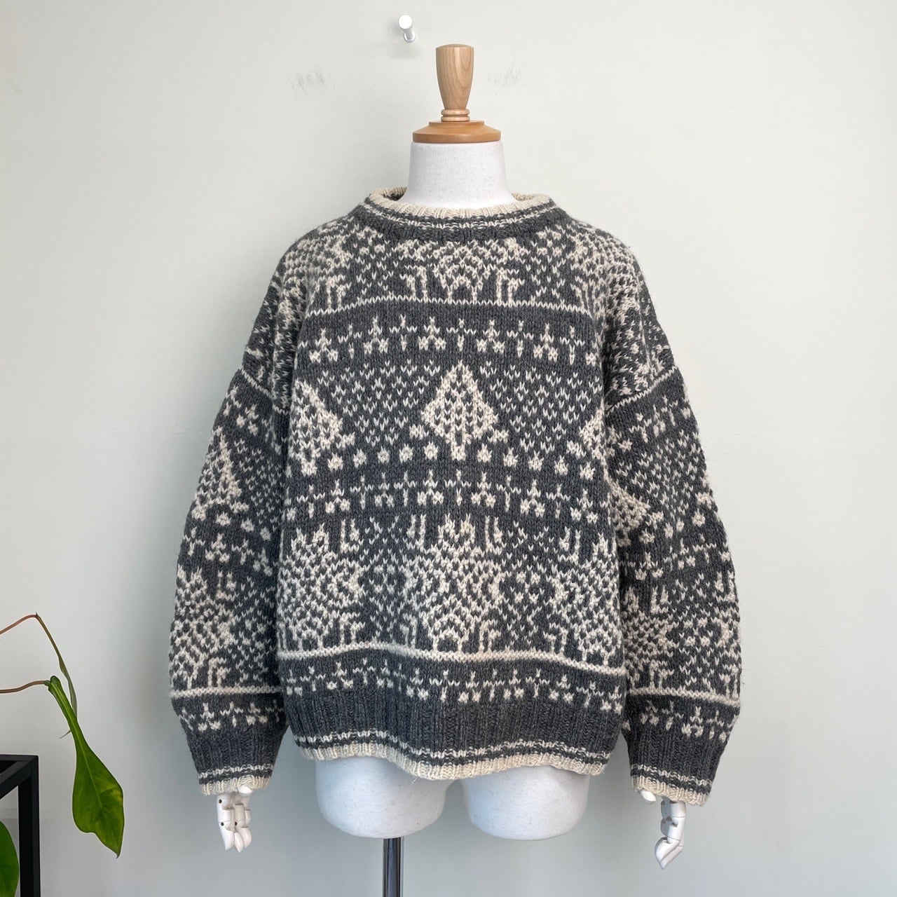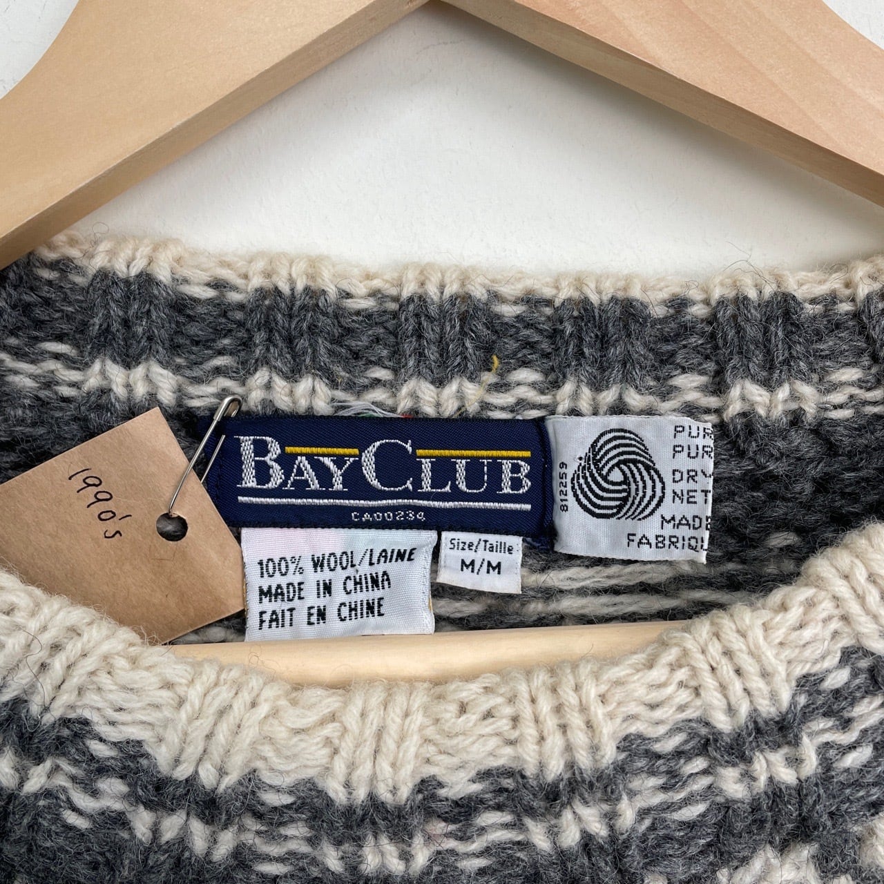 90s BAY CLUB ノルディック柄 ウール セーター ヴィンテージ 古着 柄ニット グレー 90年代 ビンテージ M 26010301