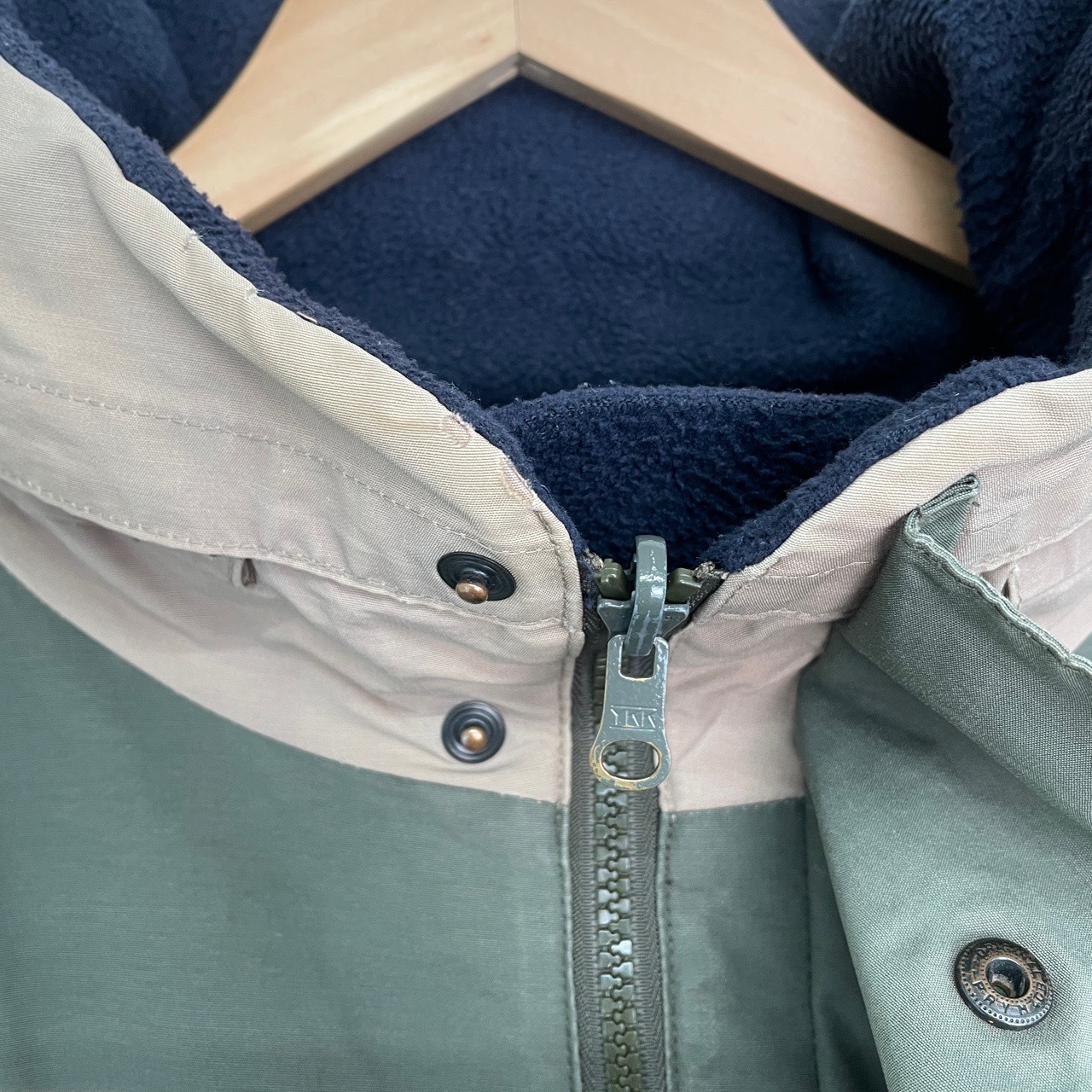 コットンナイロン側のポケット裏地に大きく破れ